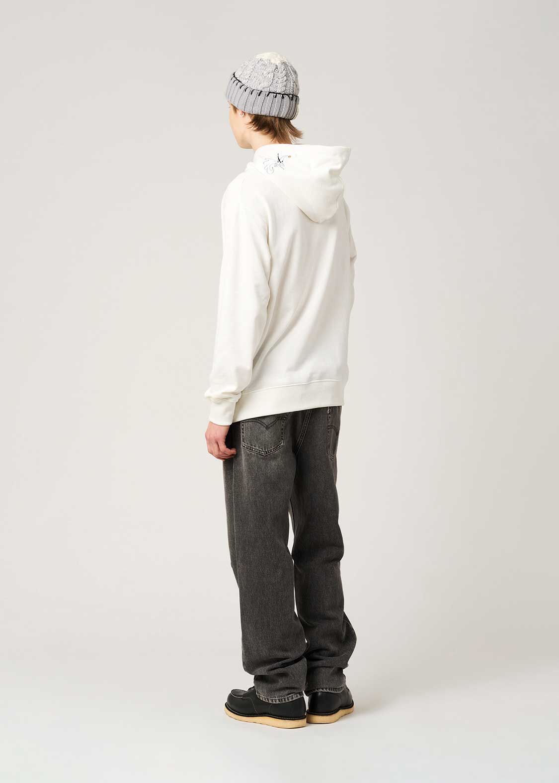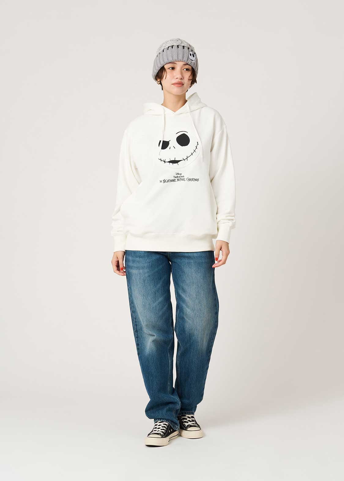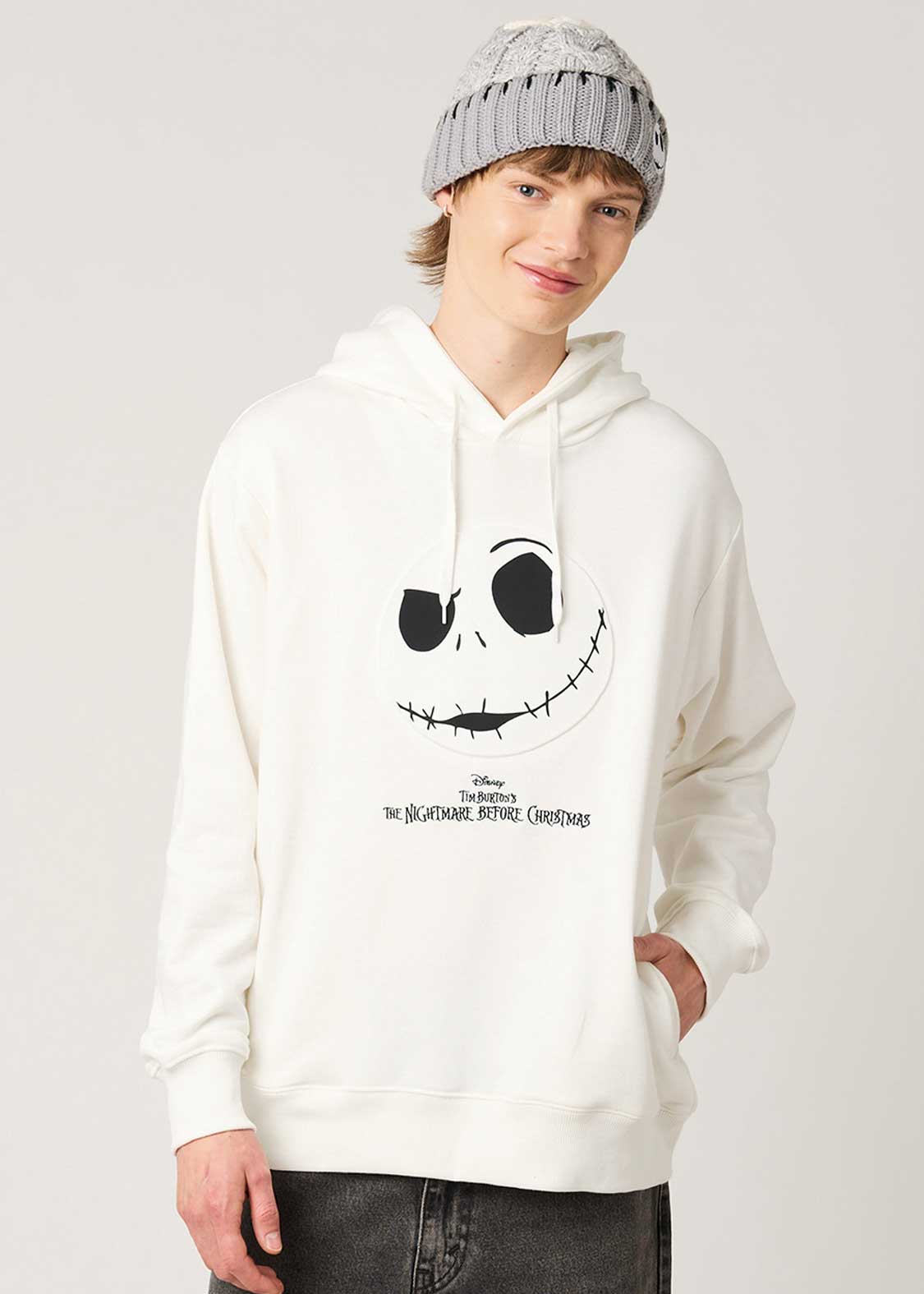 エンボス加工でジャックの顔をダイナミックに表現し、ロゴを刺繍であしらったデザイン。フードにはゼロの刺繍も施されています。