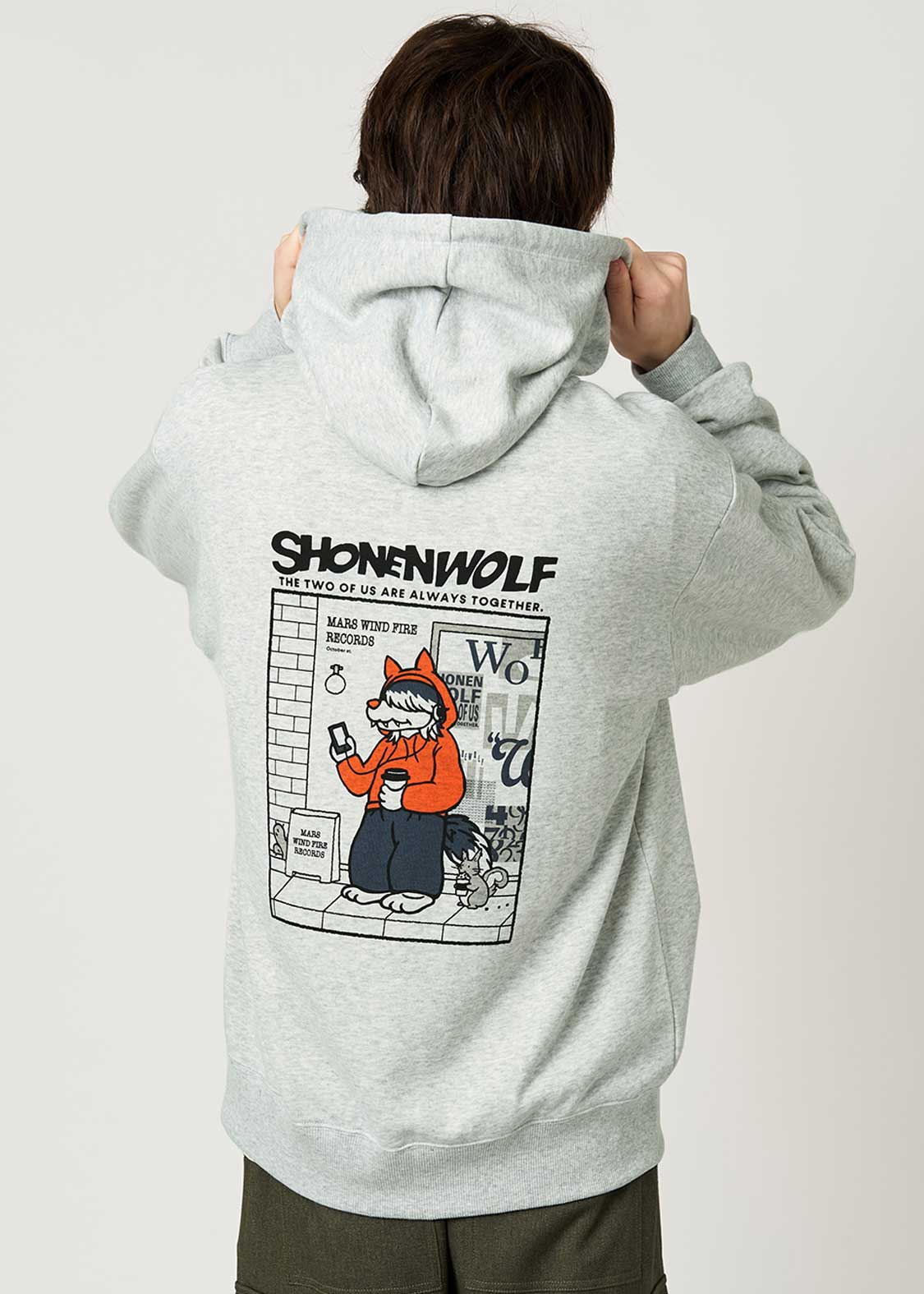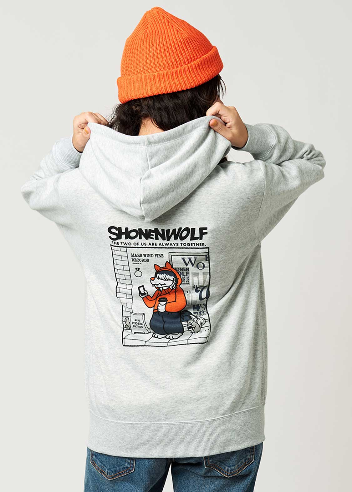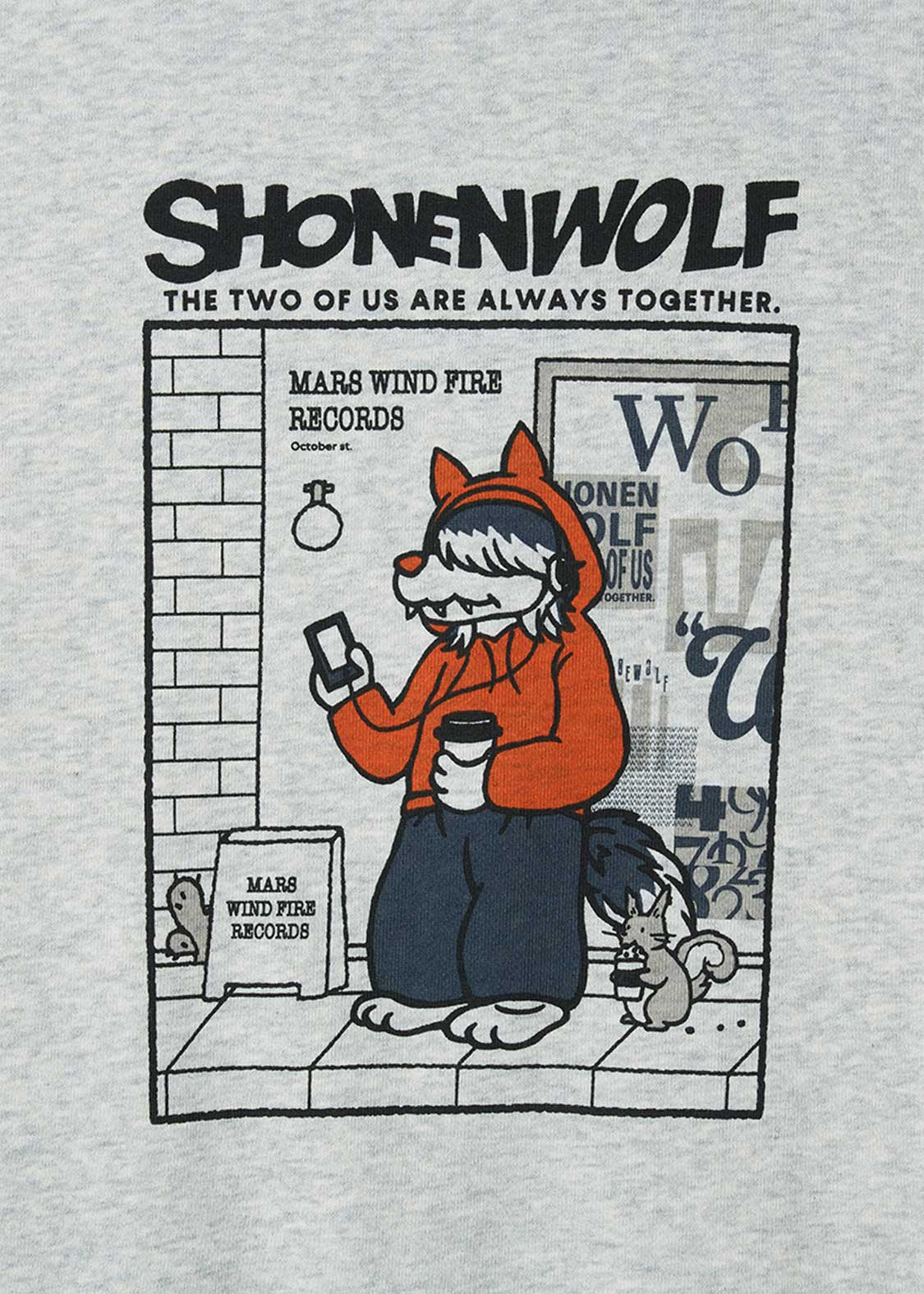 幼い頃公園で出会った大親友のリスくんと、いつも一緒の心優しいオオカミ少年。インナーカラーをいれたヘアスタイルが特徴です。ポップなイラストタッチが魅力のデザイン。