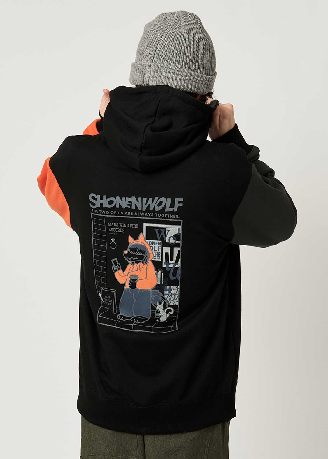 幼い頃公園で出会った大親友のリスくんと、いつも一緒の心優しいオオカミ少年。インナーカラーをいれたヘアスタイルが特徴です。ポップなイラストタッチが魅力のデザイン。