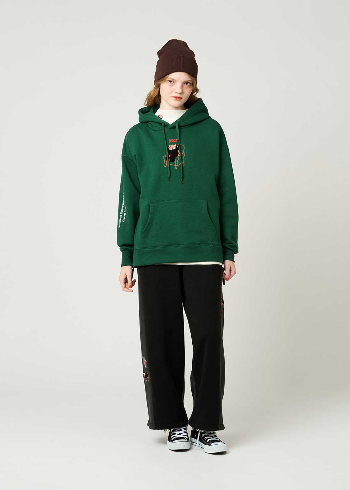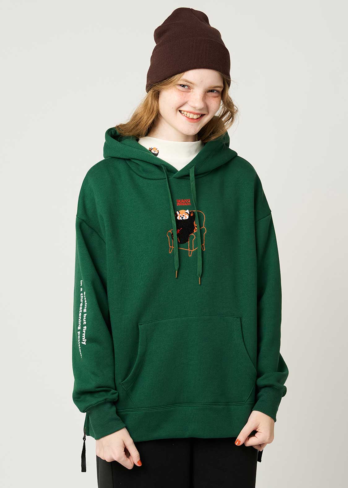 イスに座ってくつろぎながらも威嚇は欠かさないレッサーパンダ。キュートでありながら、シンプルなデザインに仕上げたところがポイントです。