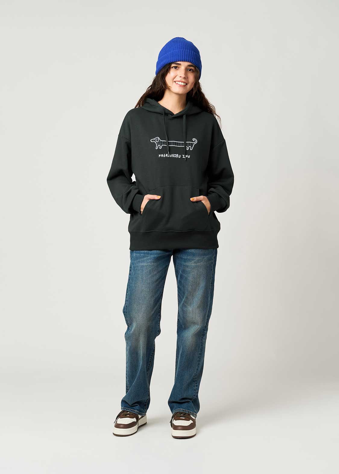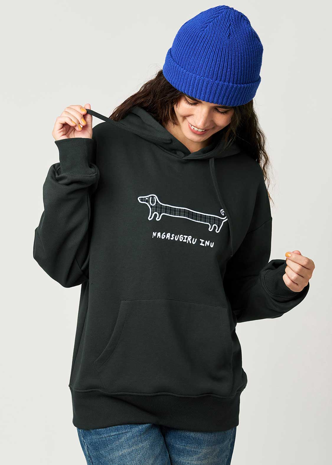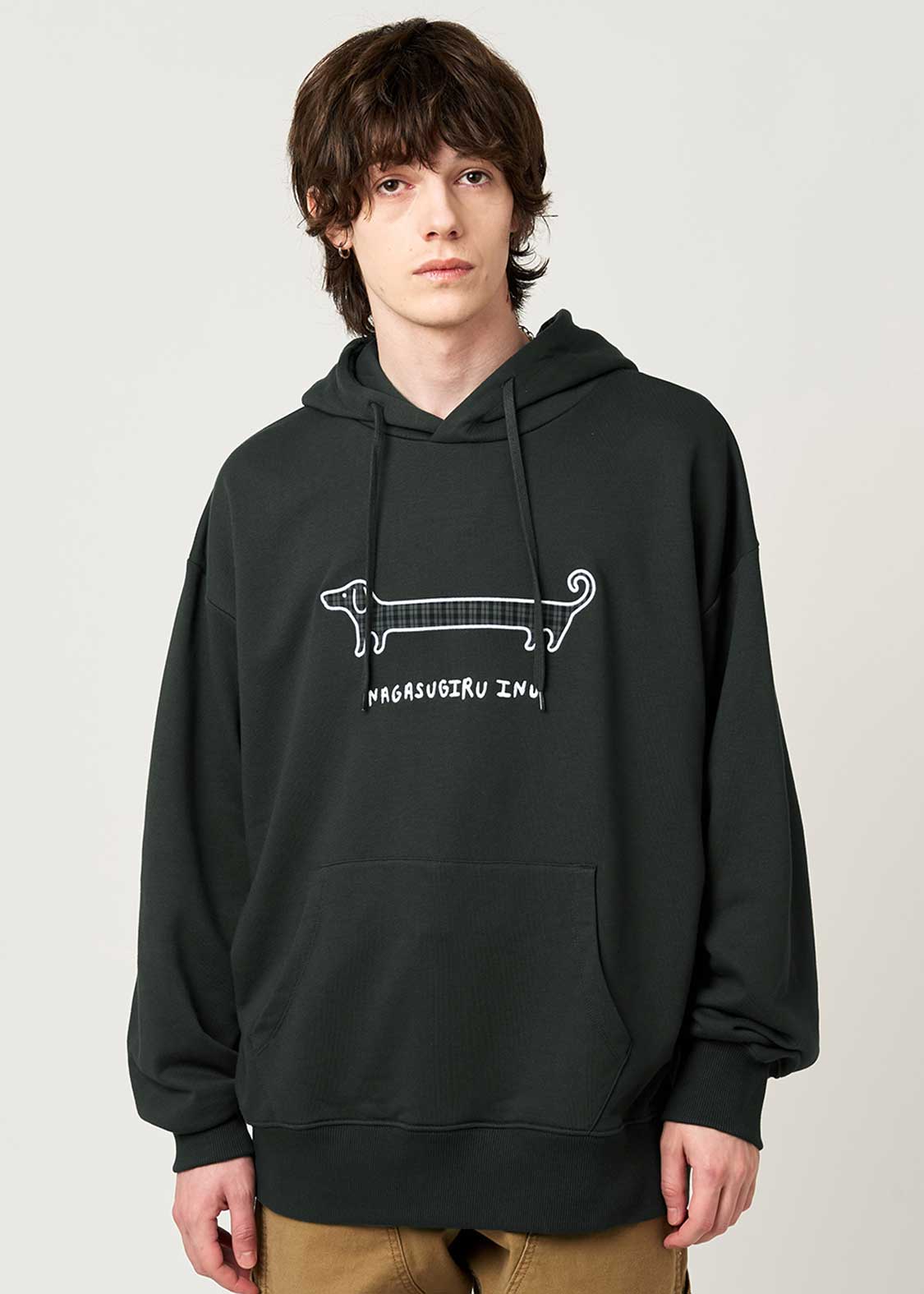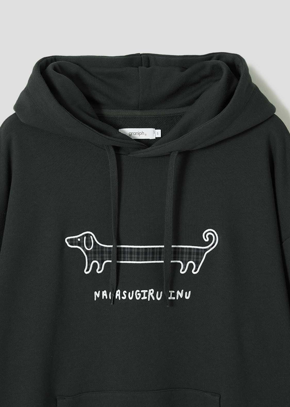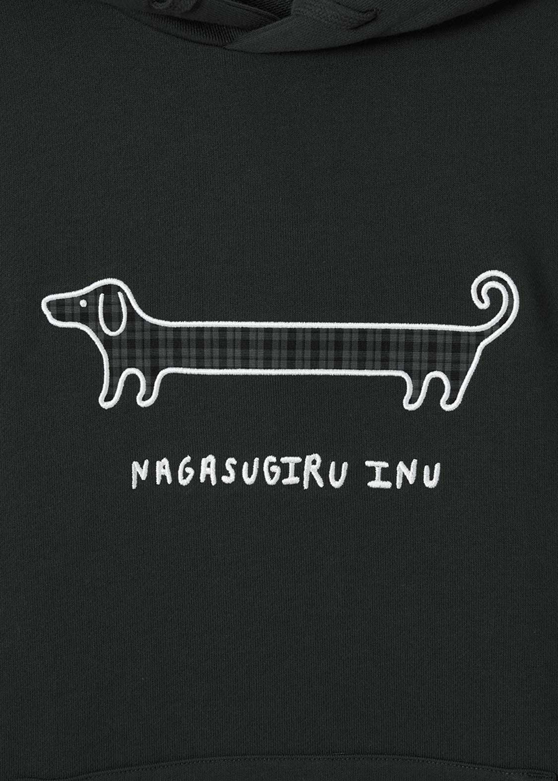 びよーんと伸びた長い胴、ロゴにもある通りまさに「ナガスギルイヌ」。決してダックスフントではなく、あくまで「ナガスギルイヌ」なのです。ユニークなコンセプト、思わず和んでしまう癒やしに溢れた作品です。