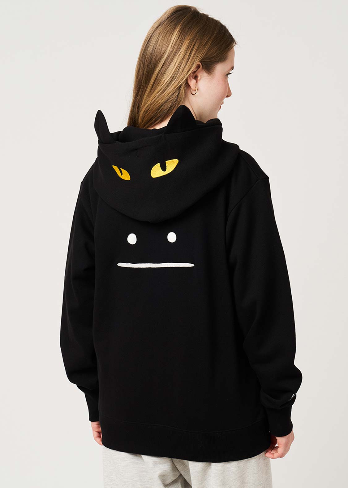 ・後ろから見たときにフードがきれいに立ち上がり、さりげない遊び心がのぞくデザインに仕上げています。
