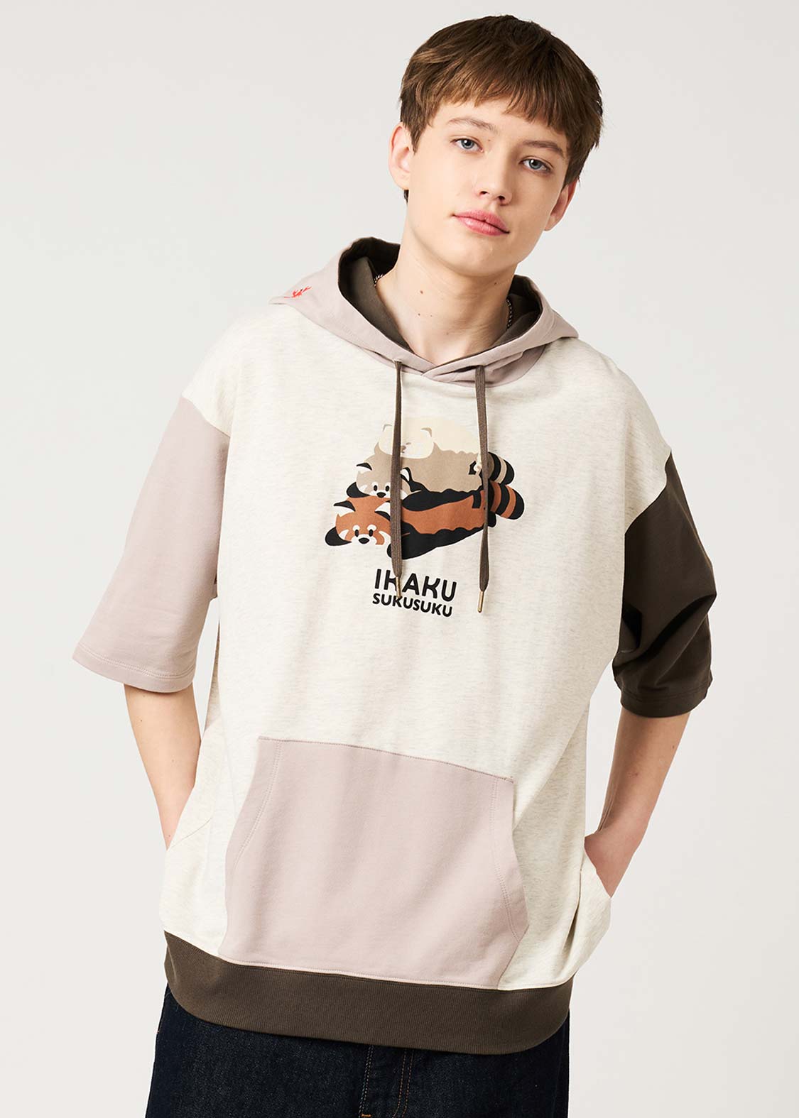 ・本体にコットン100%のミニ裏毛素材を使用した、やわらかな肌触りの5分袖パーカーです。