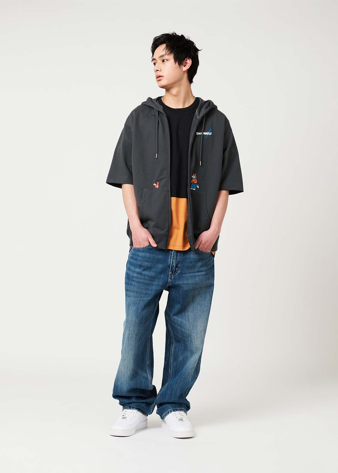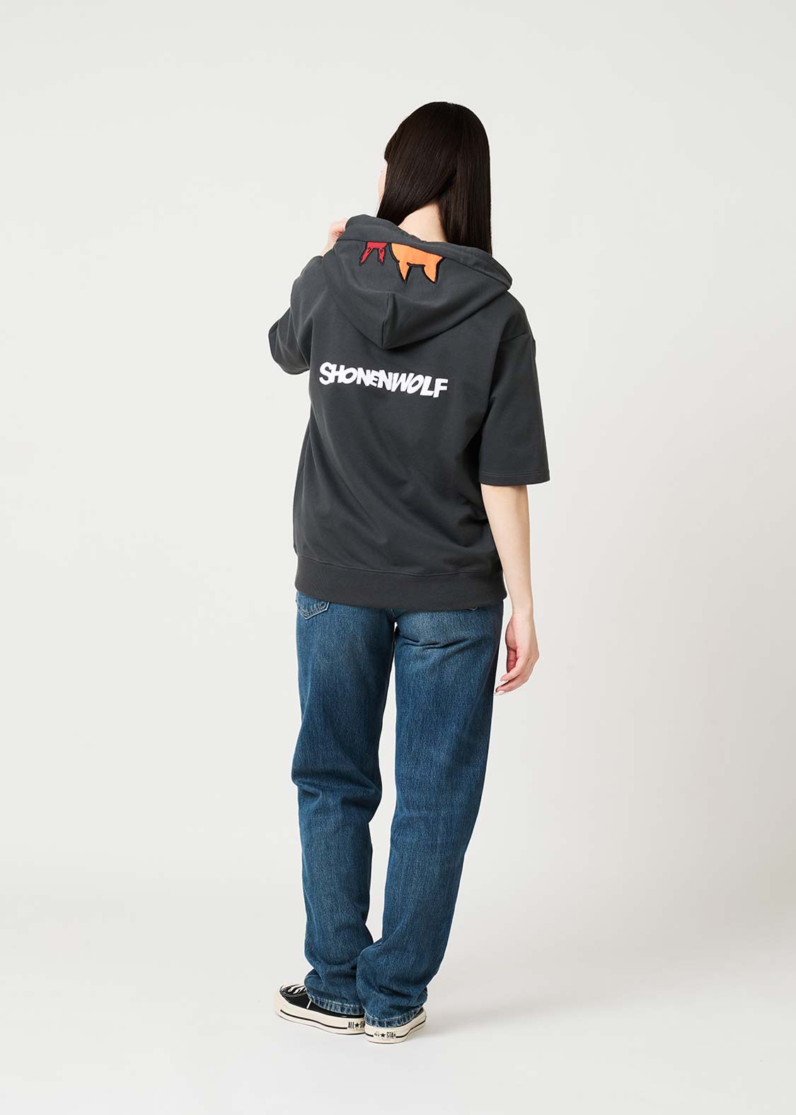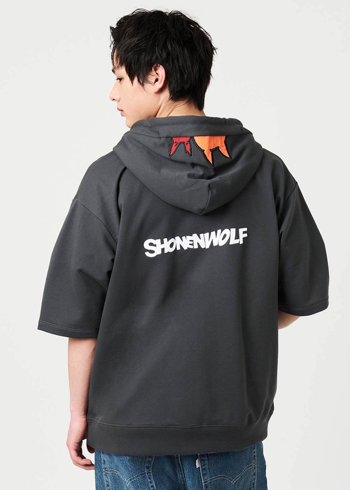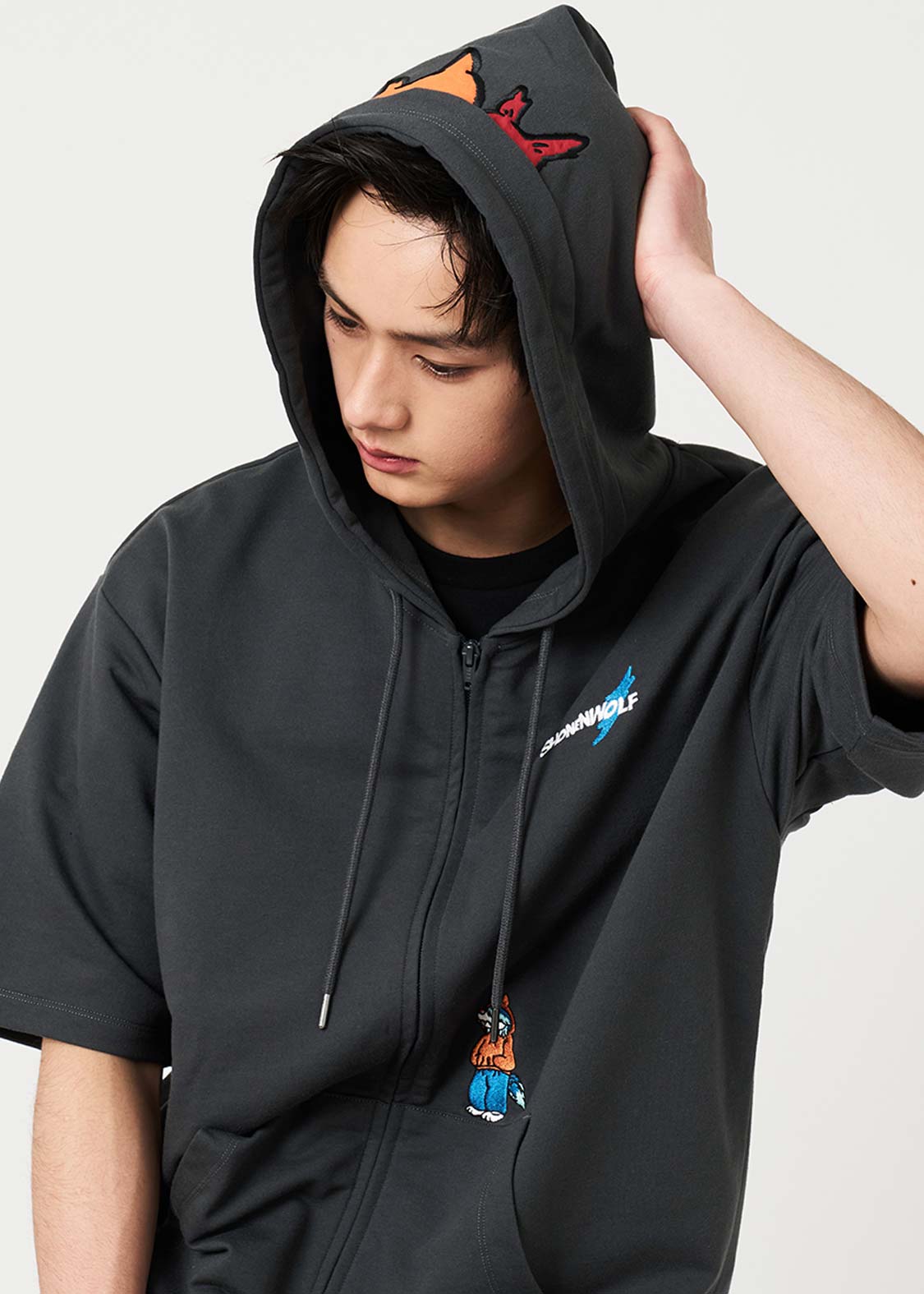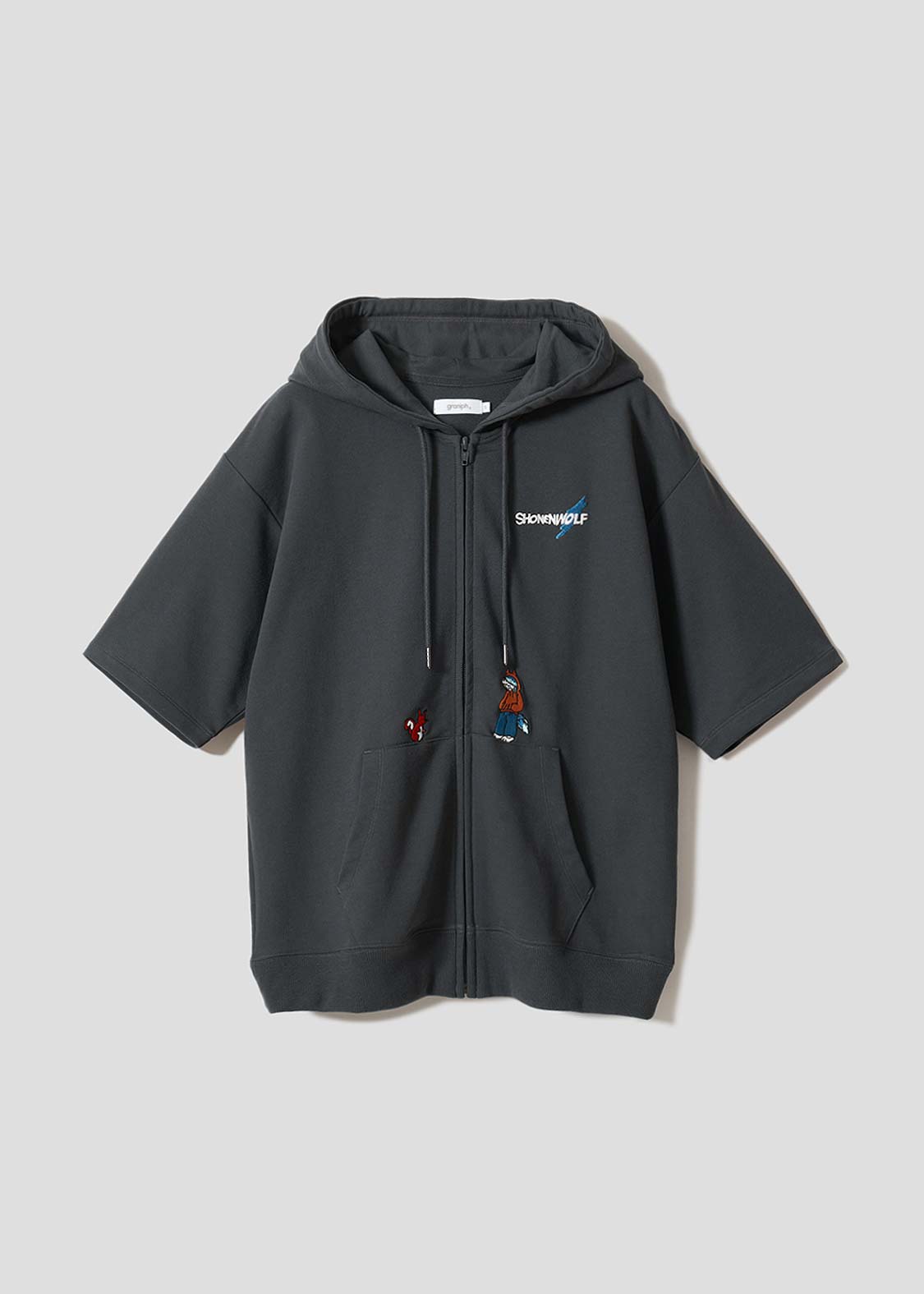 ・コットン混の薄手ミニ裏毛素材を使用した、やわらかな肌触りの5分袖ジップパーカーです。