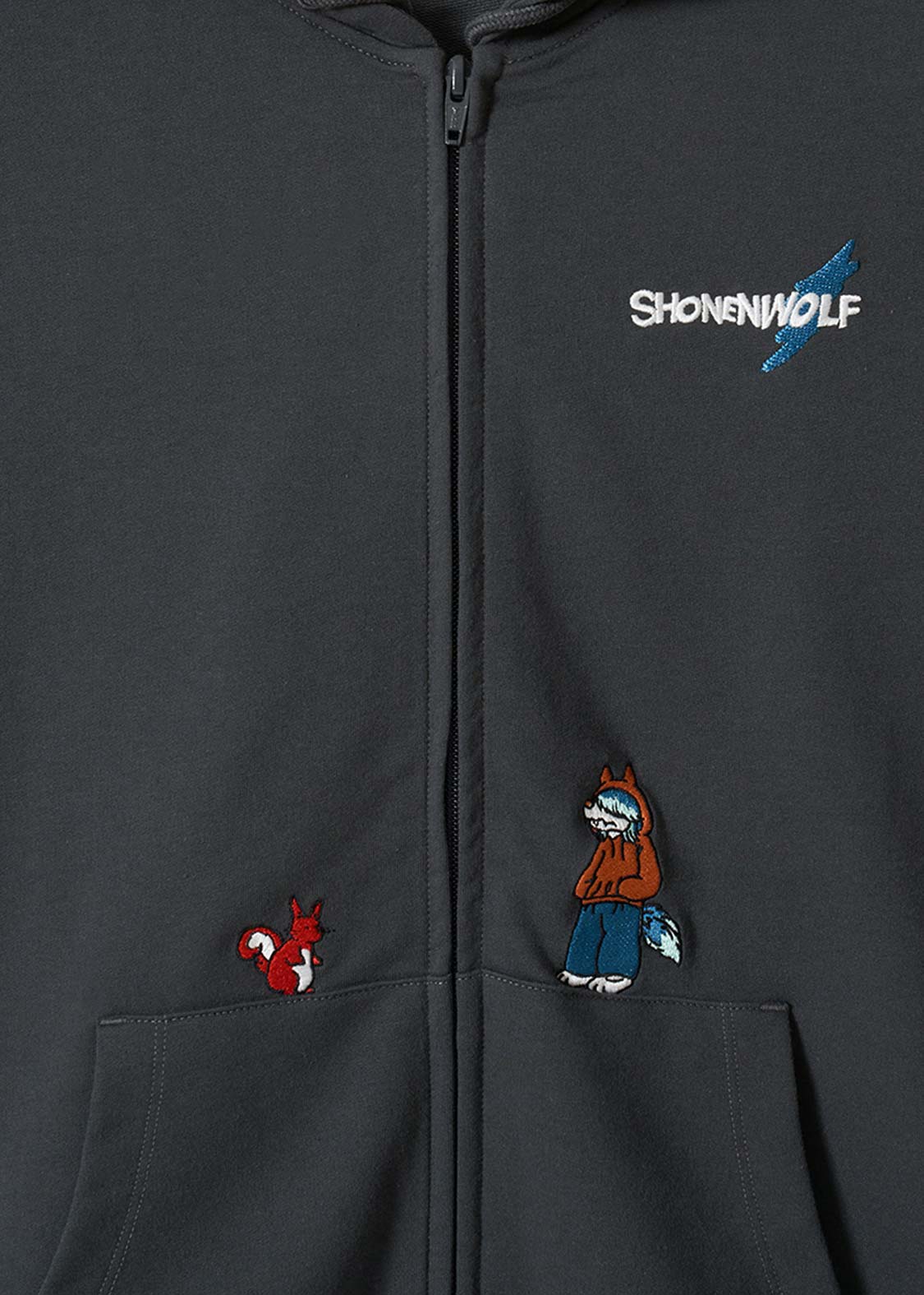 幼い頃公園で出会った大親友のリスくんと、いつも一緒の心優しいオオカミ少年。インナーカラーをいれたヘアスタイルが特徴です。ポップなイラストタッチが魅力のデザイン。