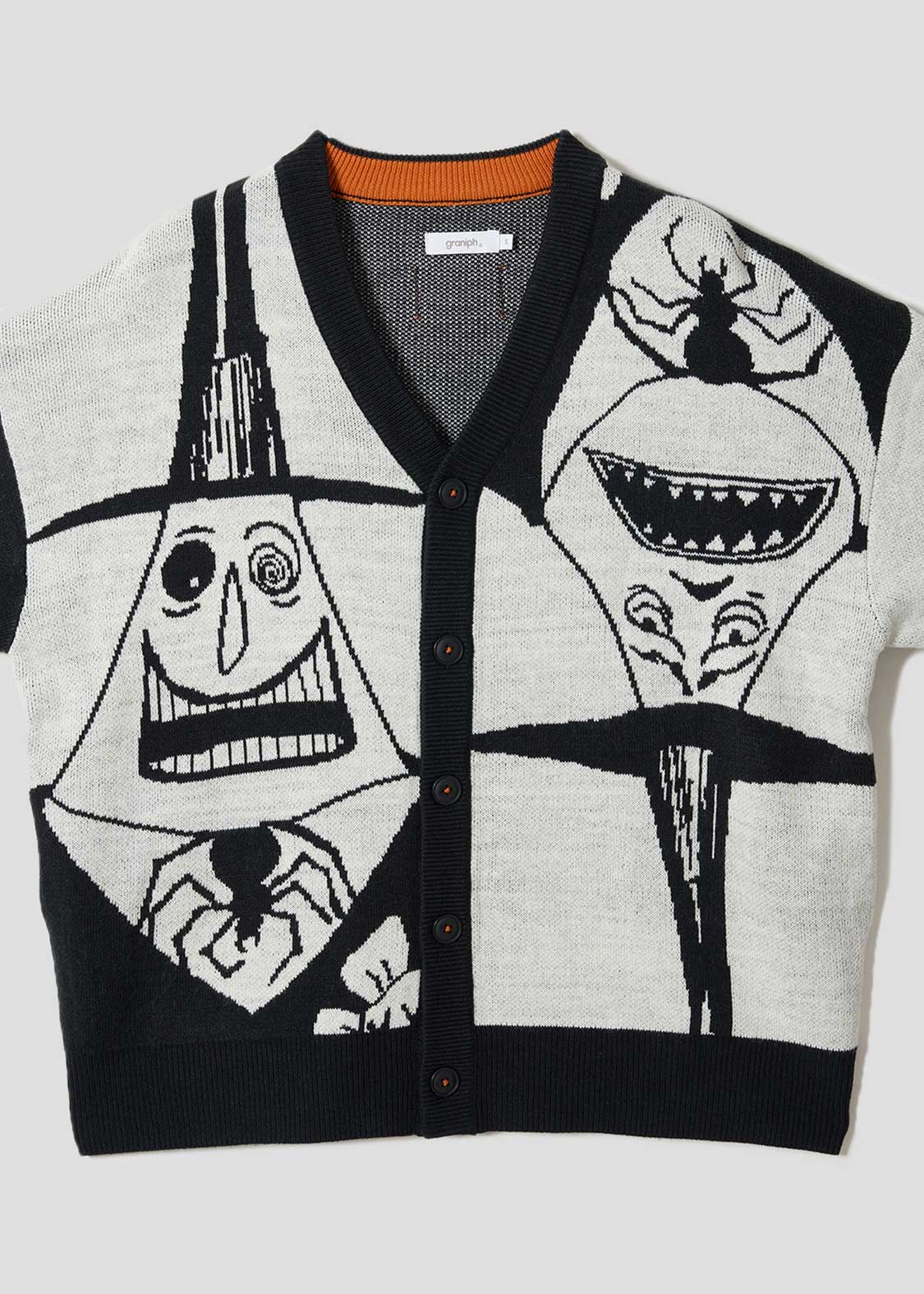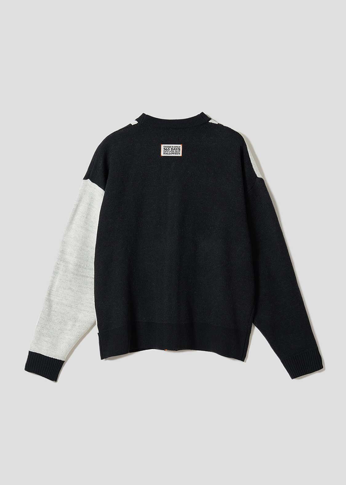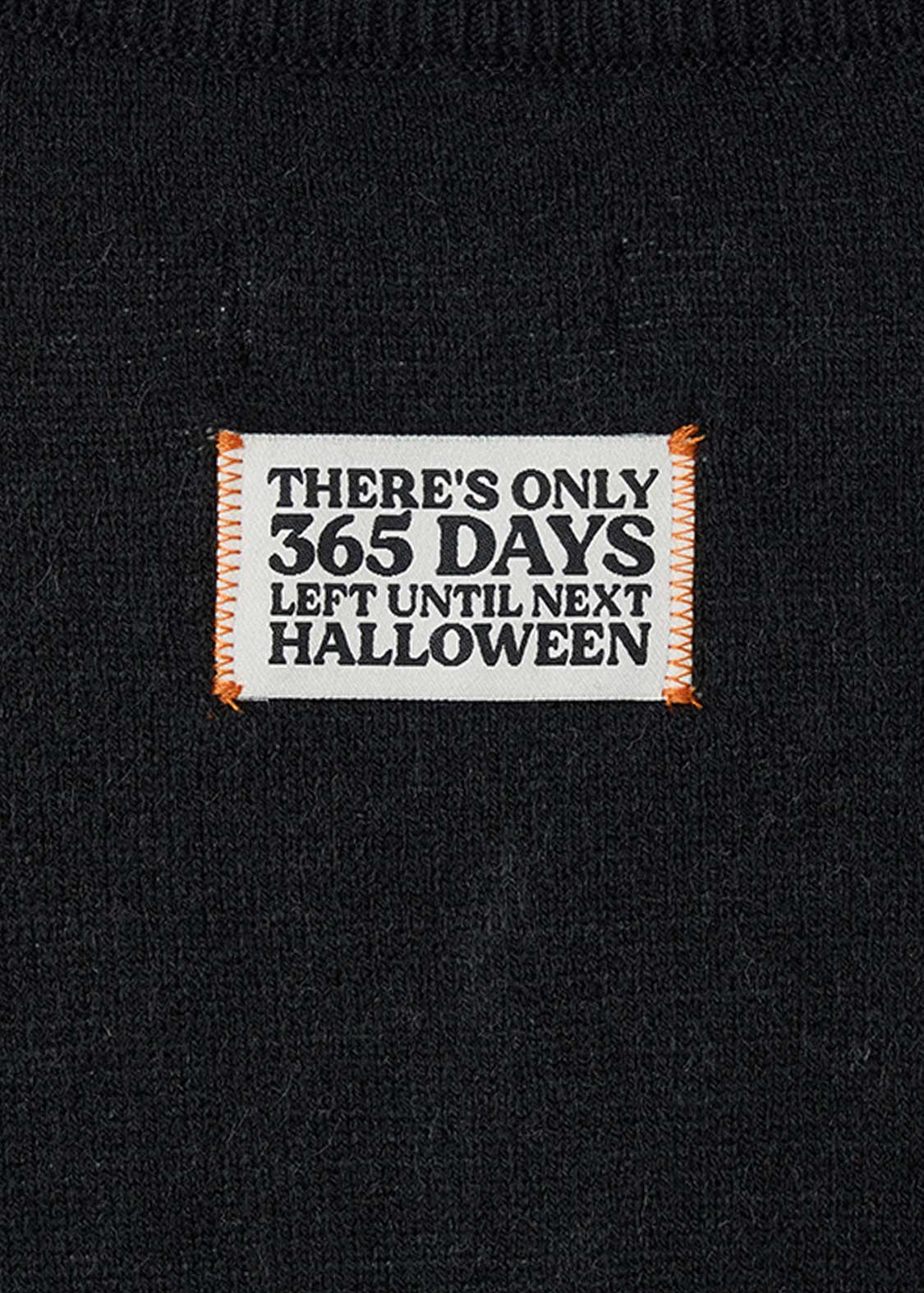 ハロウィン・タウンの町長メイヤーをジャカードで表現したデザイン。メイヤーは前後に違う顔を持っていて、感情によって入れ替わる表情が楽しめます。バックには「次のハロウィンまであとたったの365日」の英語の織りネーム付きです。