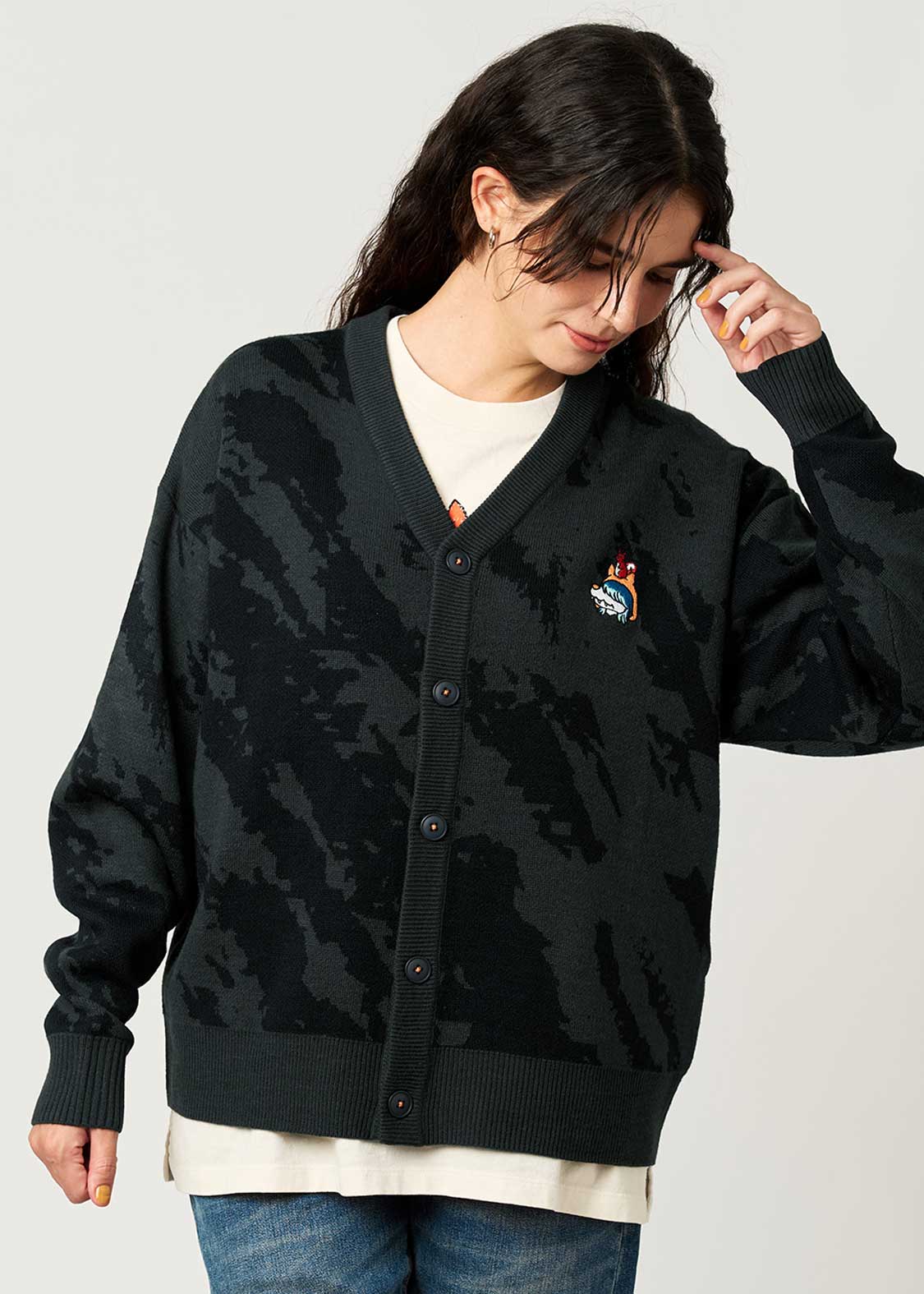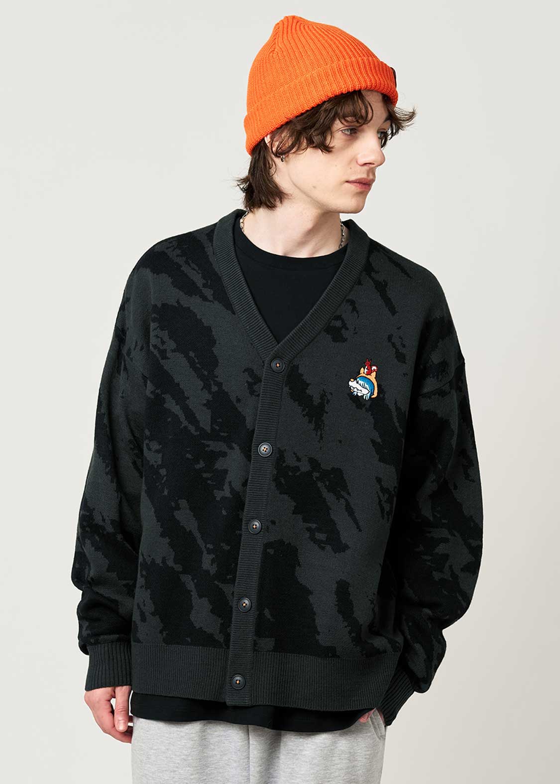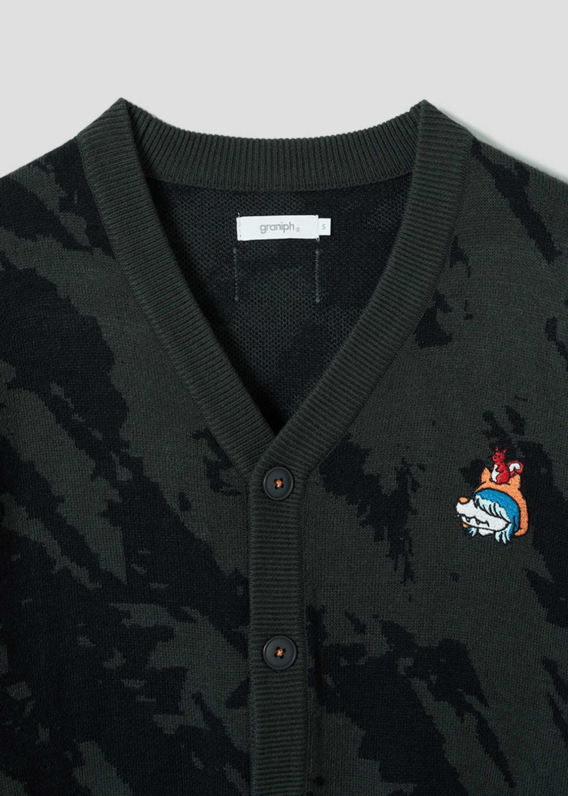 ・ジャカードで柄を表現した、Vネックのニットカーディガン。