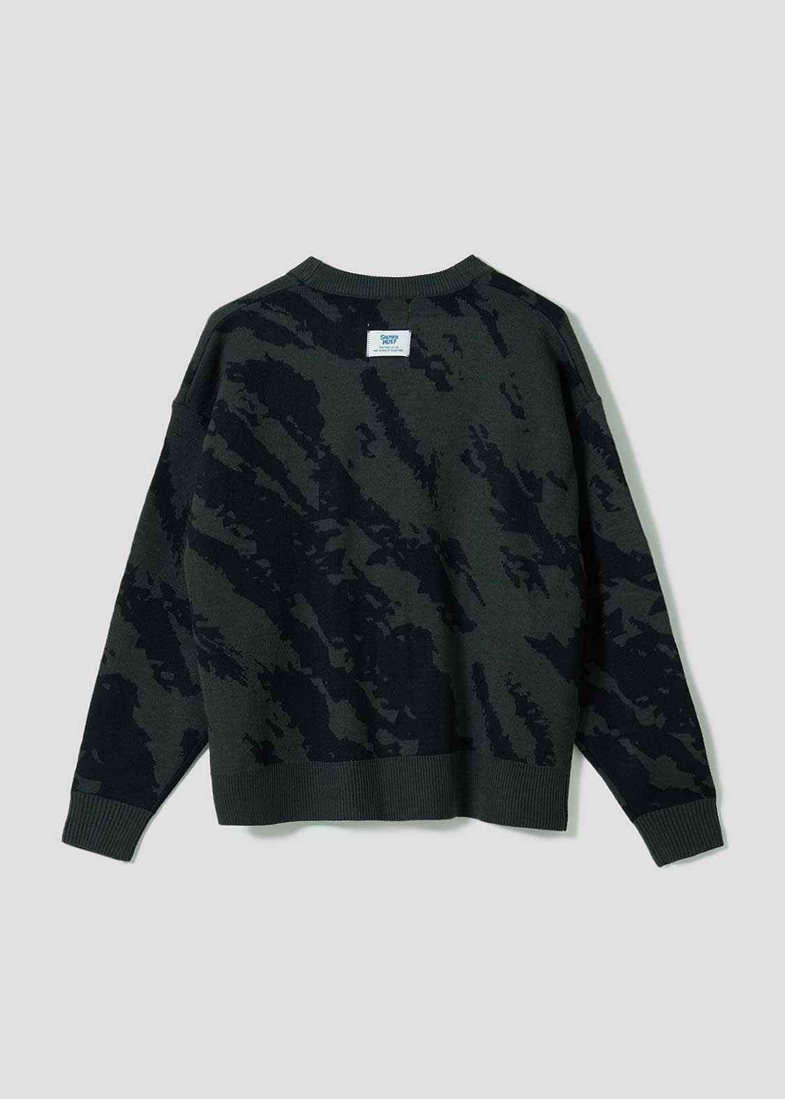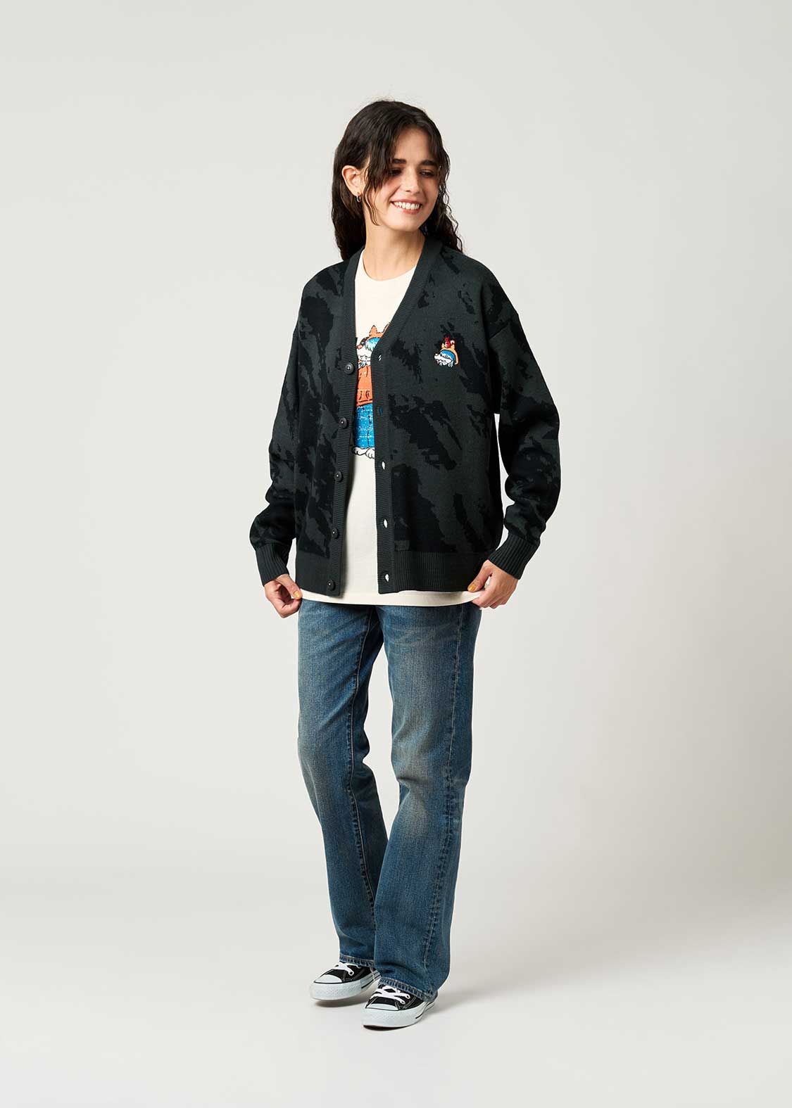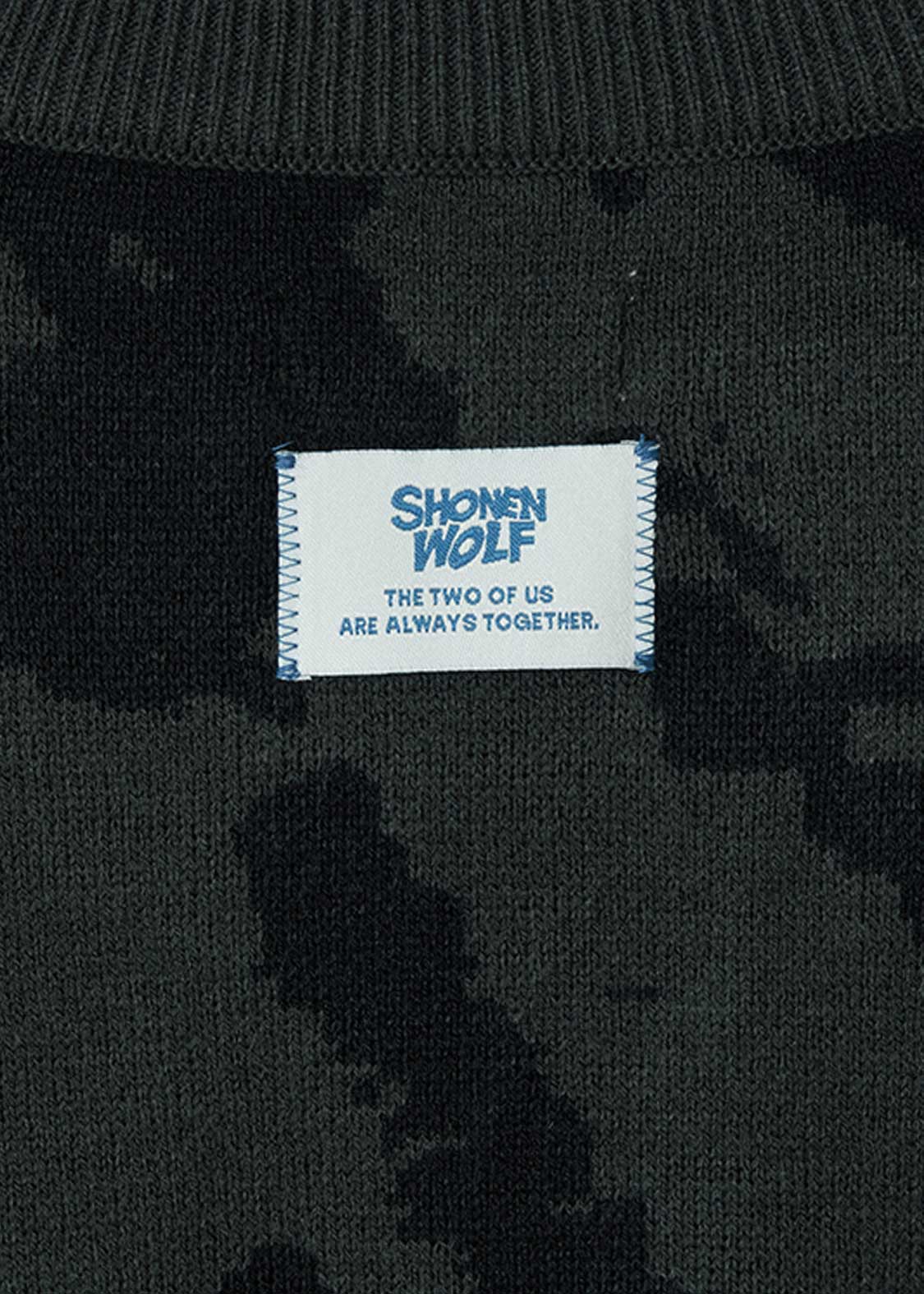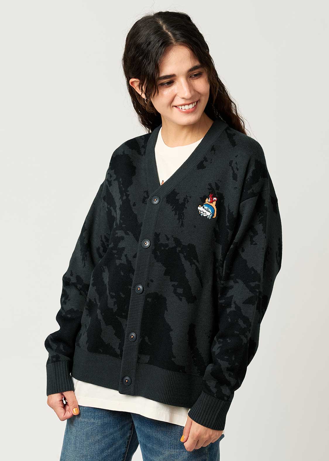 ・ジャカードで柄を表現した、Vネックのニットカーディガン。