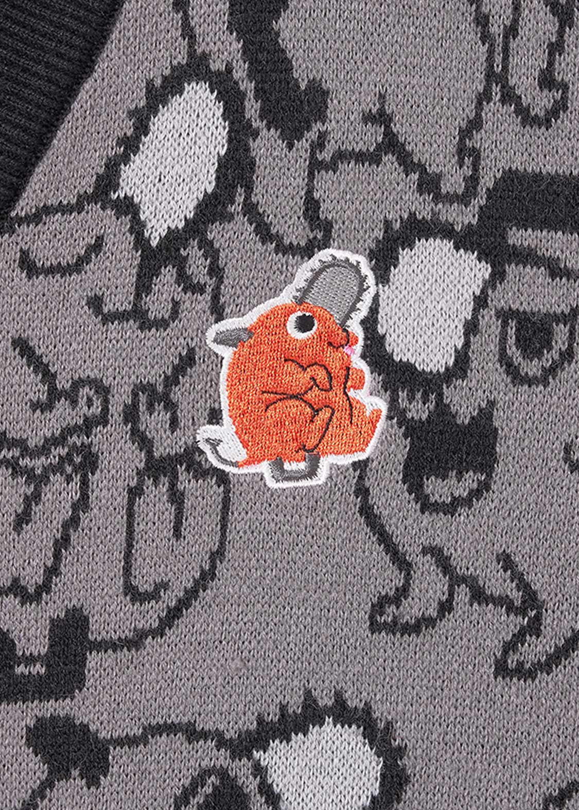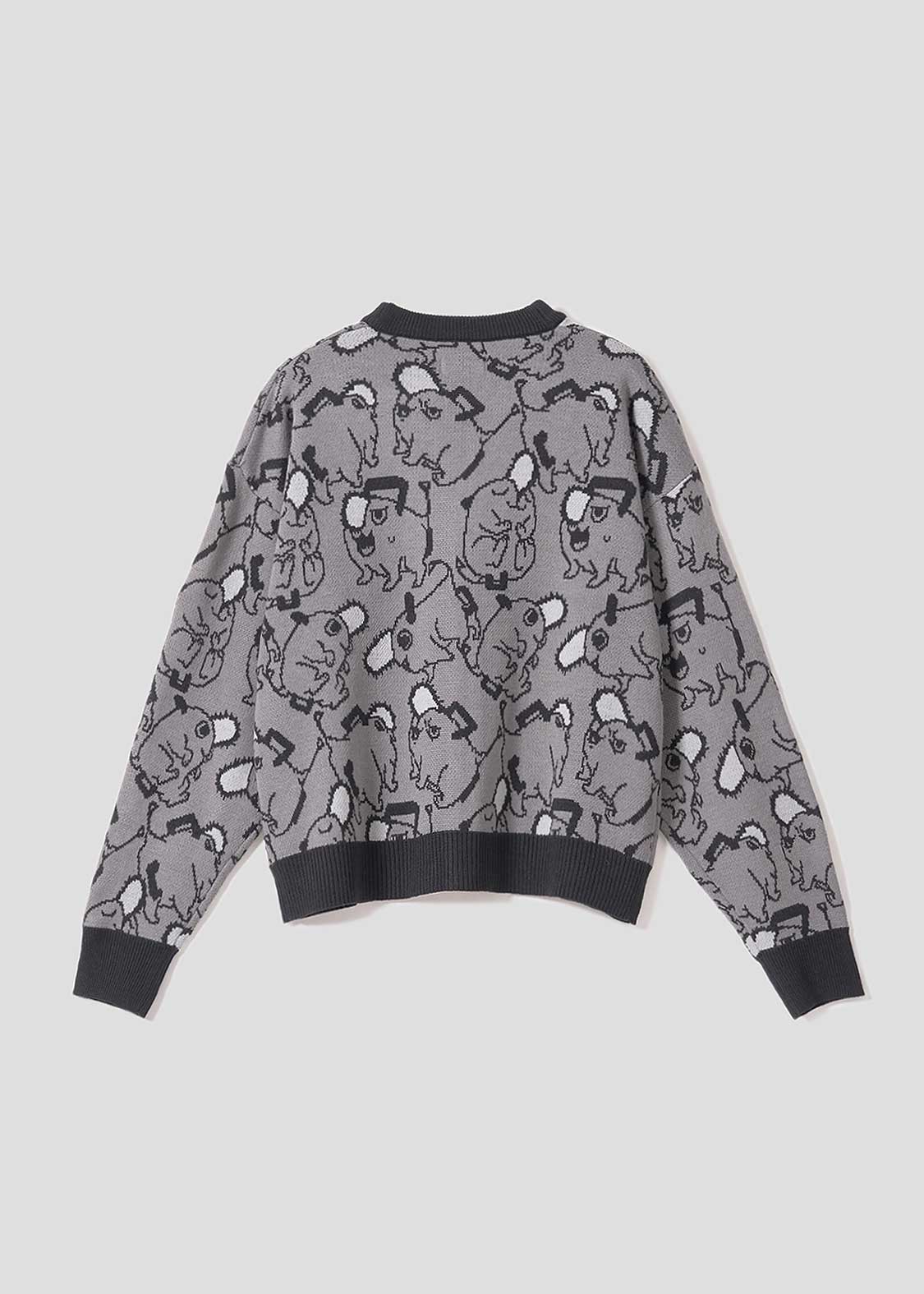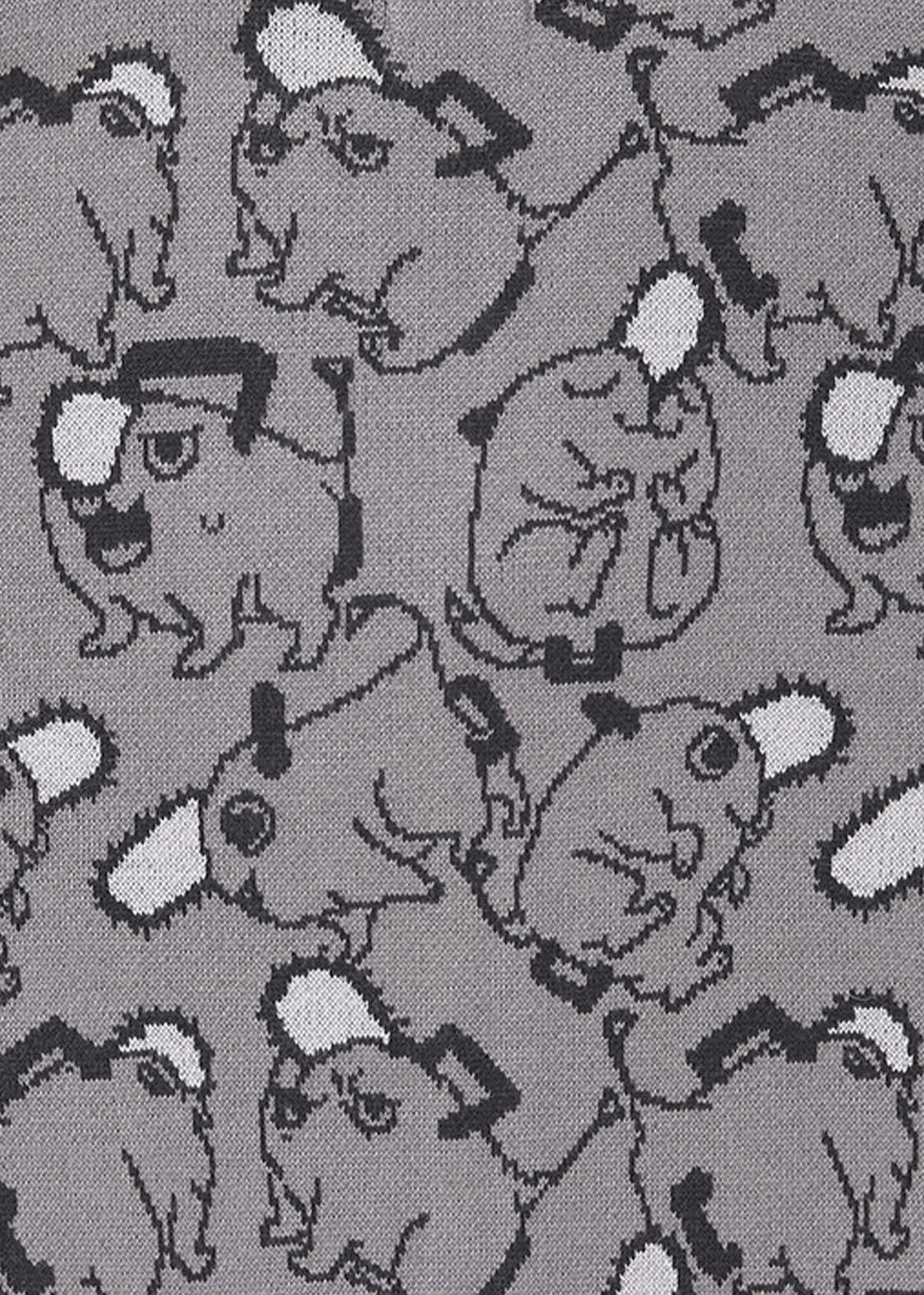 ポチタのバラエティ豊かな表情やポーズのパターン柄をジャガードで表現しました。胸元にはポチタのワッペンをあしらったポチタづくしのデザインです。