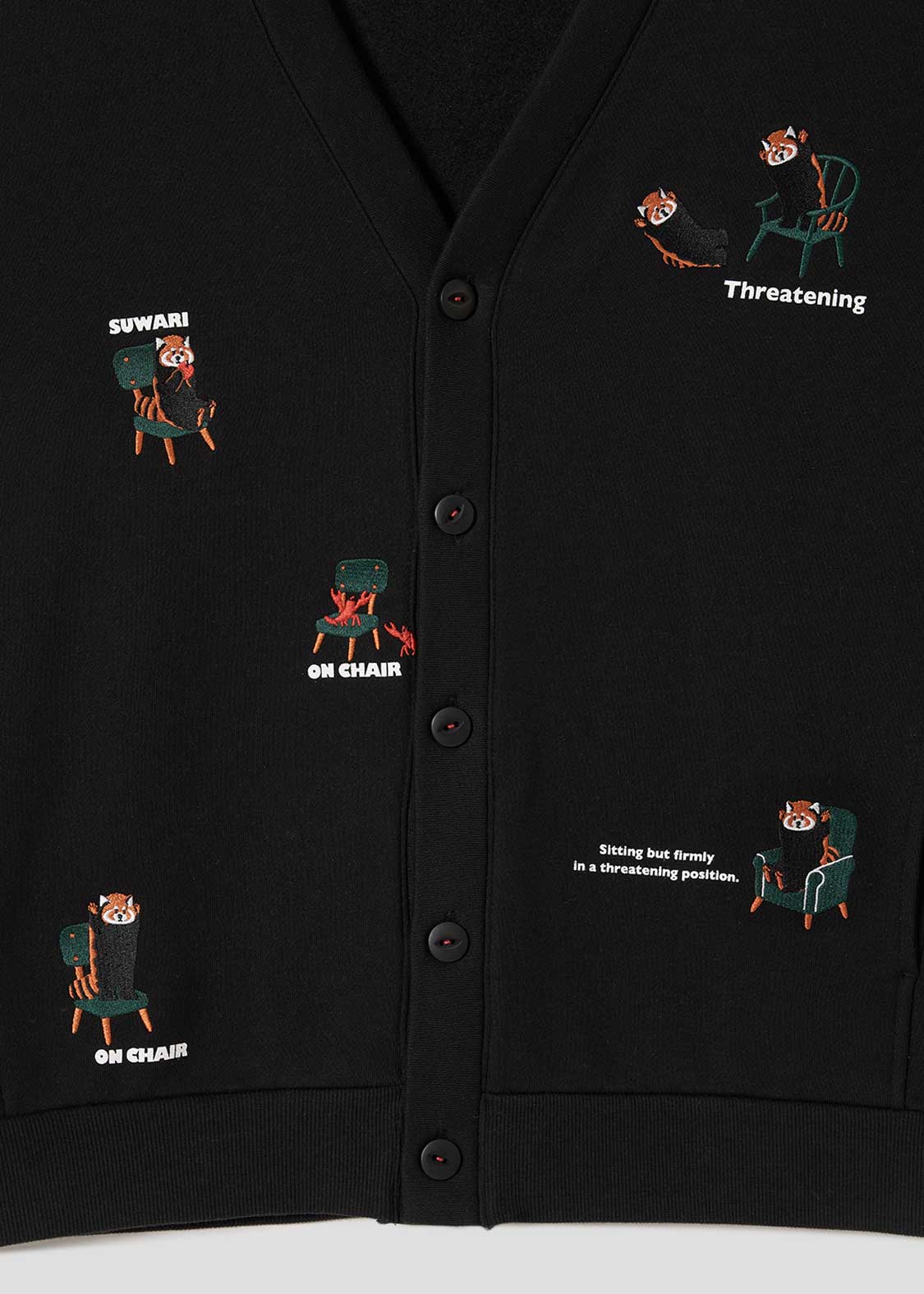 イスに座ってくつろぎながらも威嚇は欠かさないレッサーパンダ。キュートでありながら、シンプルなデザインに仕上げたところがポイントです。