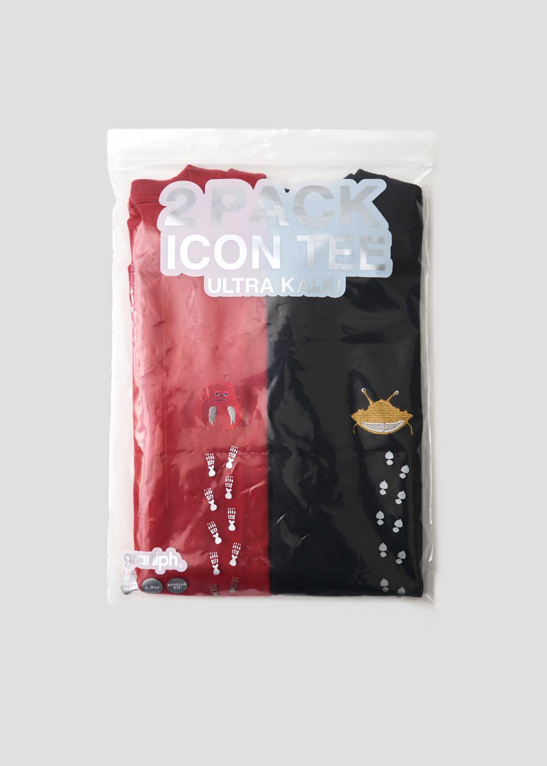 ピグモンとカネゴンをそれぞれワンポイント刺繍で表現した2枚セット。パッケージの足跡もかわいいです。