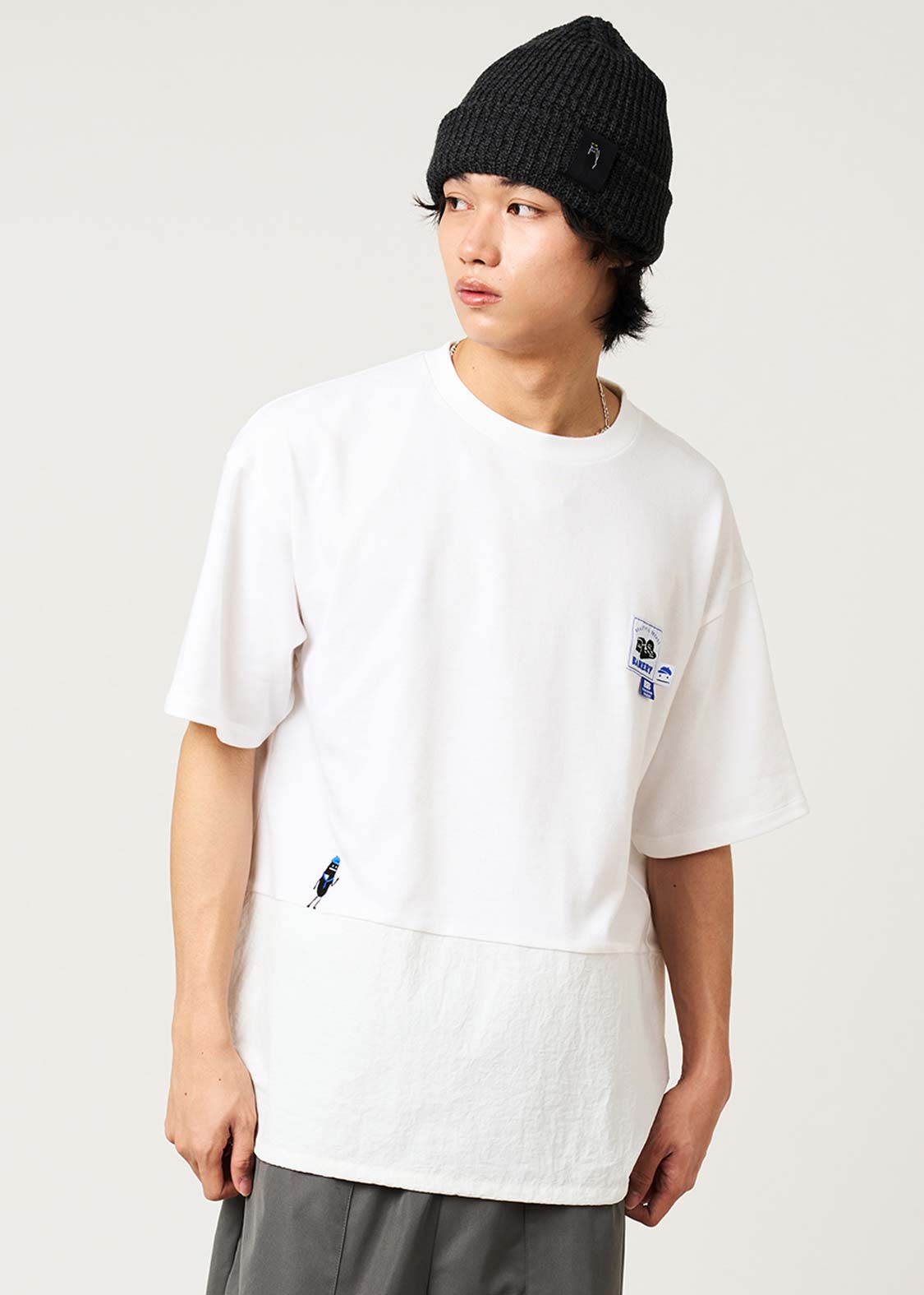 ・ミニ裏毛とナイロンを組み合わせた、異なる質感が映えるTシャツです。