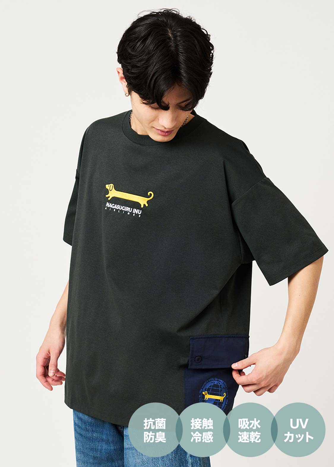 ・身頃に多機能素材「WONDER DRY」を使用したTシャツです。
