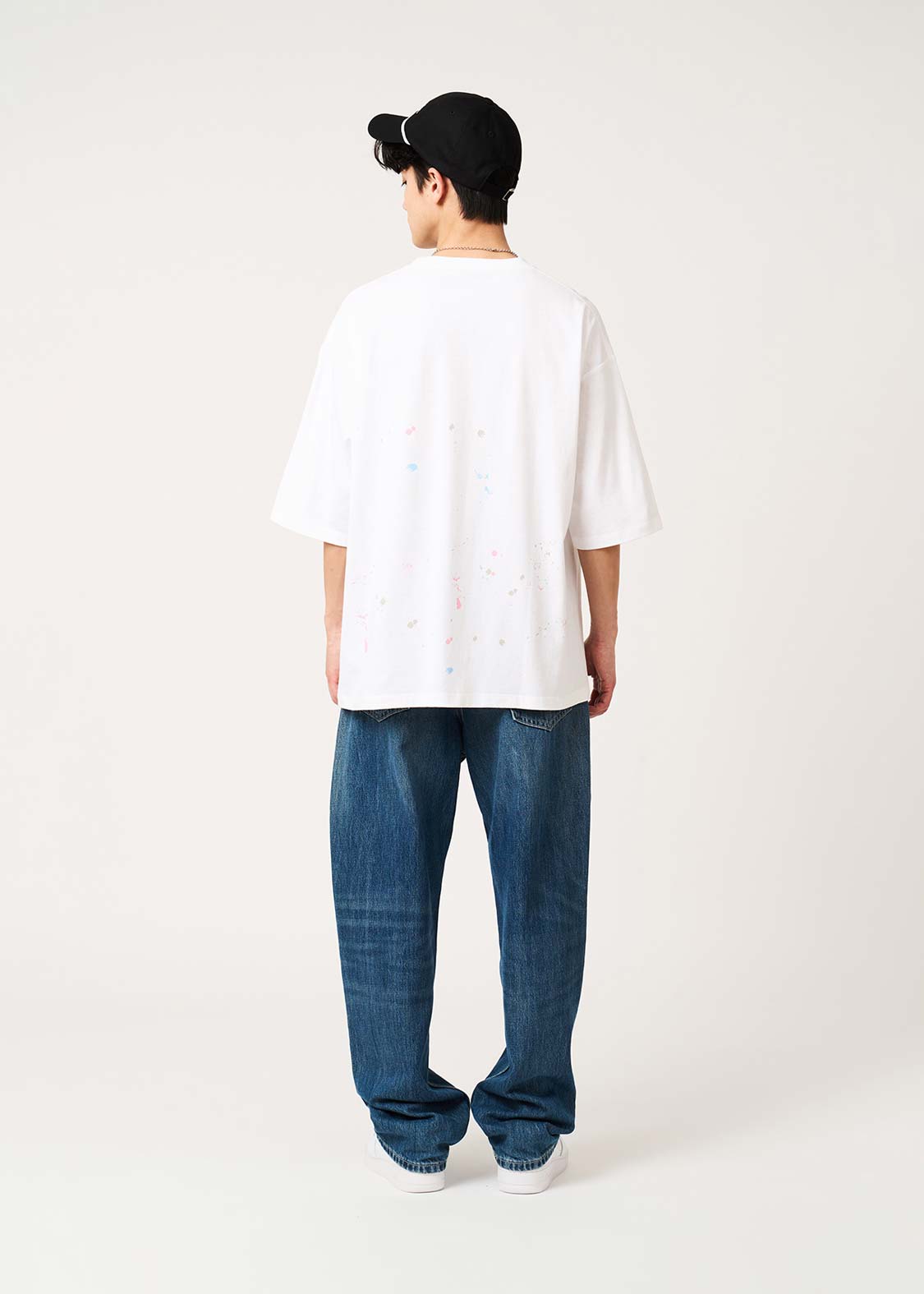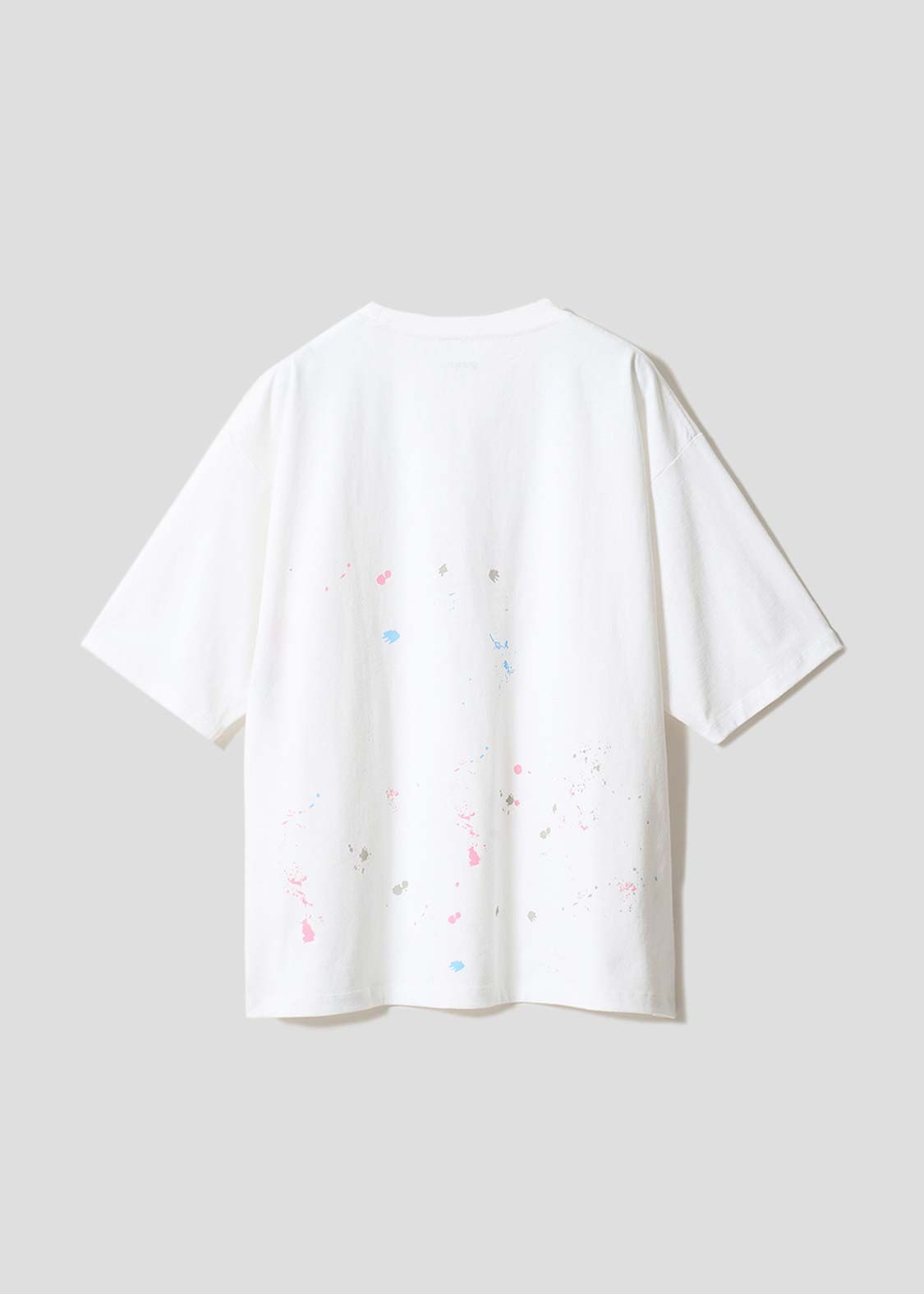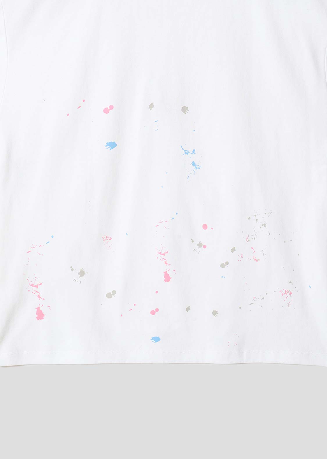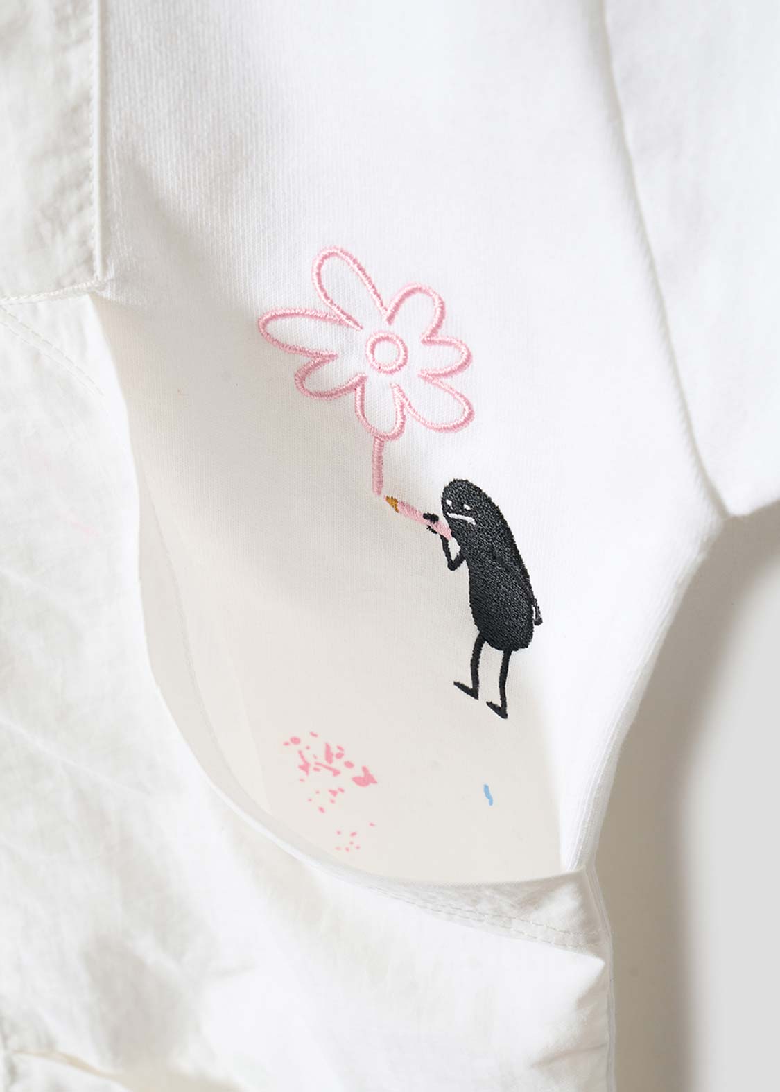 ・ナイロンワッシャー生地を使用したポケットや、ペイントが飛び散ったようなデザインがアクセントになっています。