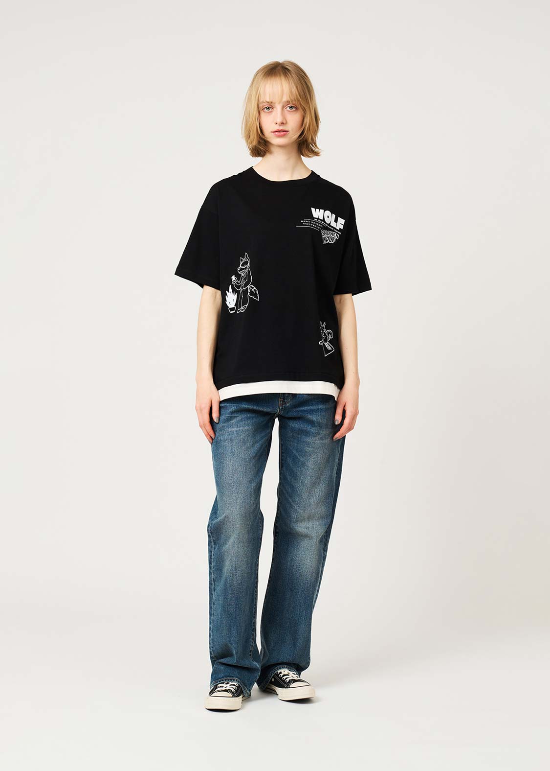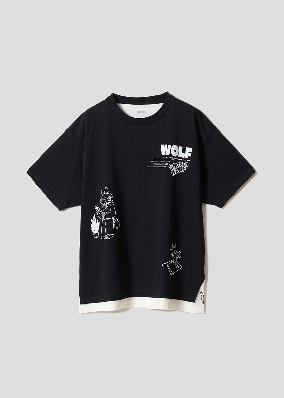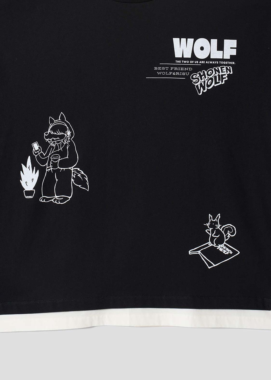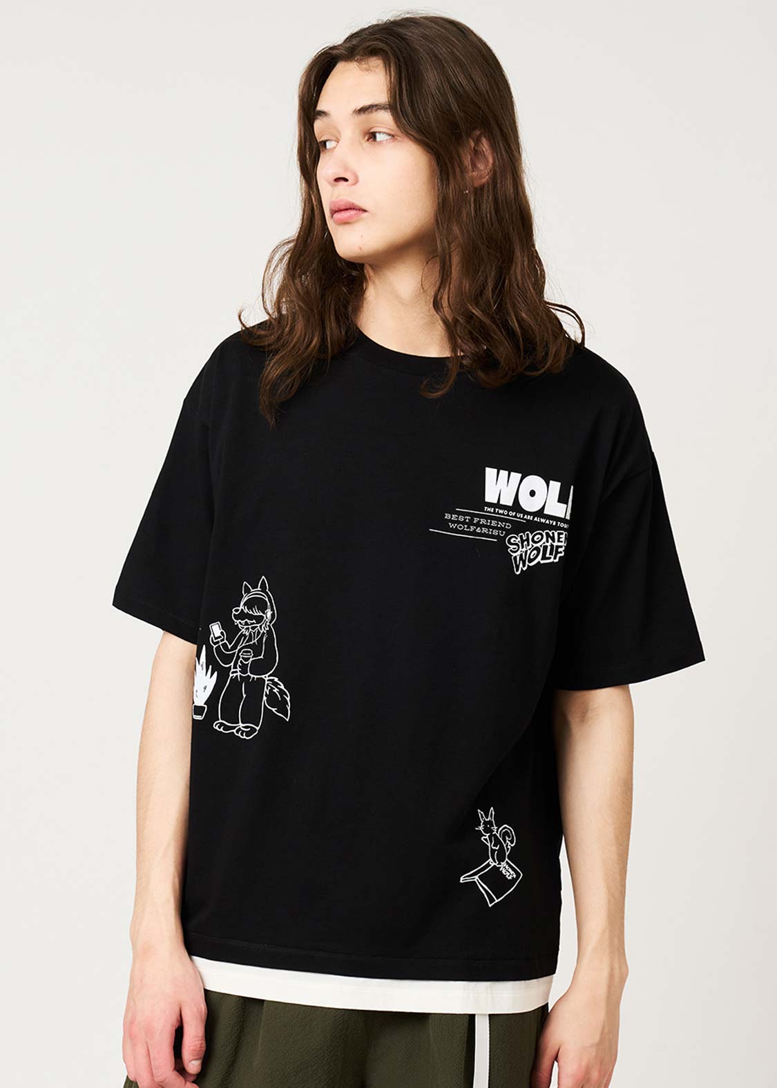 幼い頃公園で出会った大親友のリスくんと、いつも一緒の心優しいオオカミ少年。インナーカラーをいれたヘアスタイルが特徴です。ポップなイラストタッチが魅力のデザイン。