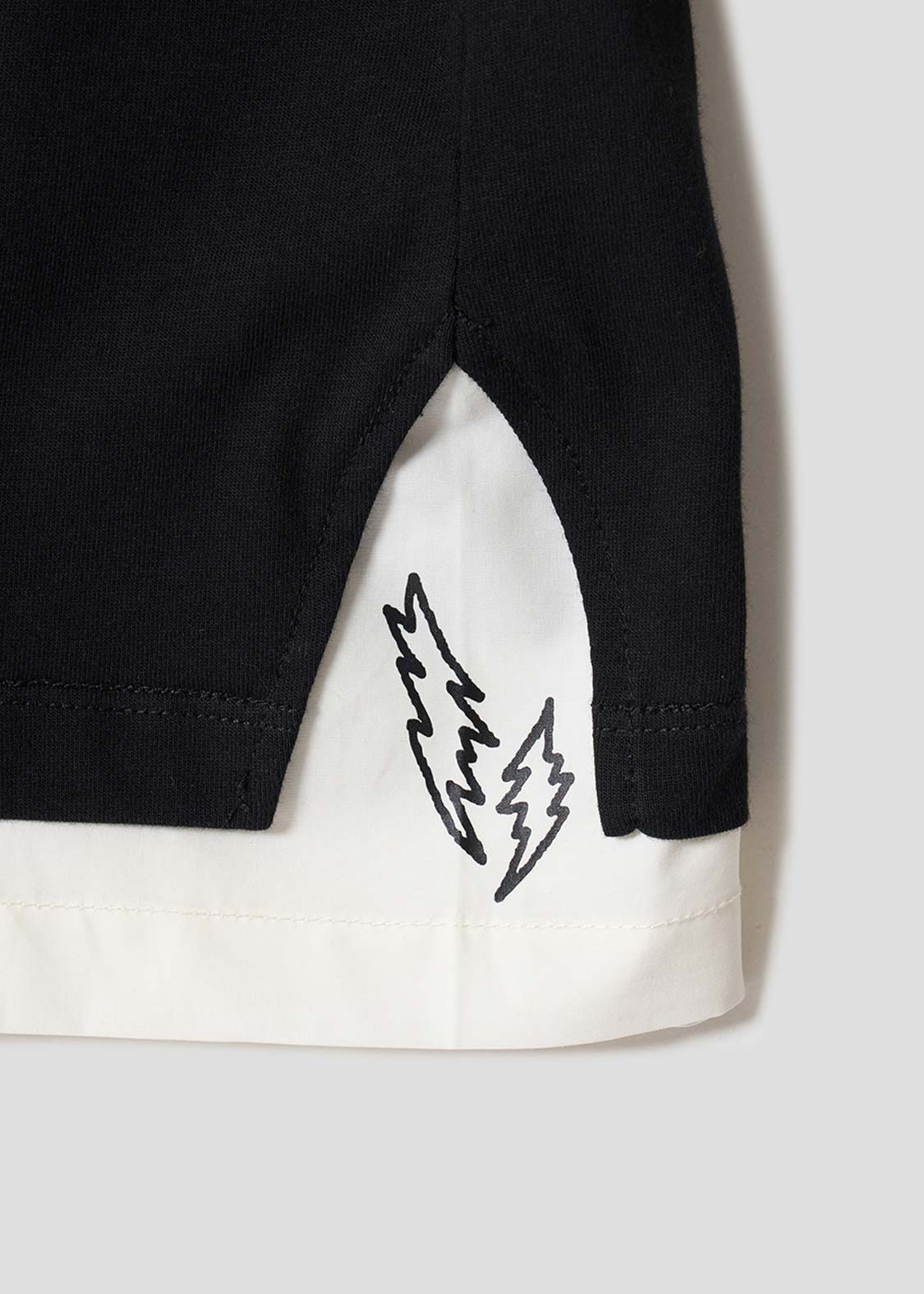 ・裾と背当ては生地を切り替え、レイヤード風のデザインに仕上げています。