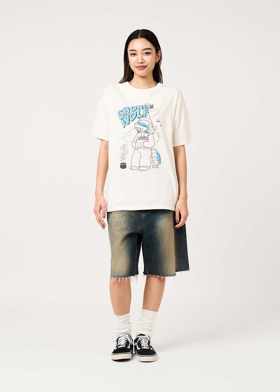 ・80年代のようなレトロなグラフィックと、3本針ステッチで仕上げたヴィンテージ感のある表情に。