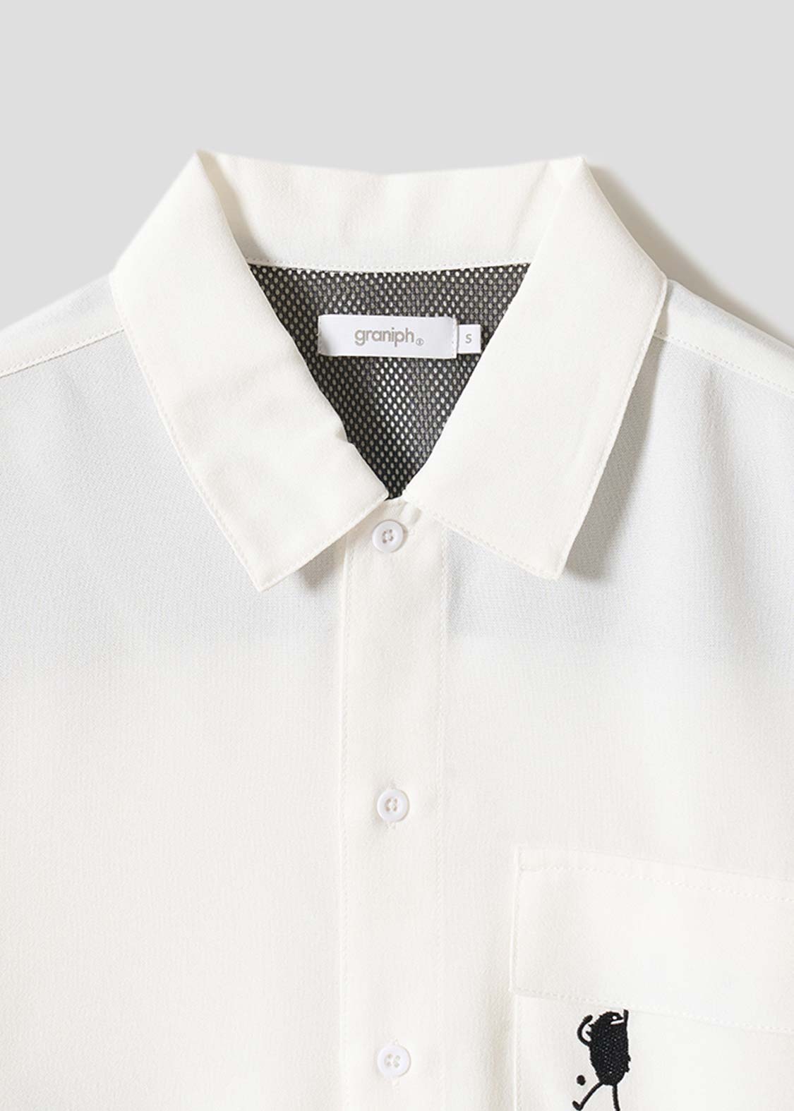 ・さらりとした肌触りで通気性に優れた生地を使用し、ヨーク裏にはメッシュ素材をあしらっています。