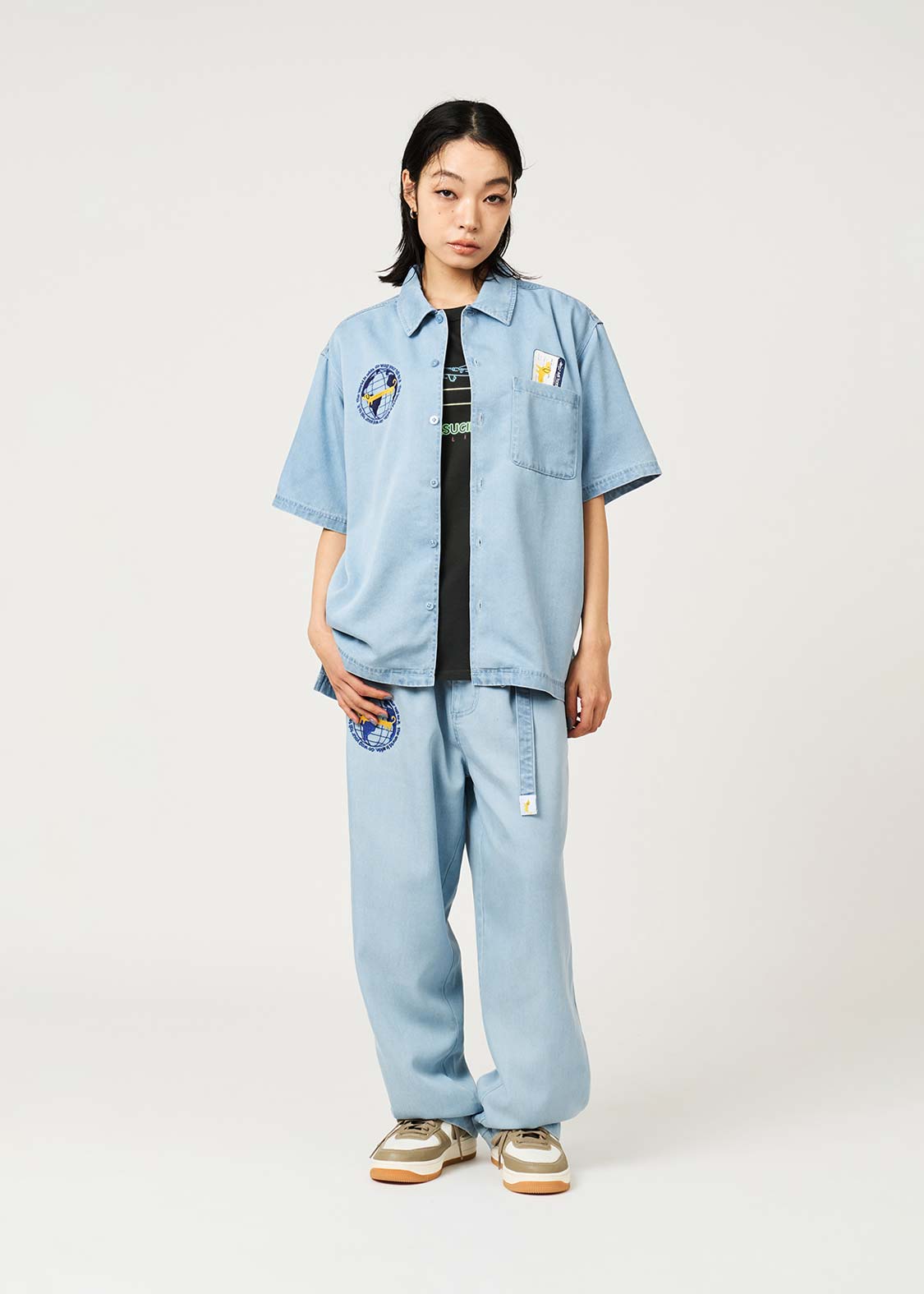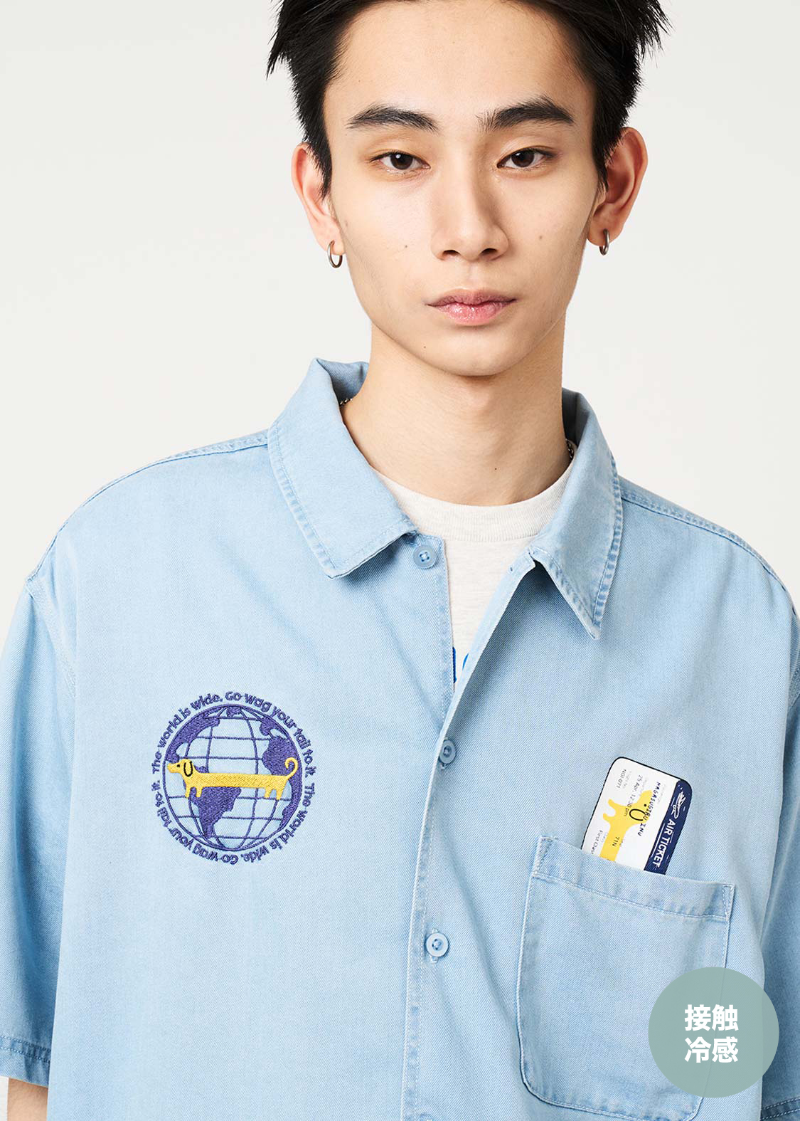 ・接触冷感加工を施した、ライトオンスのデニム生地を使用した半袖シャツです。