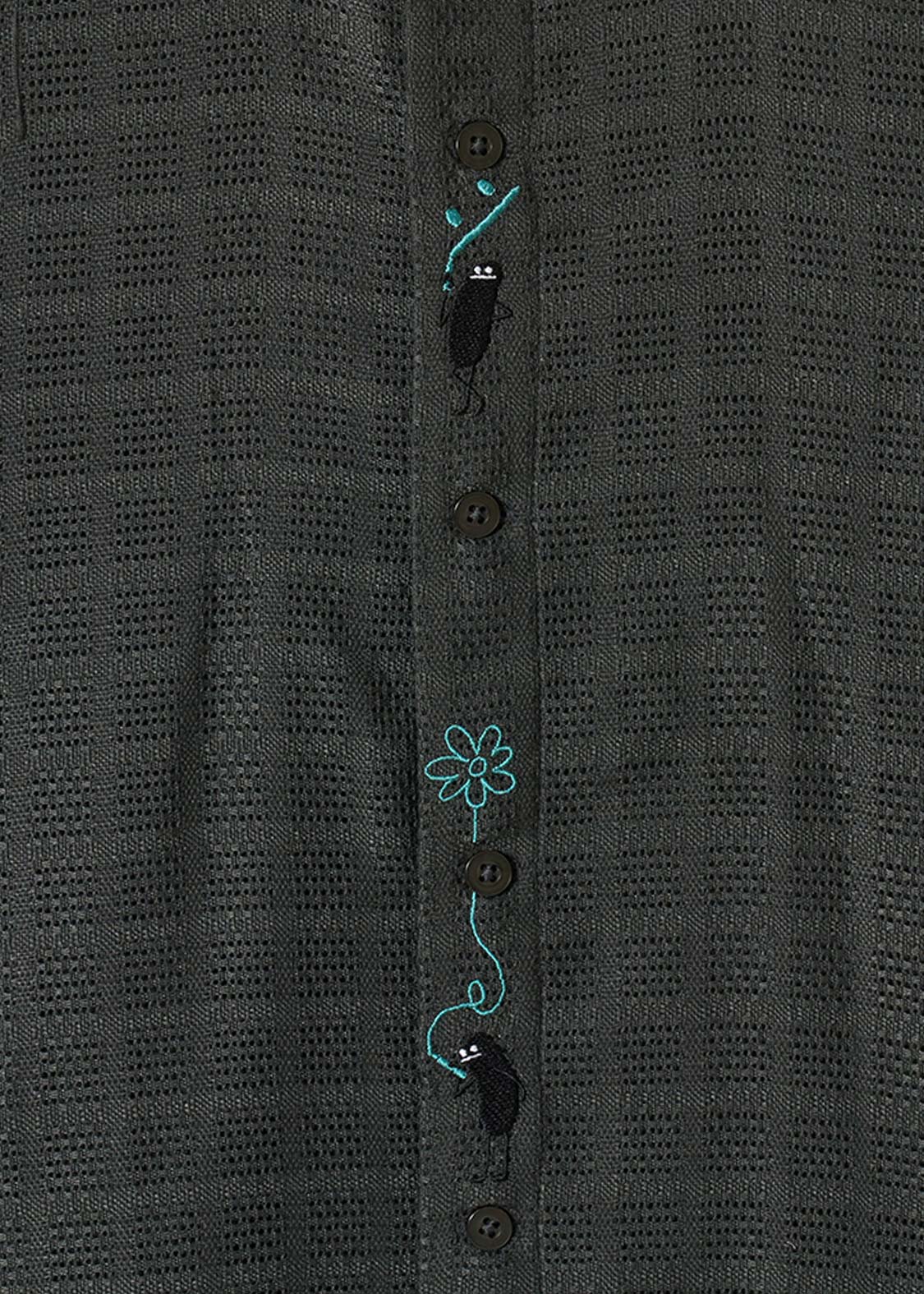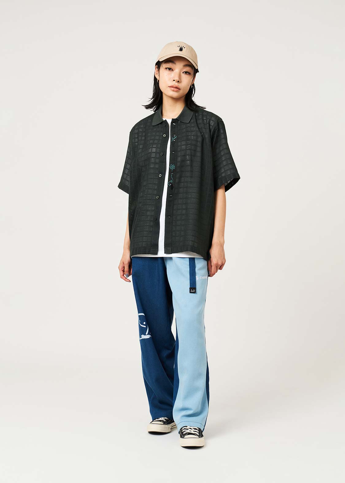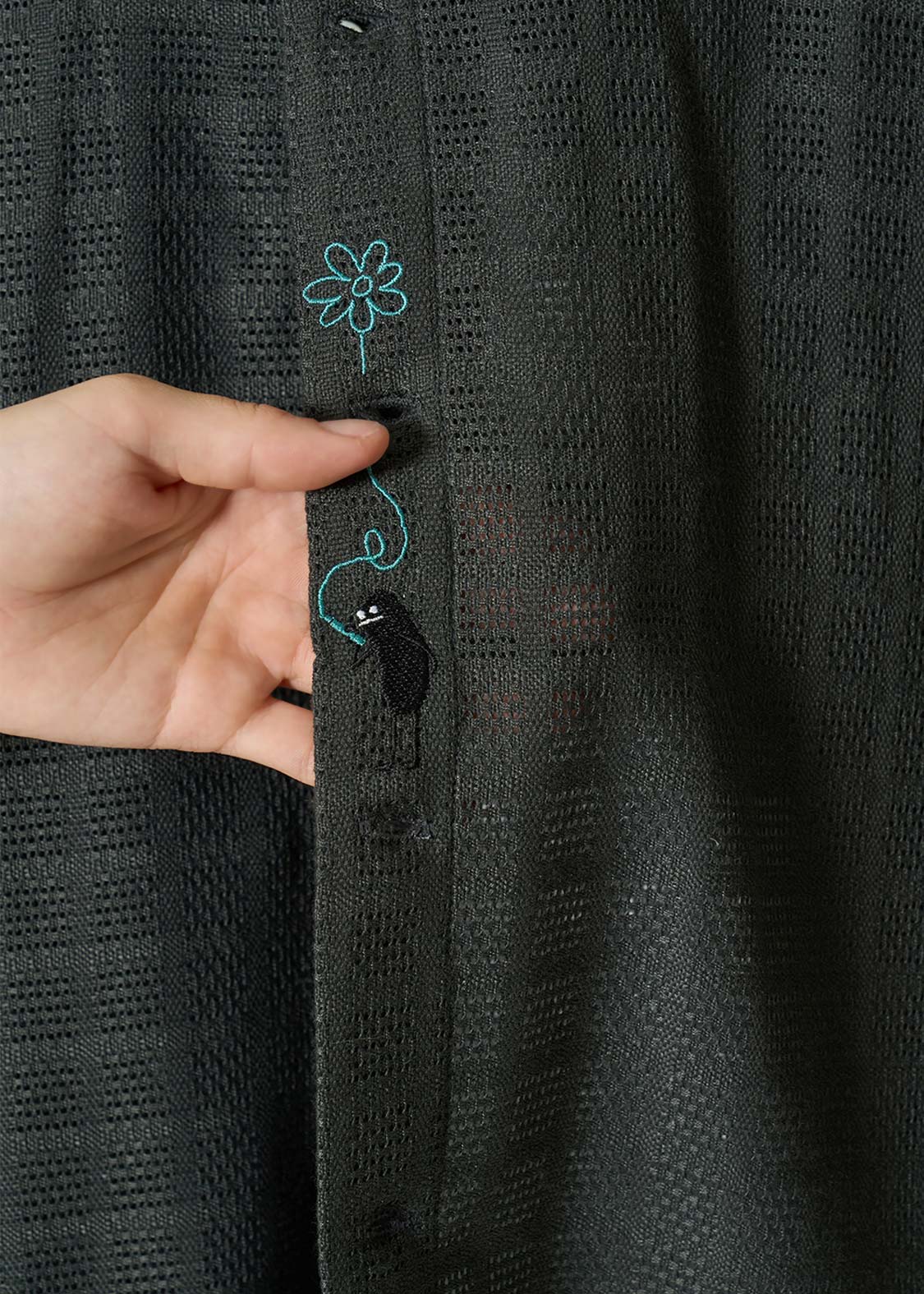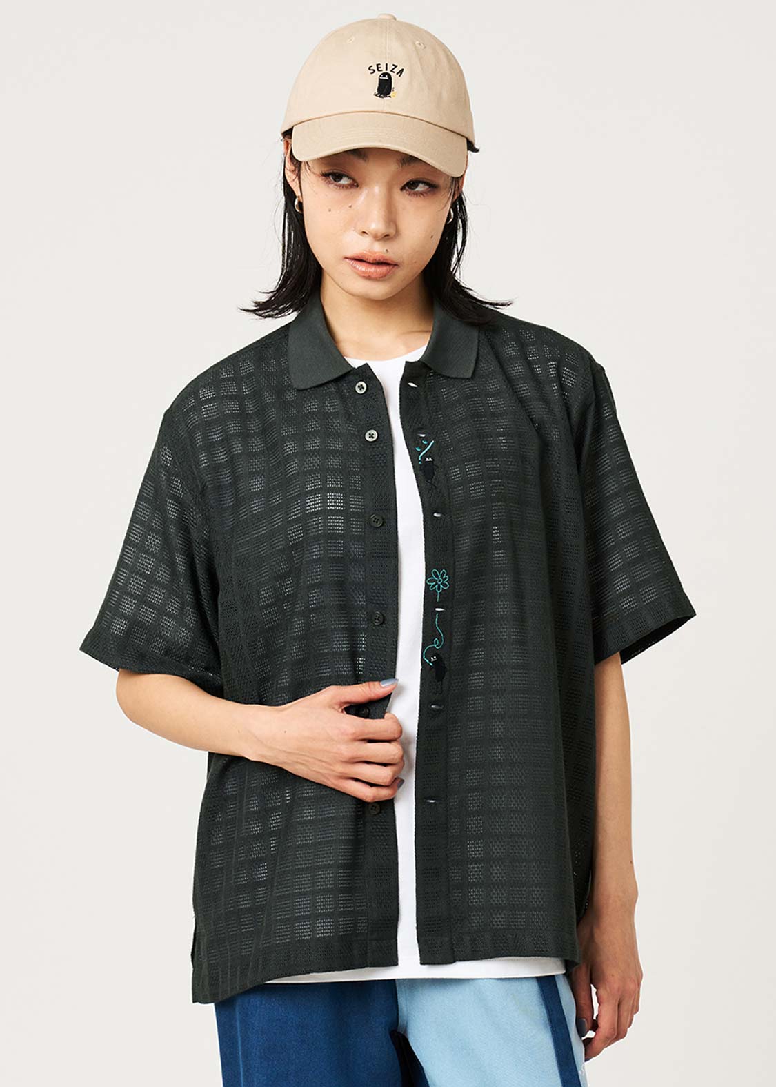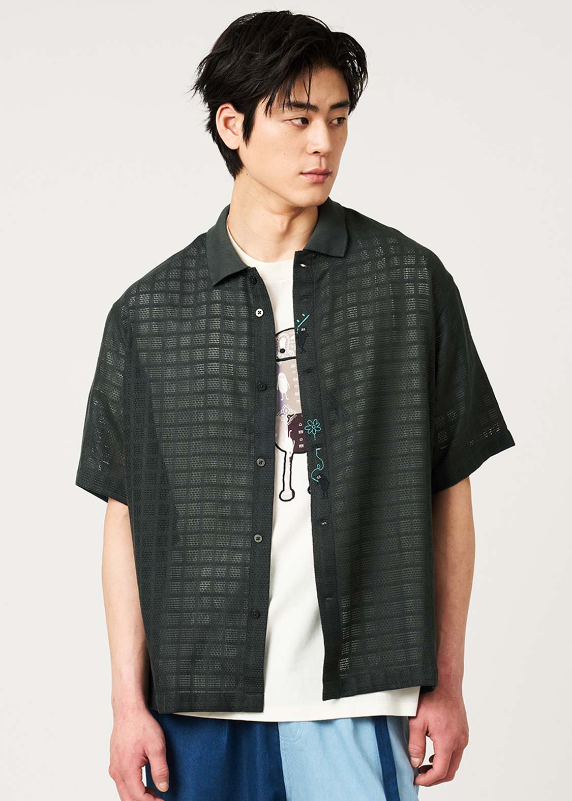 ・ポリエステル100%のカラミ織チェック素材を使用した半袖シャツです。