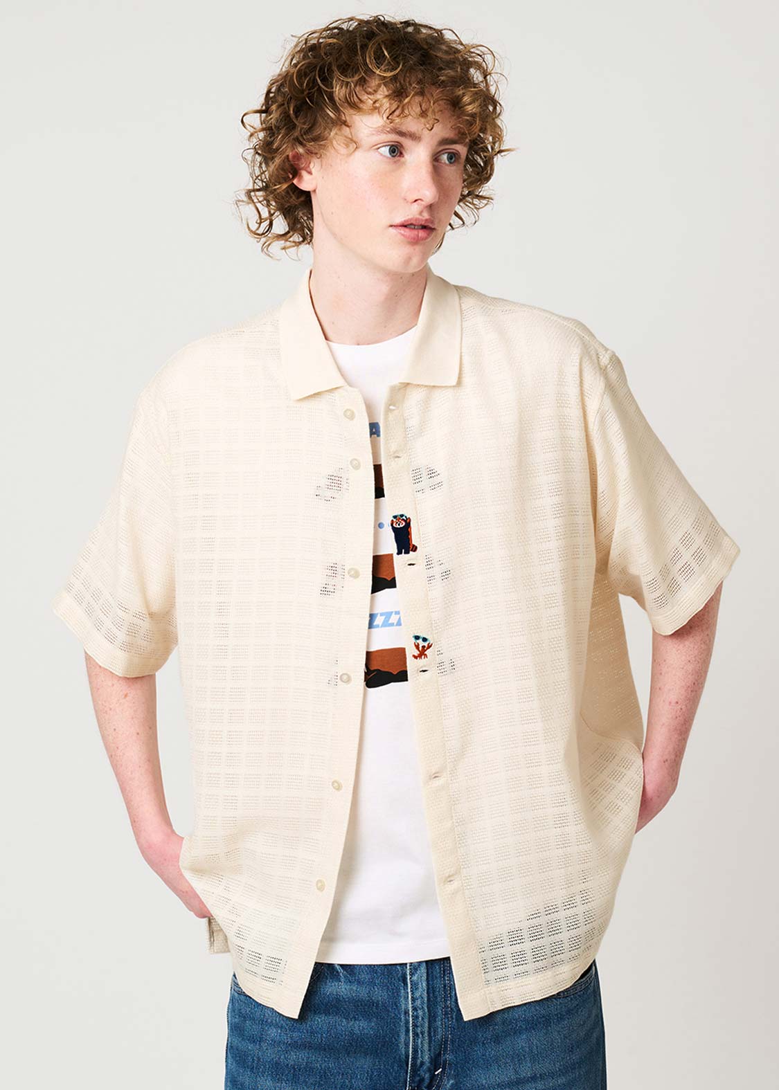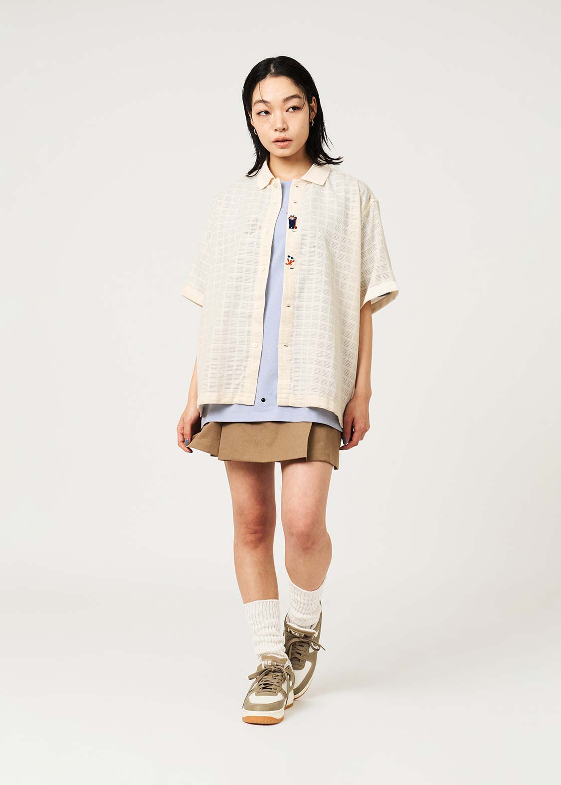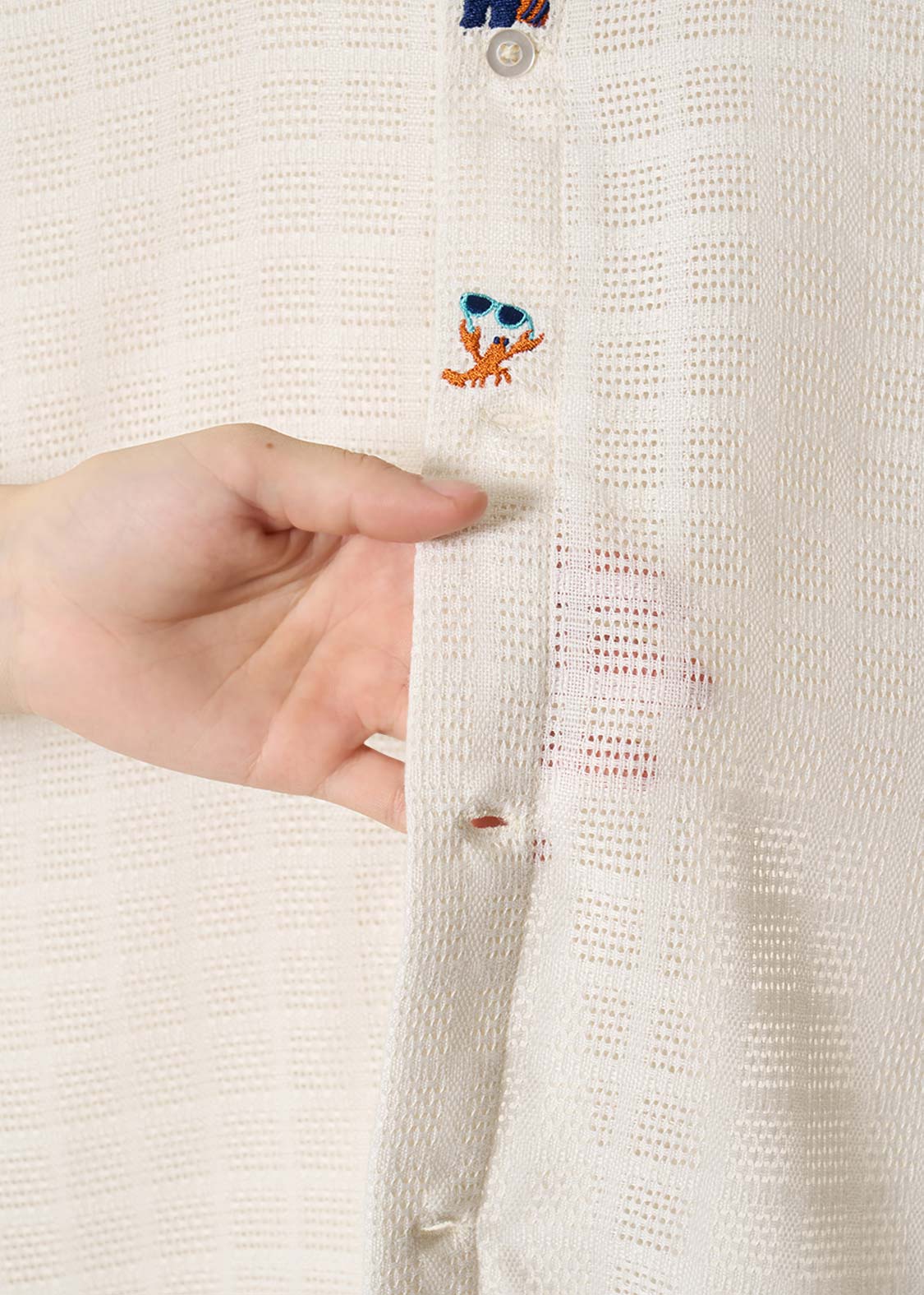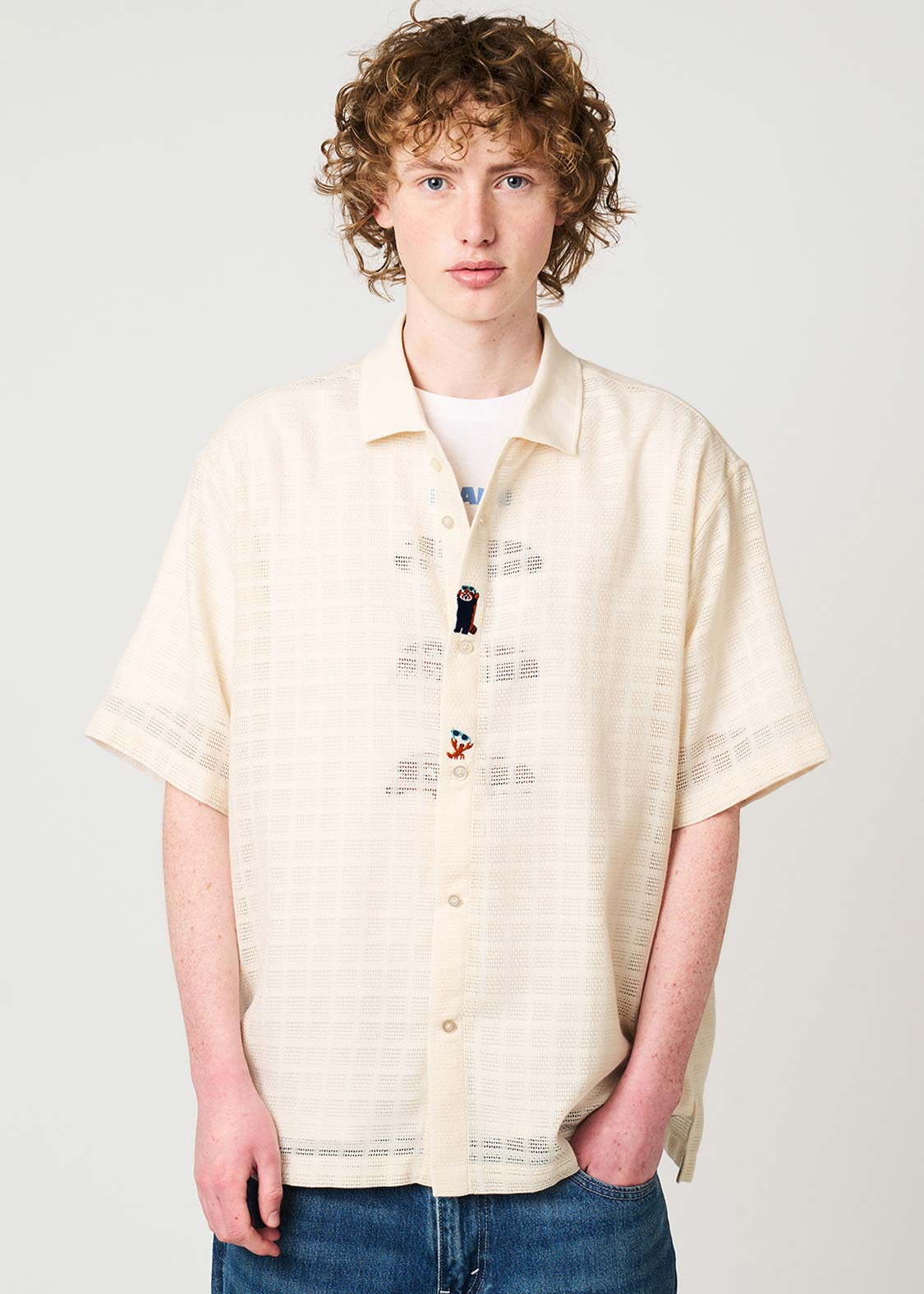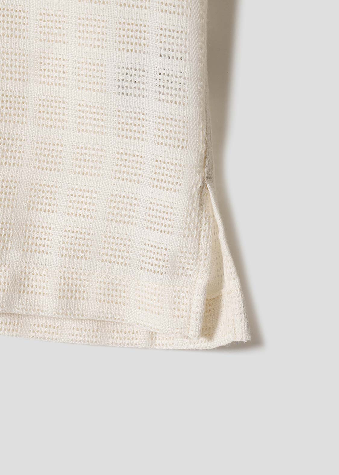 ・ポリエステル100%のカラミ織チェック素材を使用した半袖シャツです。