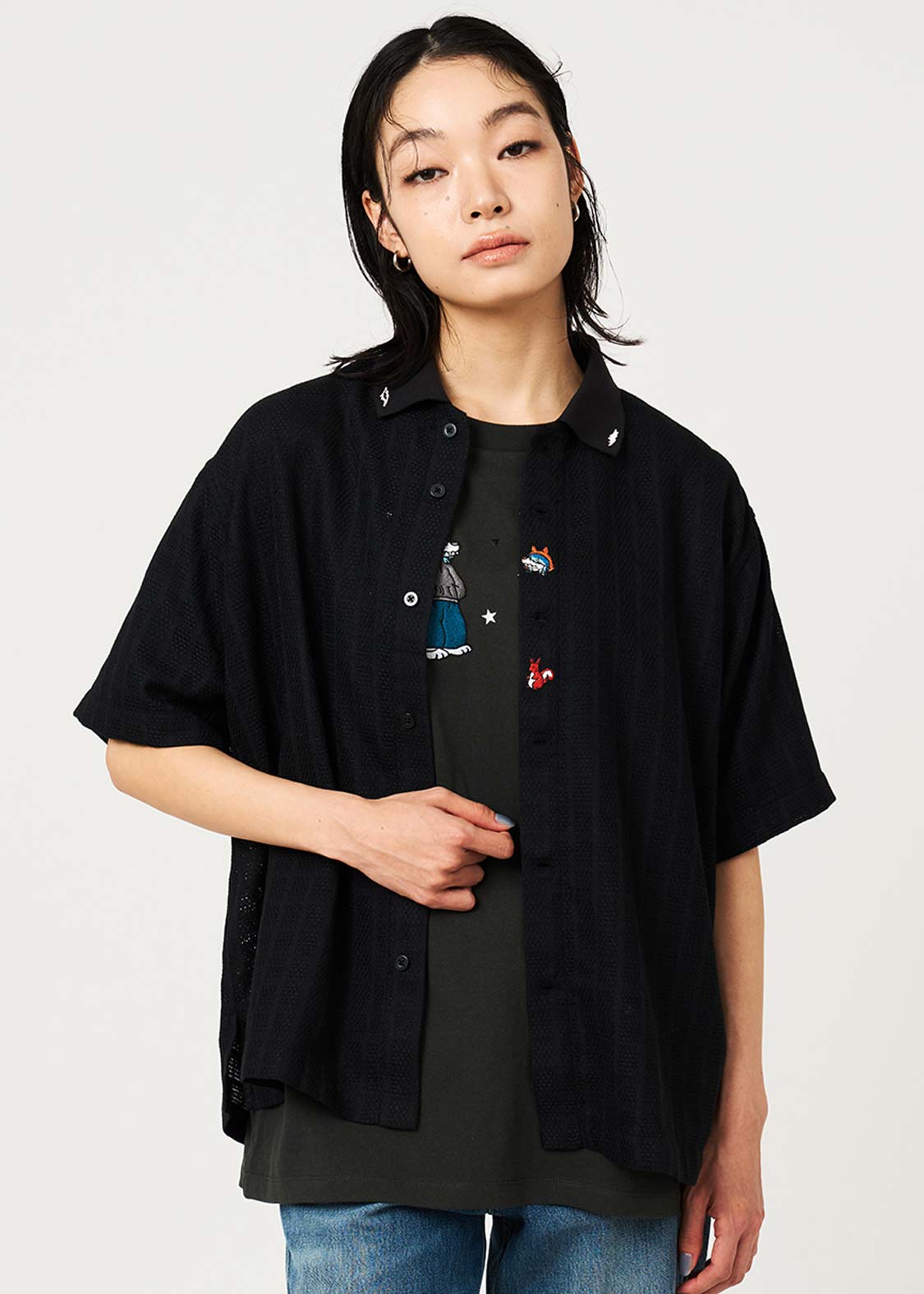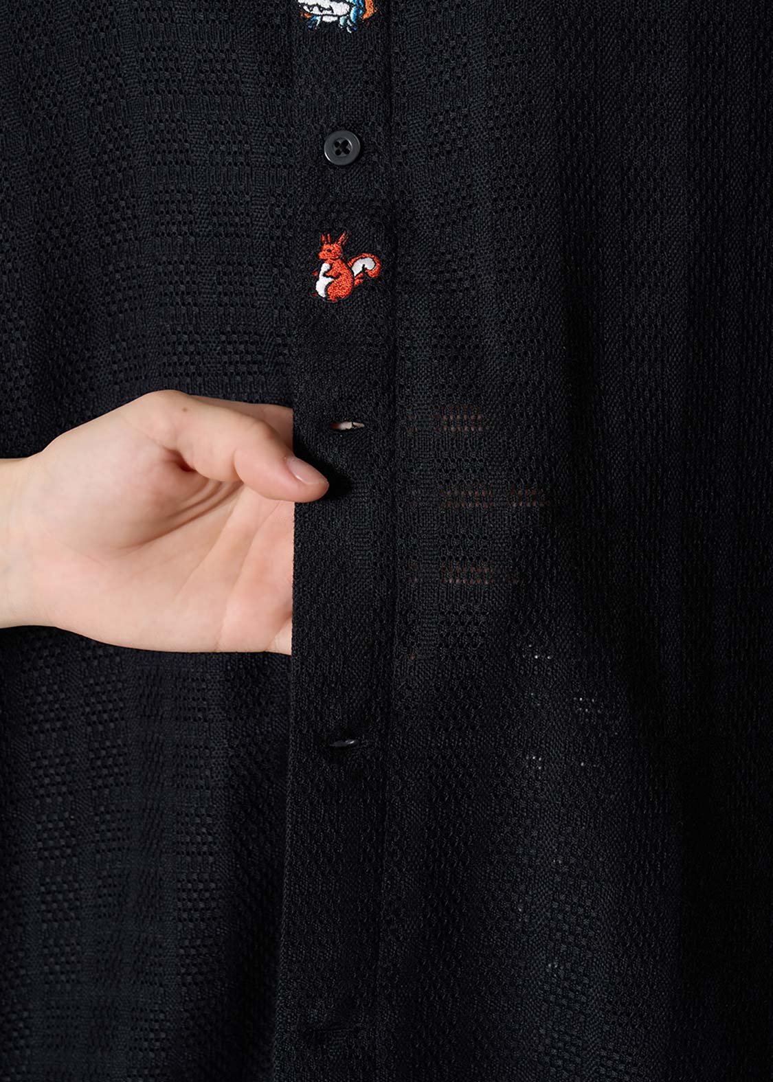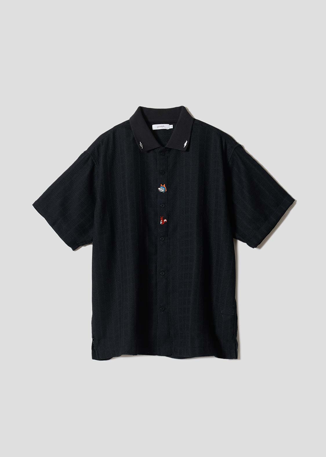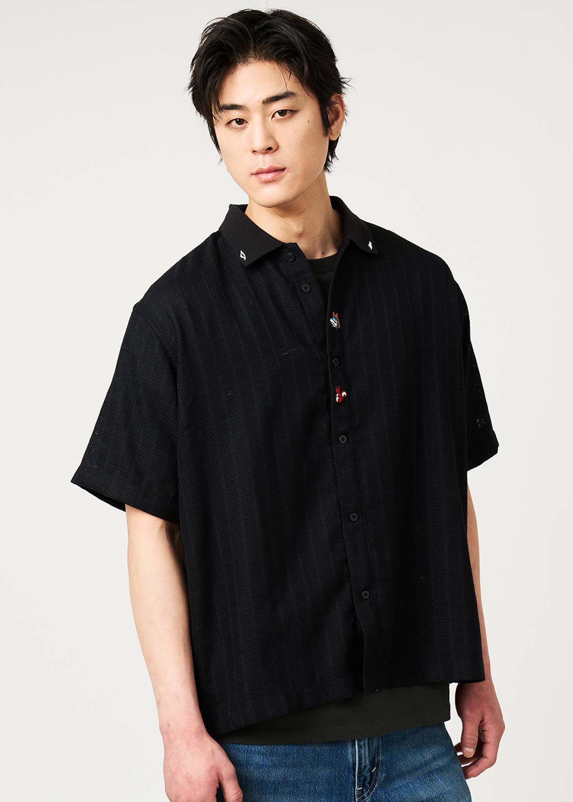 ・ポリエステル100%のカラミ織チェック素材を使用した半袖シャツです。
