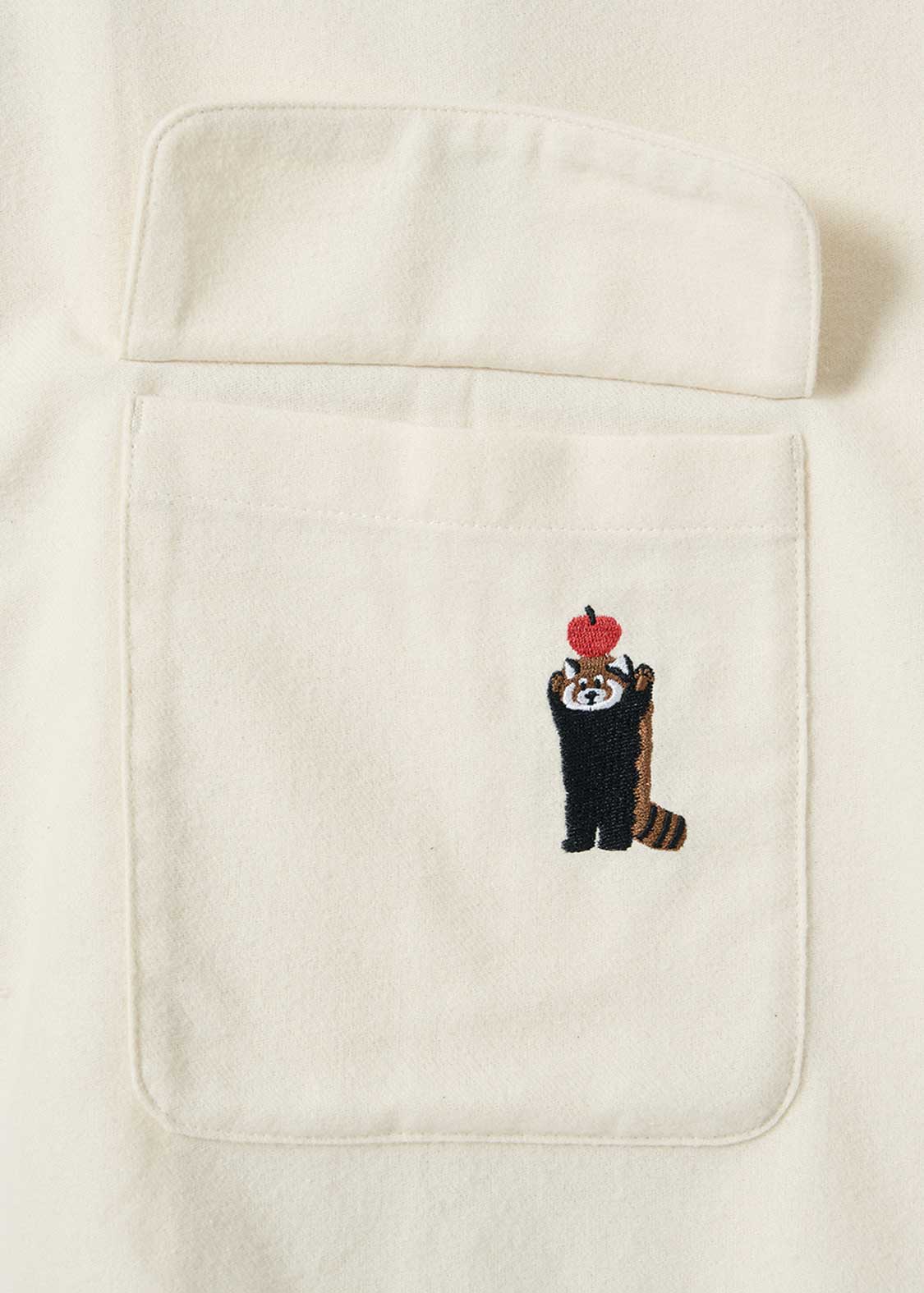 威嚇ポーズがかわいらしくなってしまうことで有名なレッサーパンダから、その後ろ姿をフィーチュアしたデザイン。