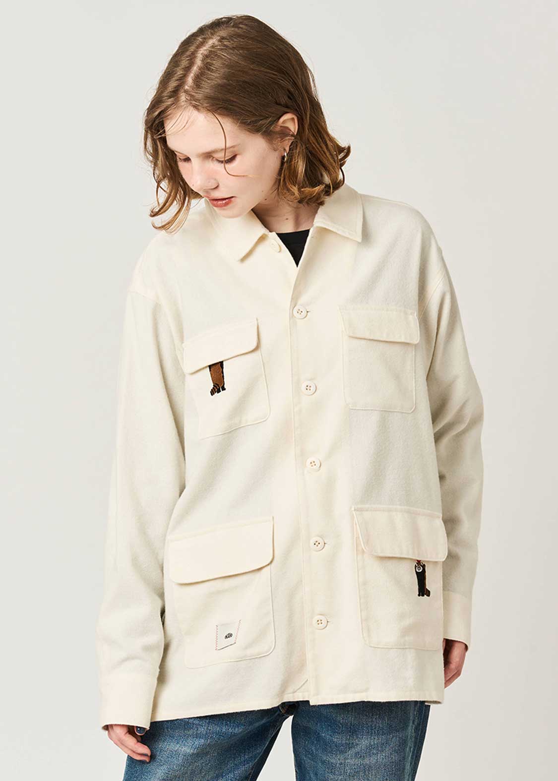 ・女性が着用してもメンズライクになりすぎないよう、きれいめの素材を使用し、シルエットにもこだわって仕上げたミリタリーシャツ。