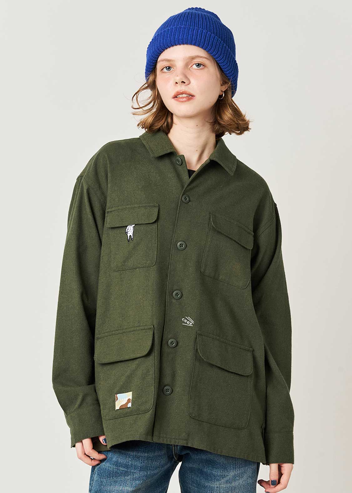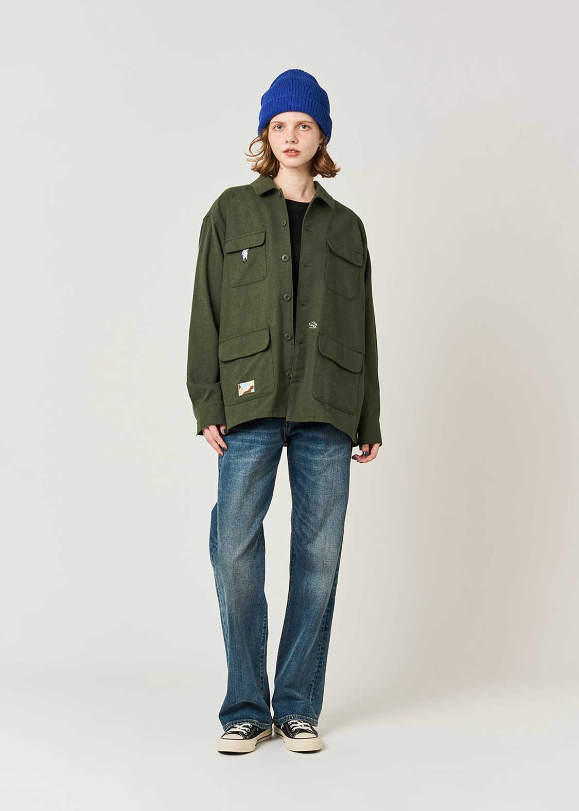 ・女性が着用してもメンズライクになりすぎないよう、きれいめの素材を使用し、シルエットにもこだわって仕上げたミリタリーシャツ。