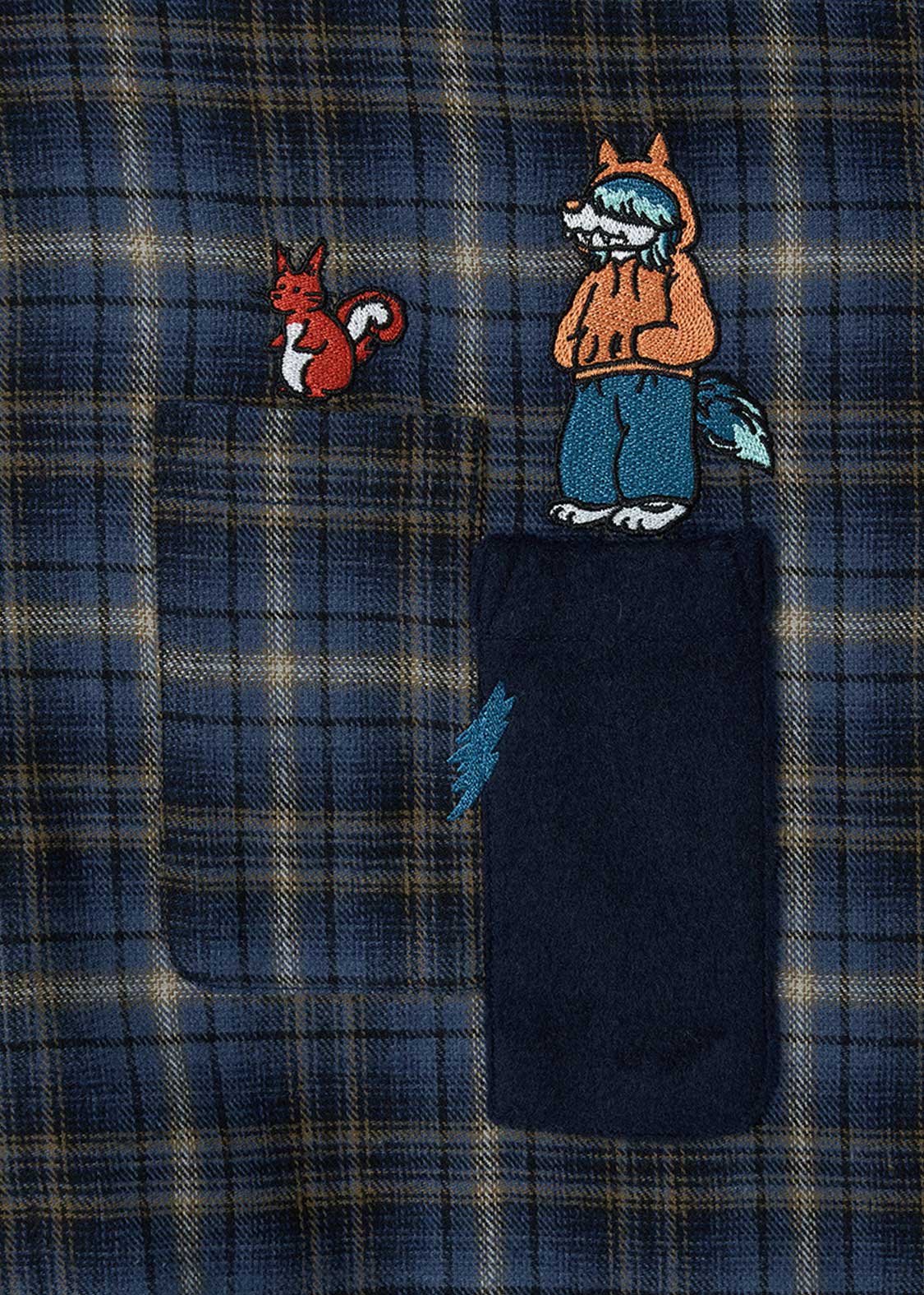 幼い頃公園で出会った大親友のリスくんと、いつも一緒の心優しいオオカミ少年。インナーカラーをいれたヘアスタイルが特徴です。ポップなイラストタッチが魅力のデザイン。