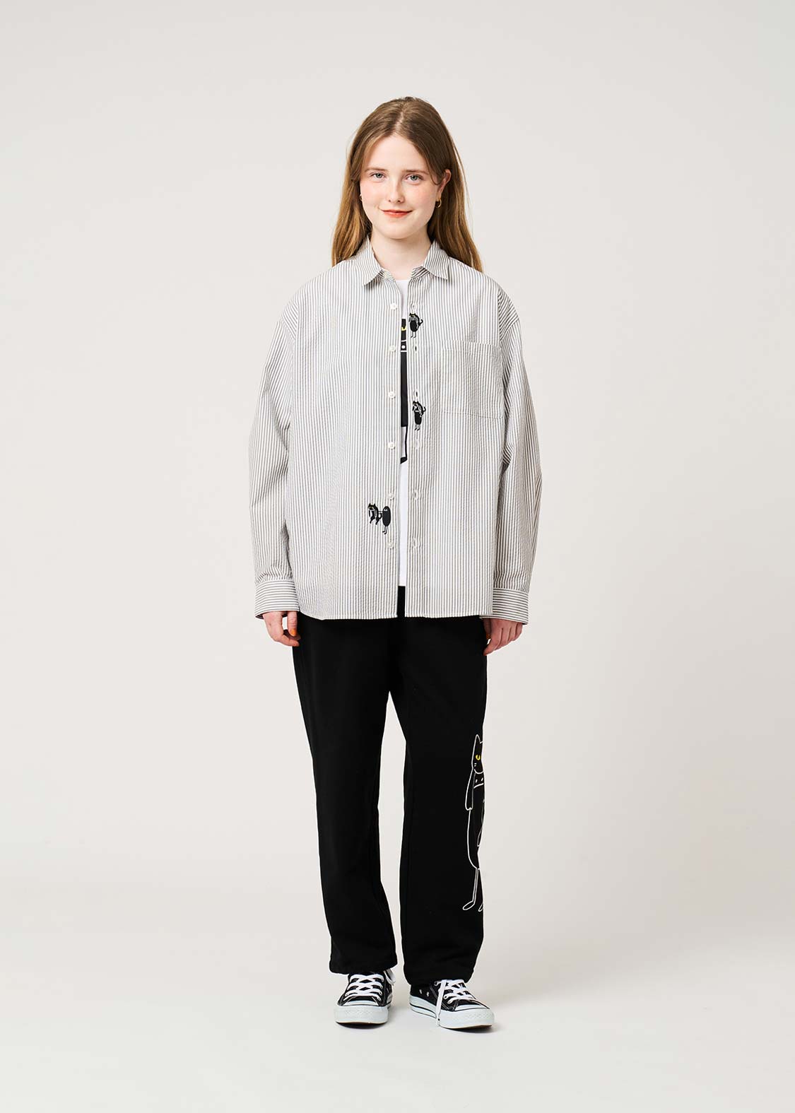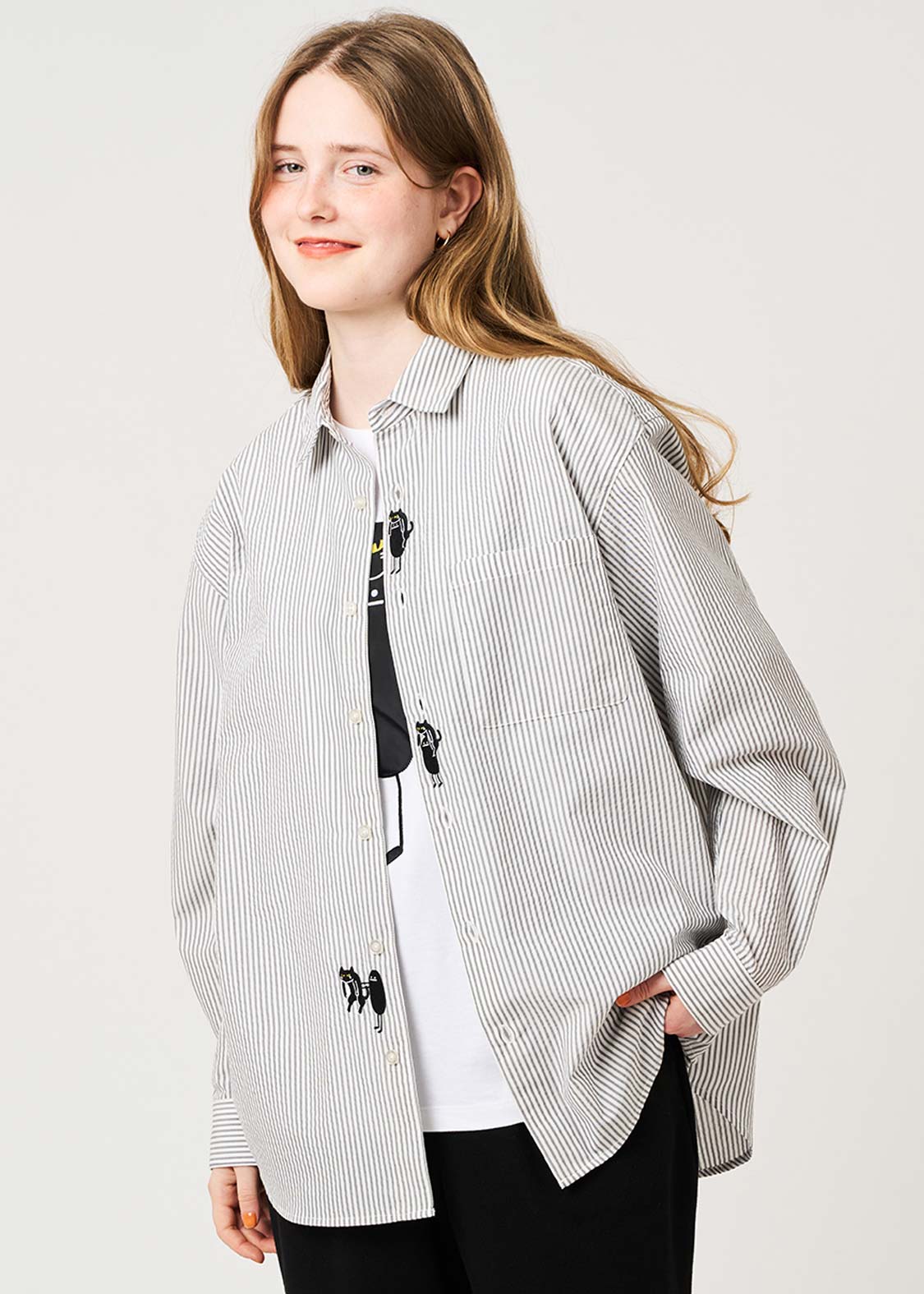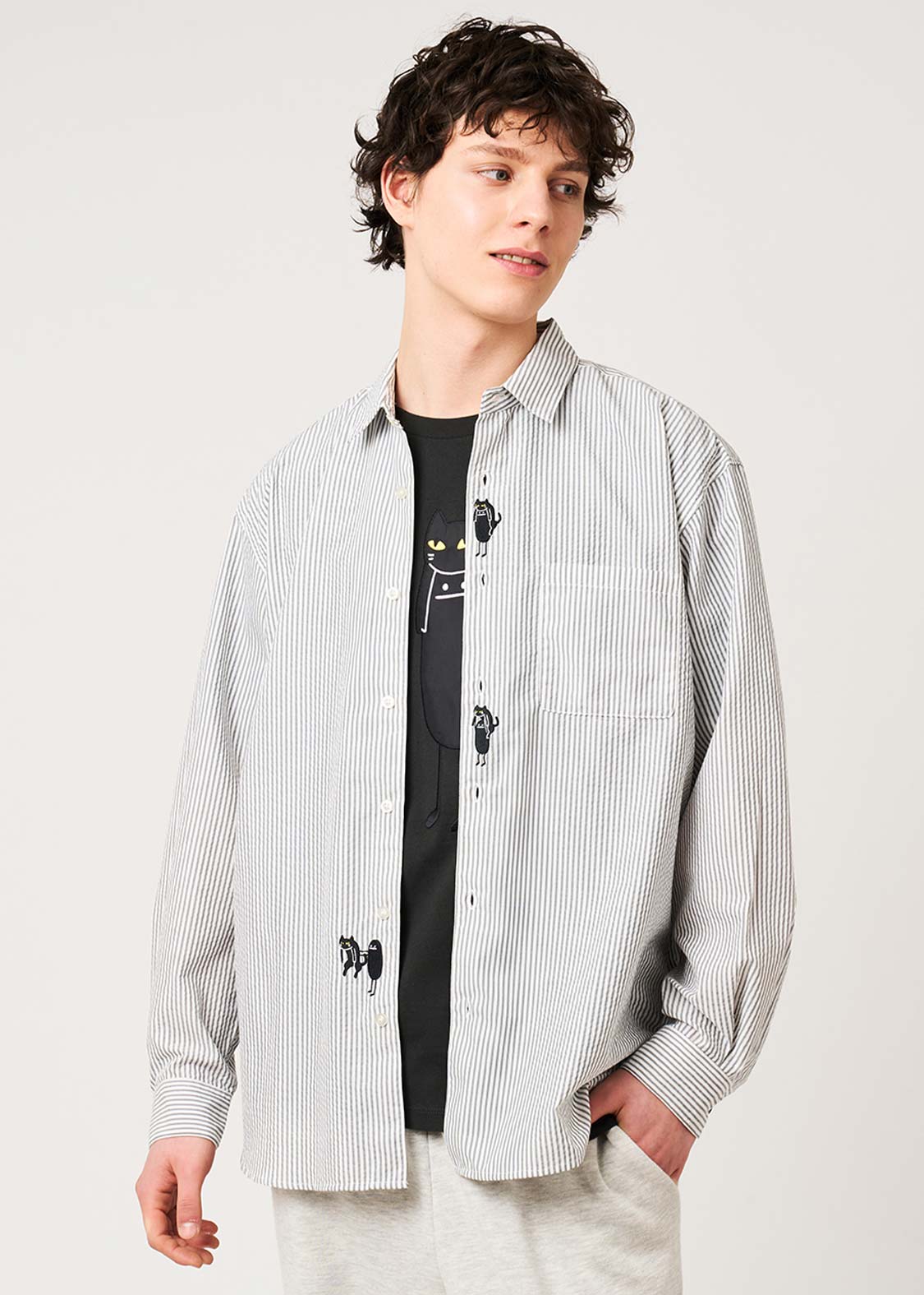 ・表面に凹凸のあるサッカー生地を用いた、ゆとりのあるシルエットのシャツです。