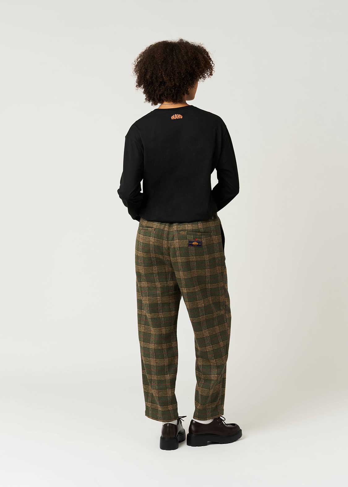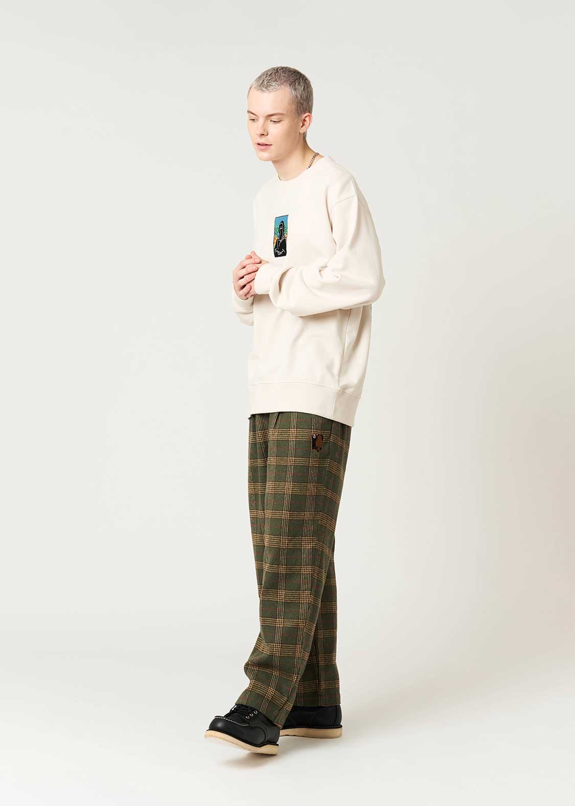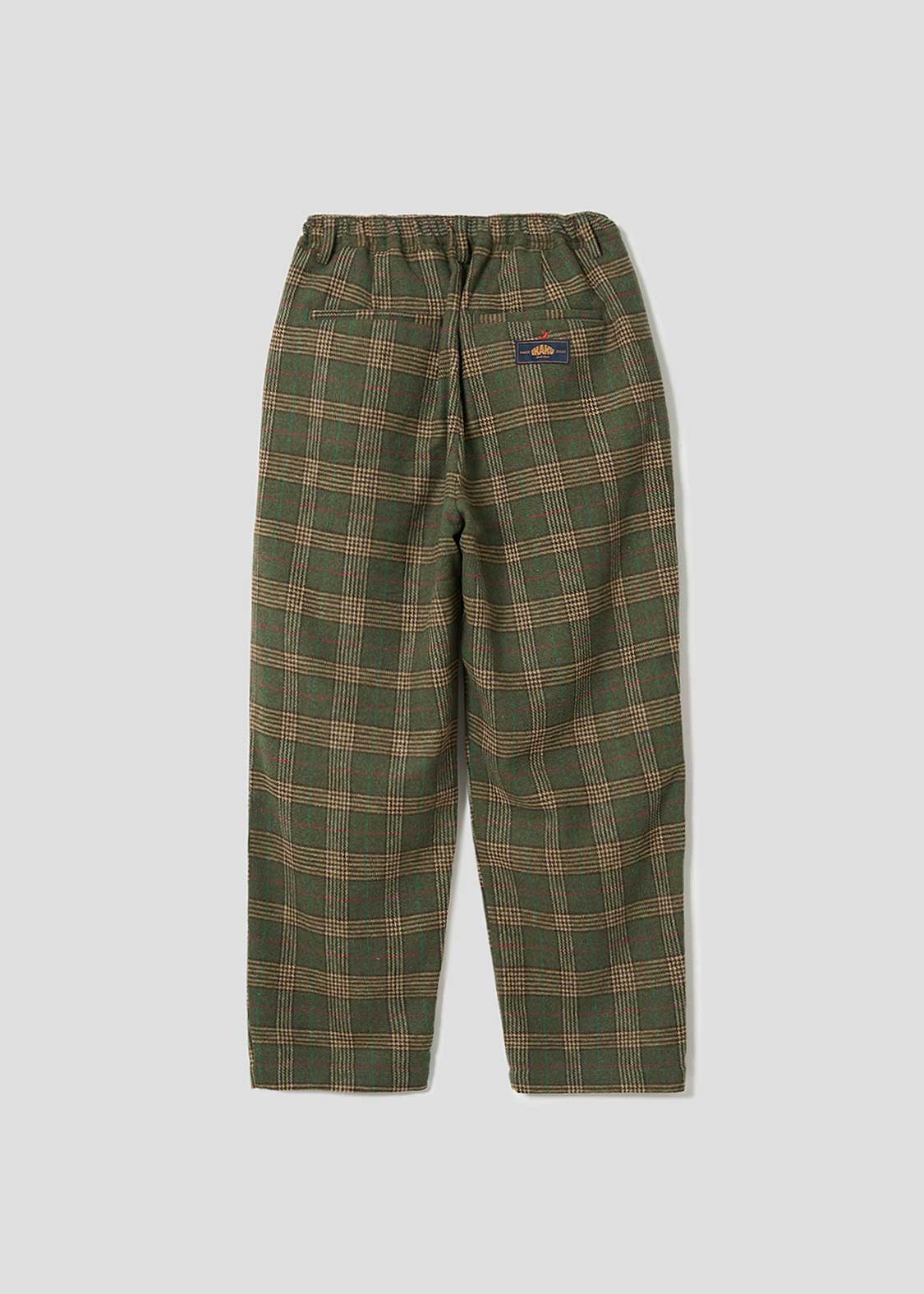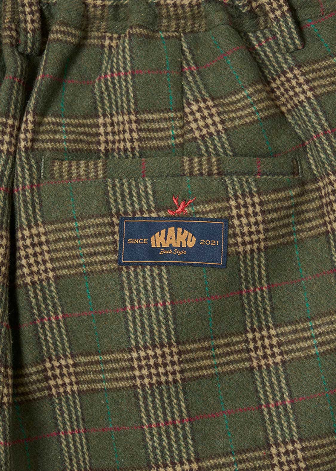 ・オリジナルのチェックを編み立てた素材を使用したパンツ。