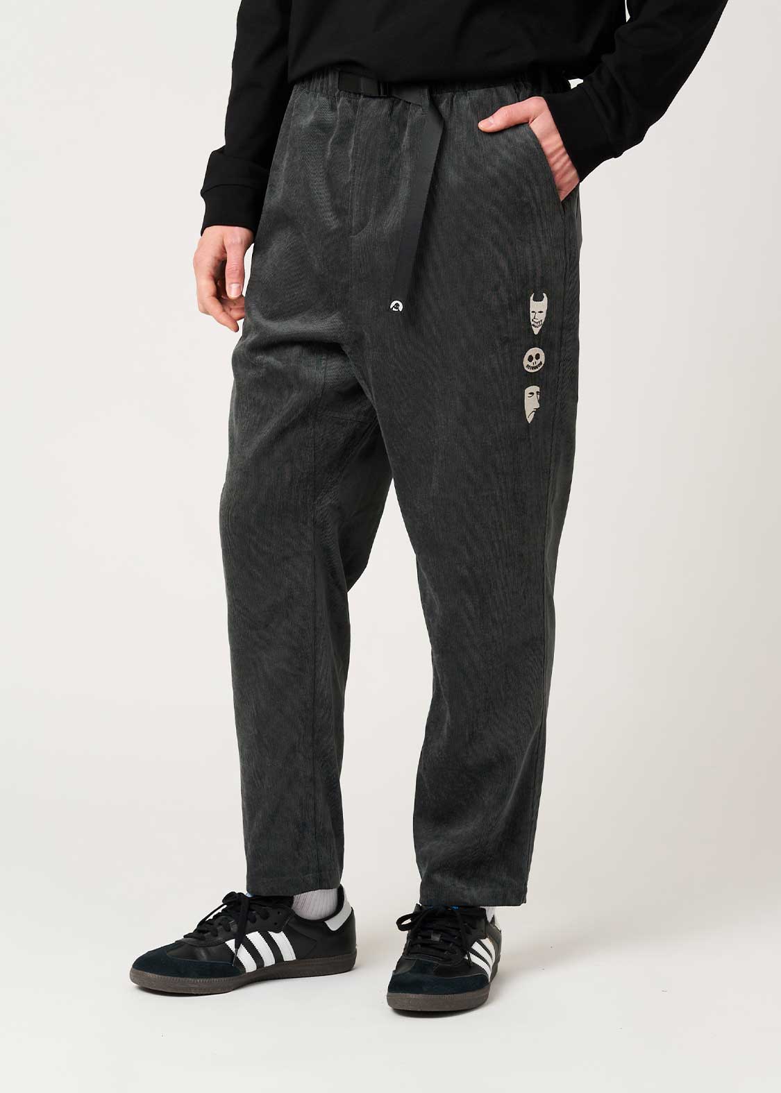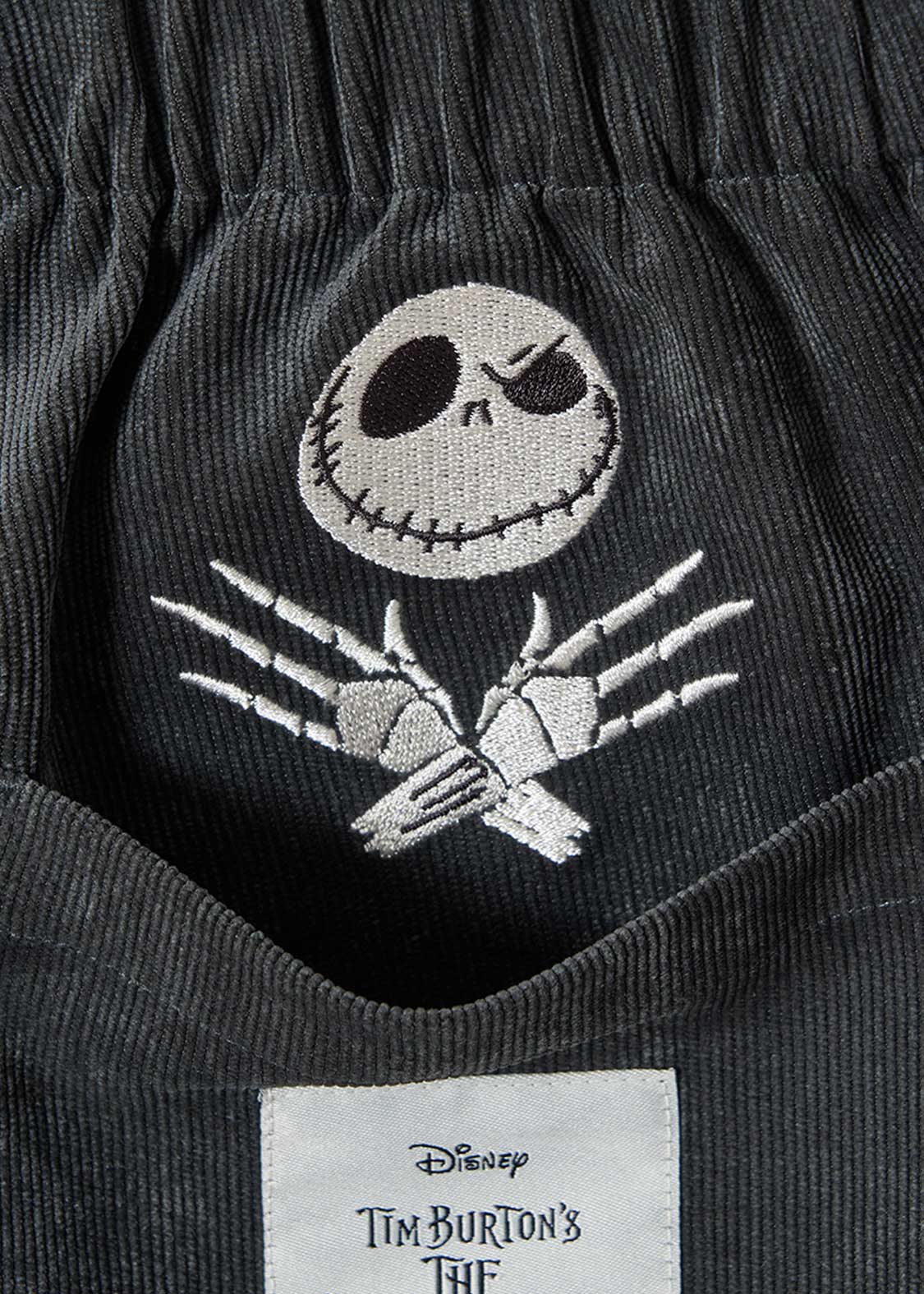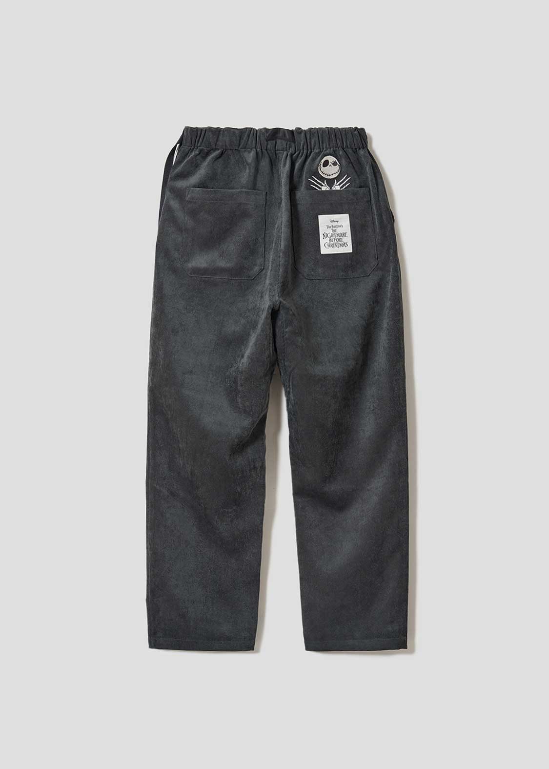 幽霊犬ゼロ、ウギー・ブギー、ロック、ショック、バレルをフロントにあしらい、ジャックをバックポケットから覗くように刺繍で表現したデザイン。ベルトの先にはウギー・ブギーの織りネームを、バックポケットにはロゴの織りネームを施しています。