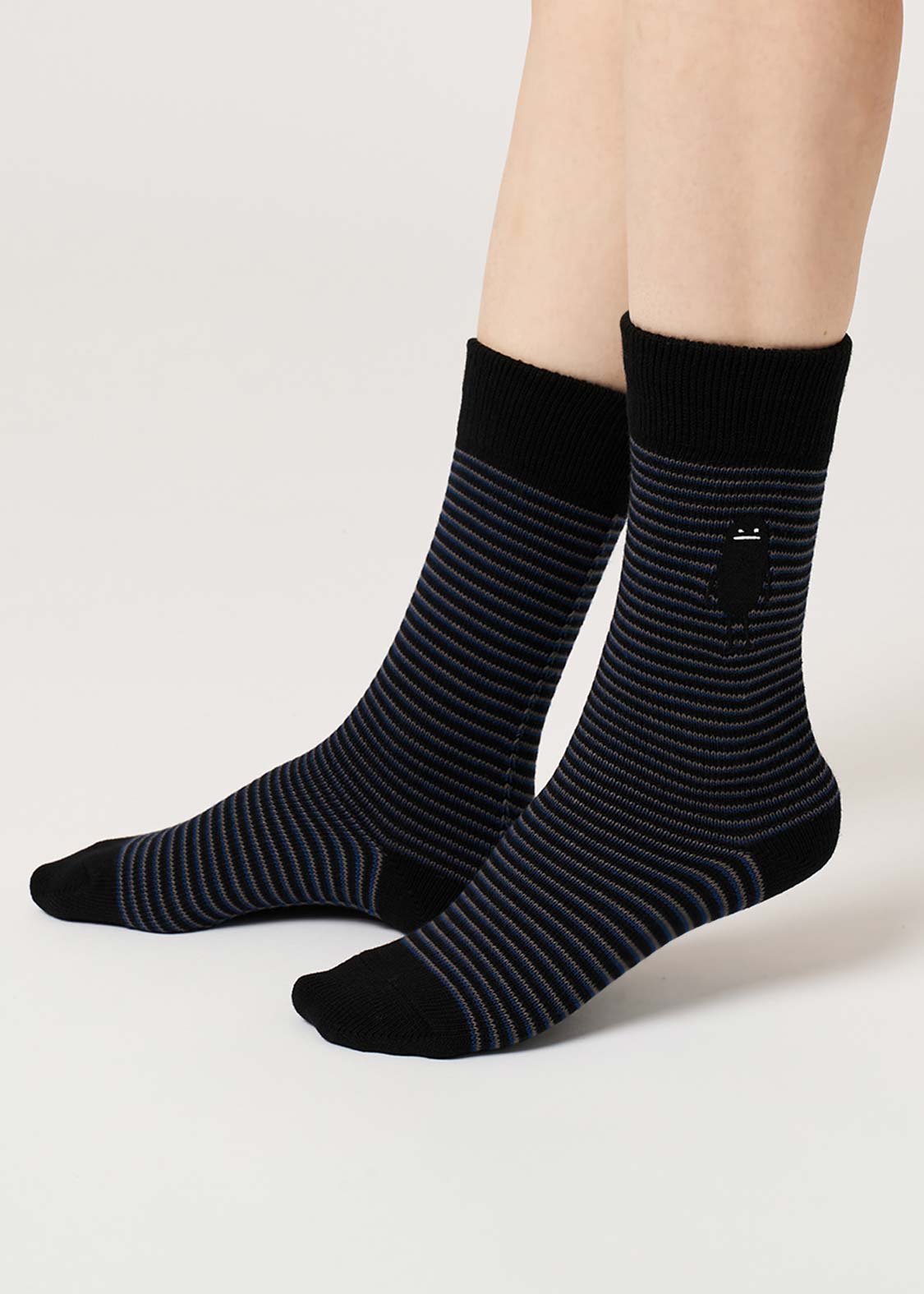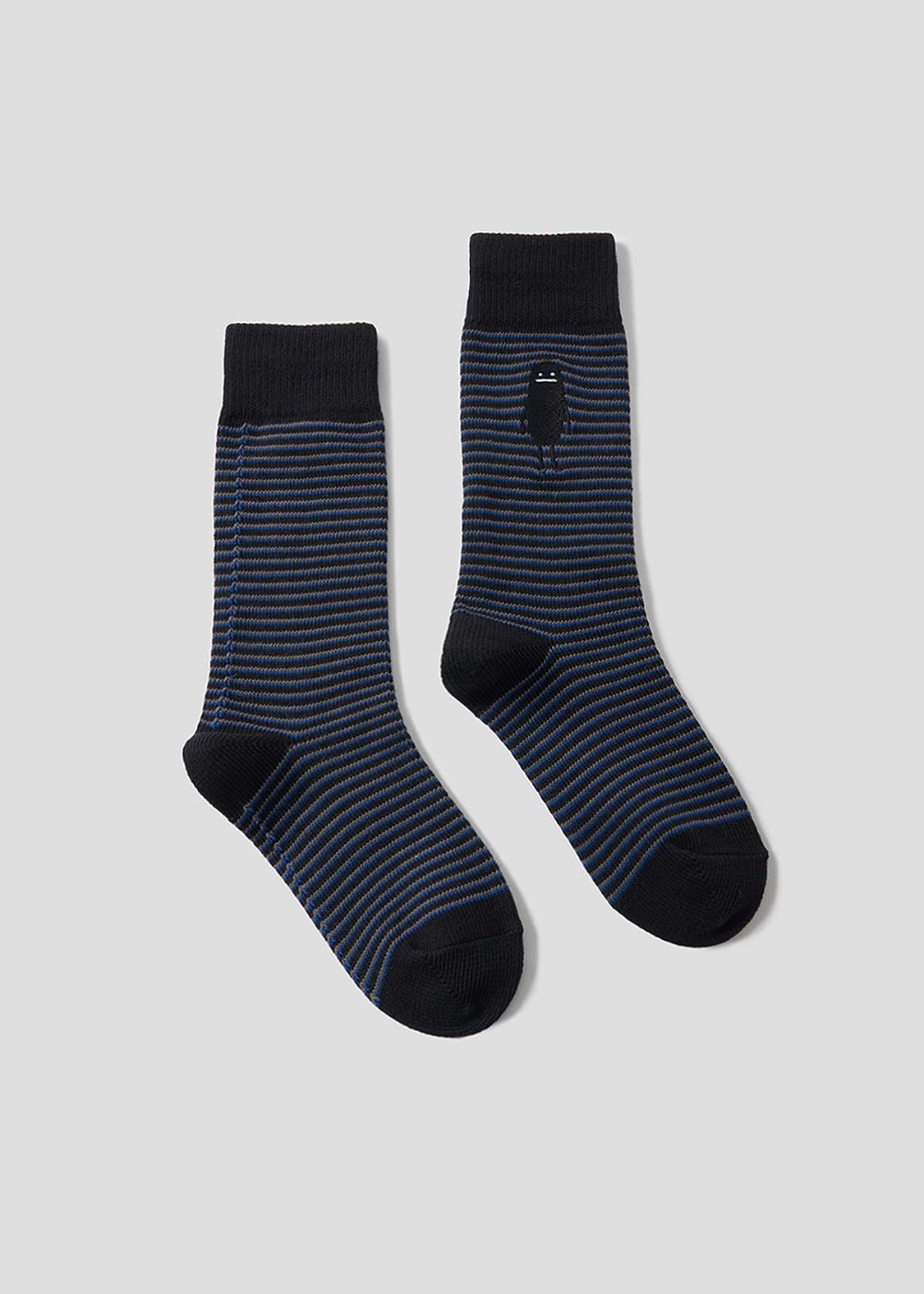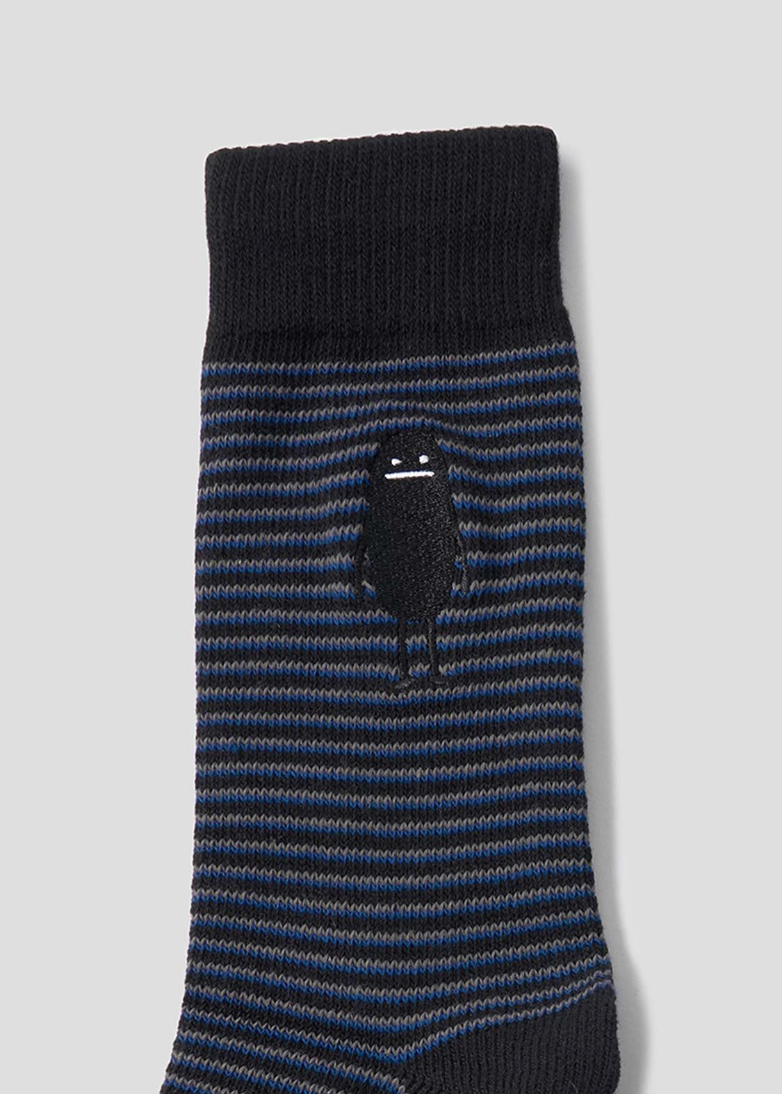 ・細かなグラフィックをジャカードと刺繍で表現したソックス。