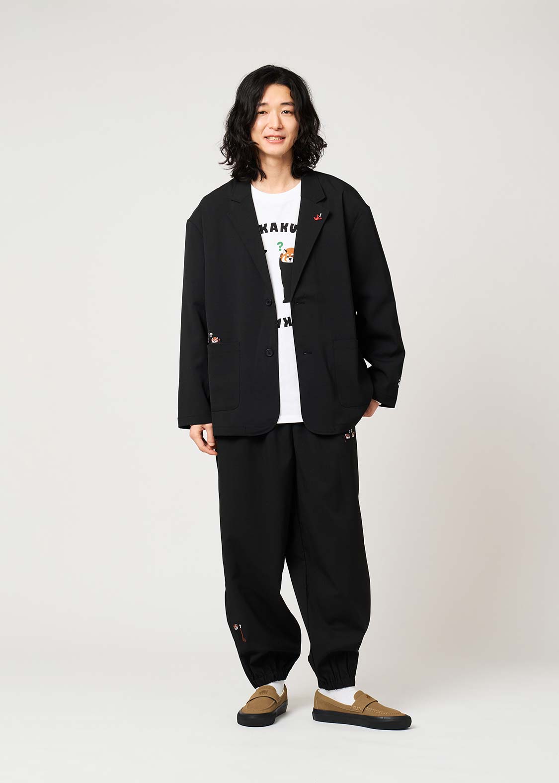 レッサーパンダの「?」と「!」の表情を、遊び心たっぷりにデザイン。ちょっとしたリアクションを切り取った、!?マークがアクセントのグラフィックです。