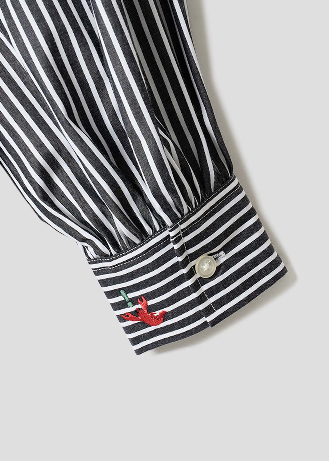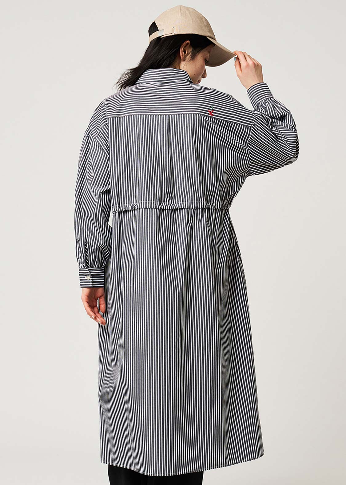・先染めのストライプに、ほどよくボリュームを持たせた袖が印象に残るシャツワンピースです。