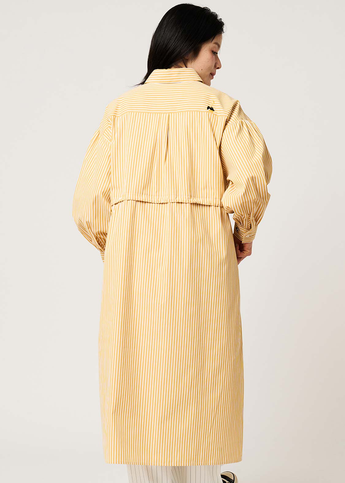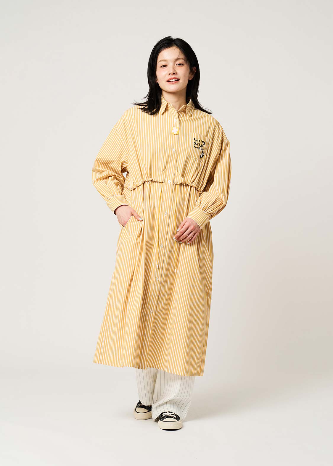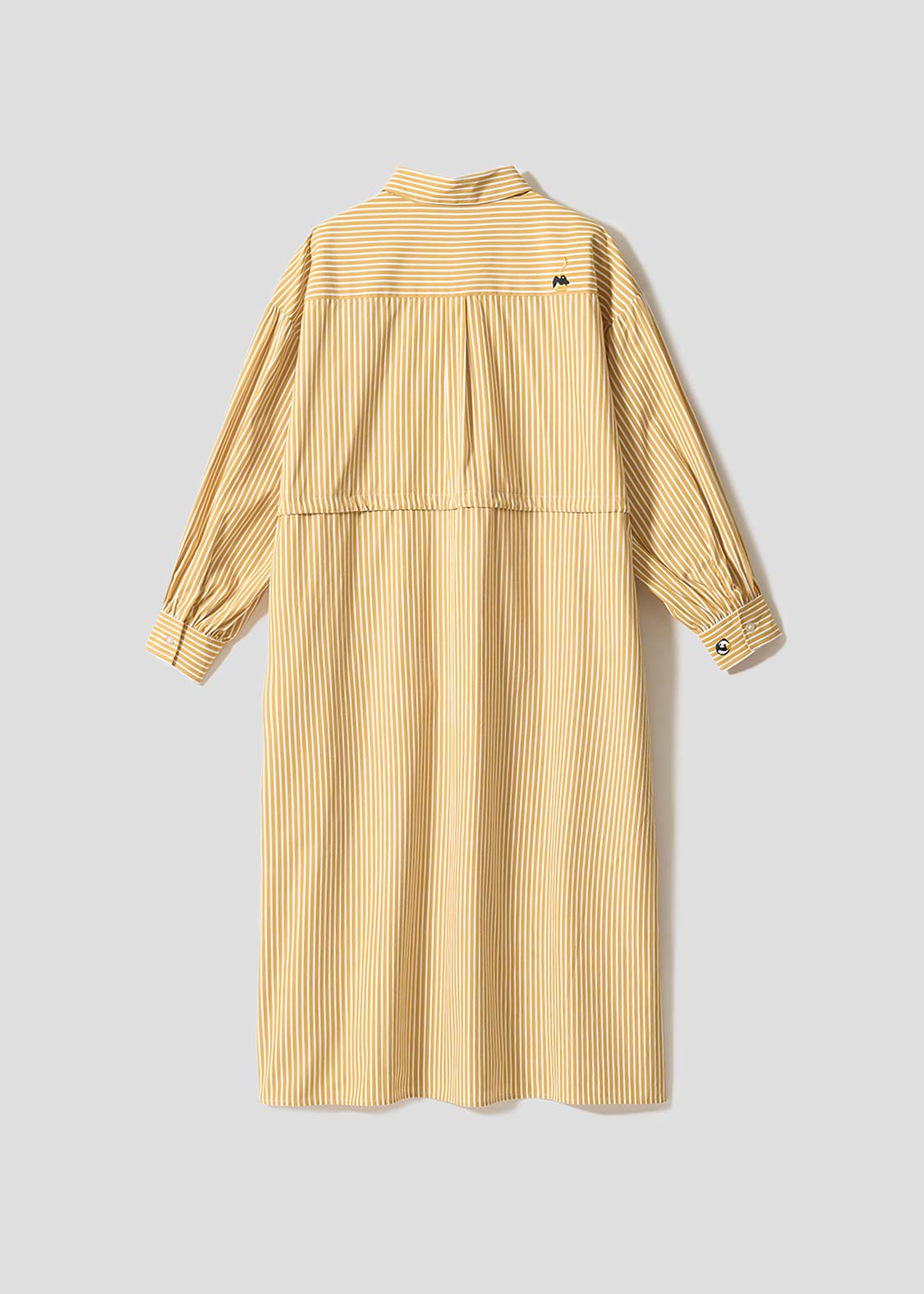 ・先染めのストライプに、ほどよくボリュームを持たせた袖が印象に残るシャツワンピースです。
