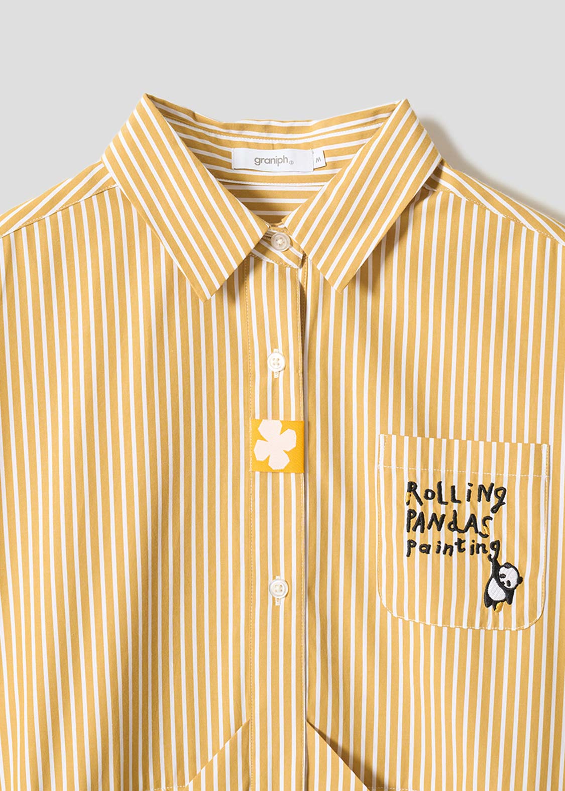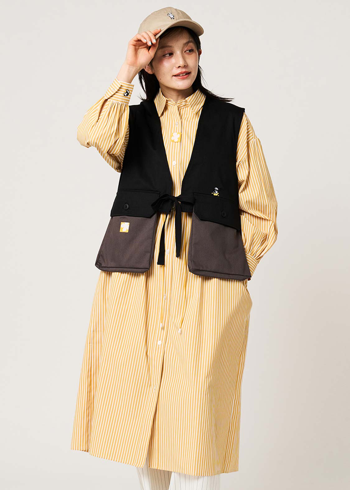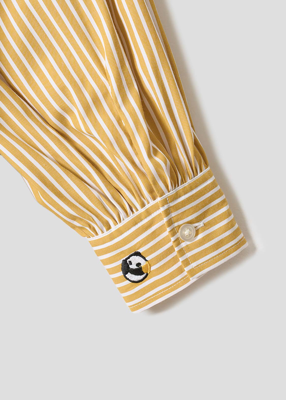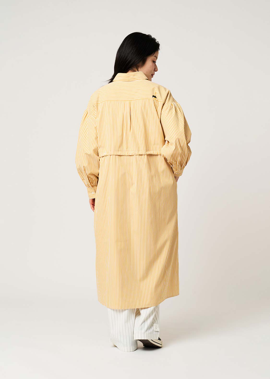 ・先染めのストライプに、ほどよくボリュームを持たせた袖が印象に残るシャツワンピースです。