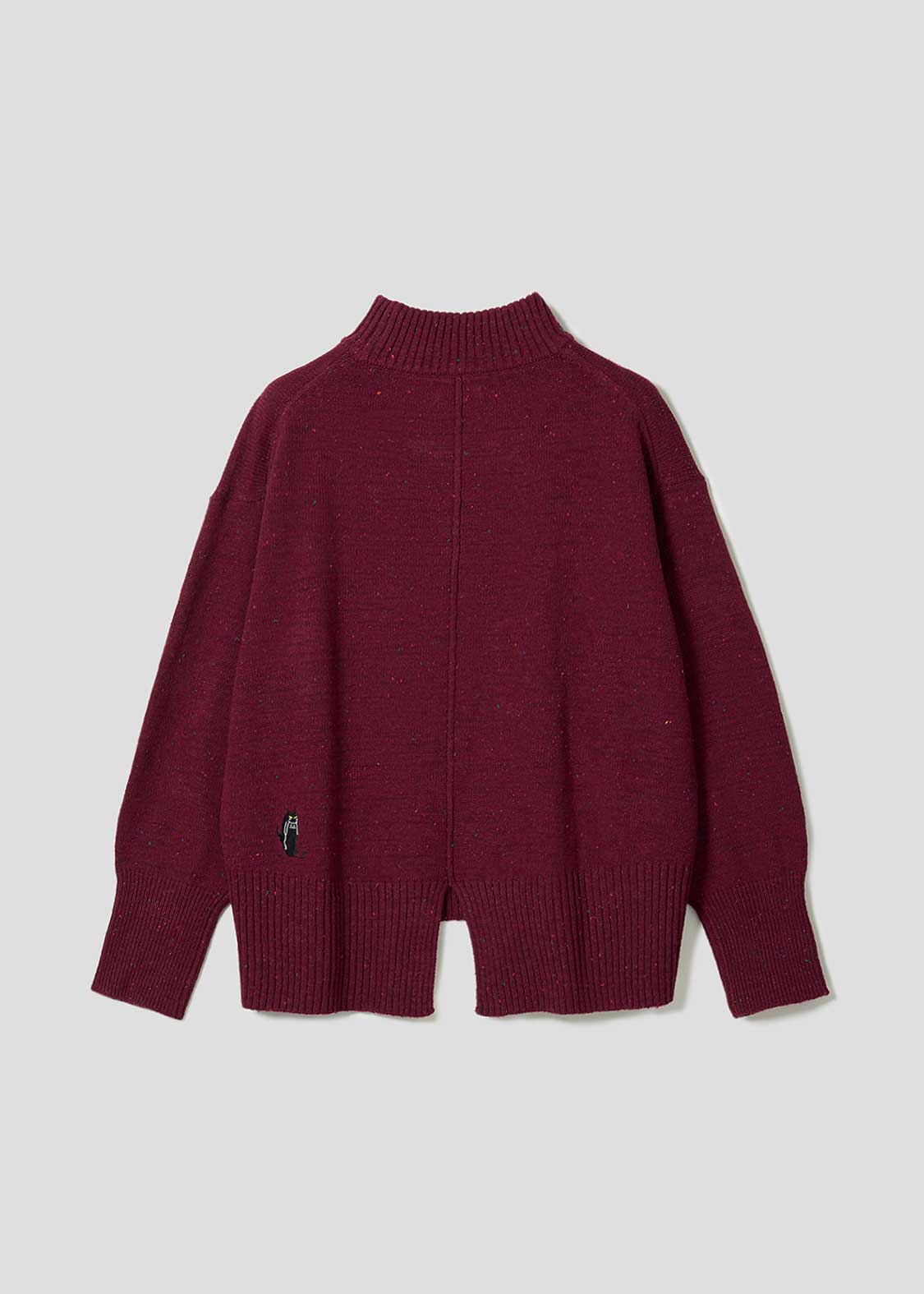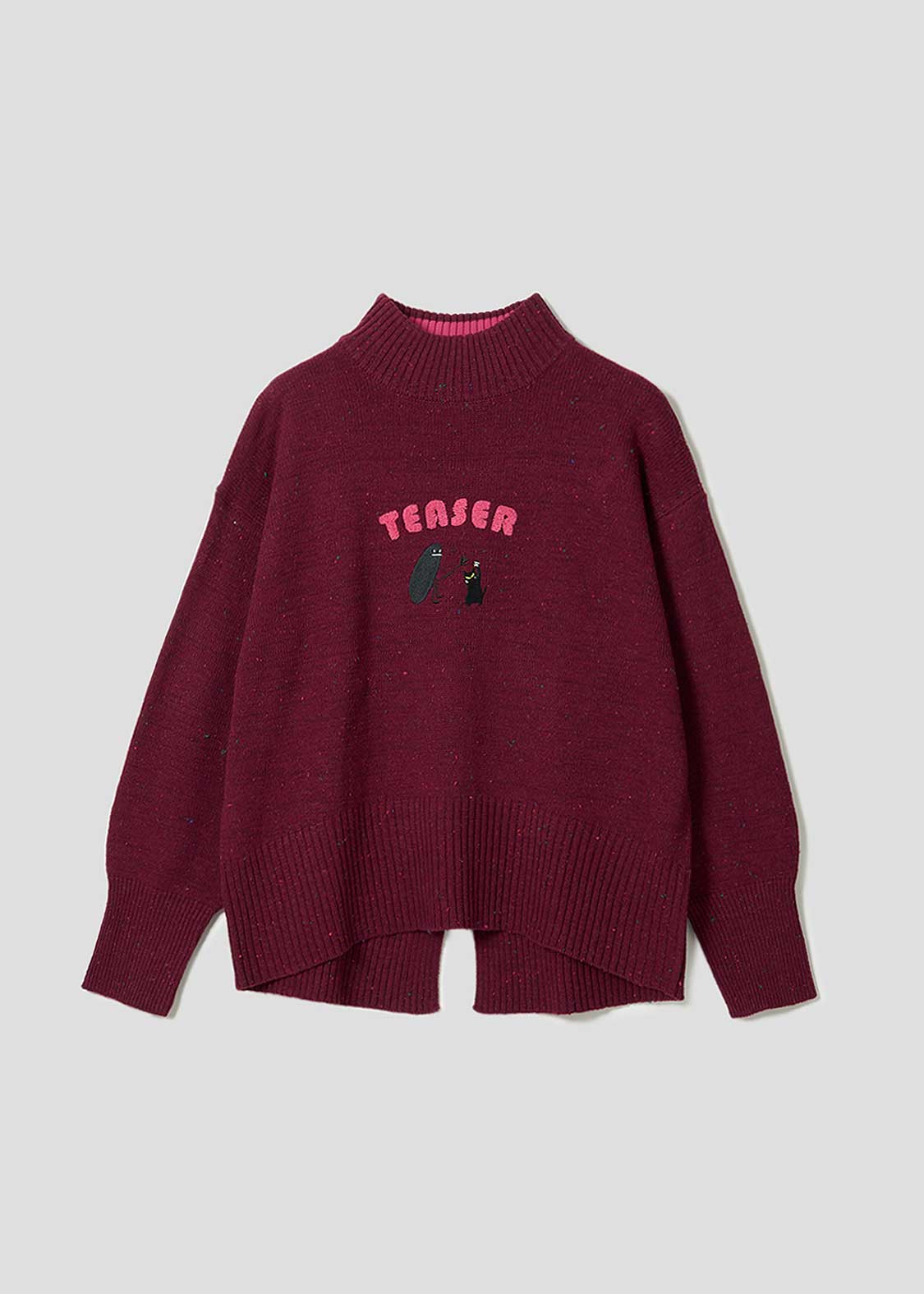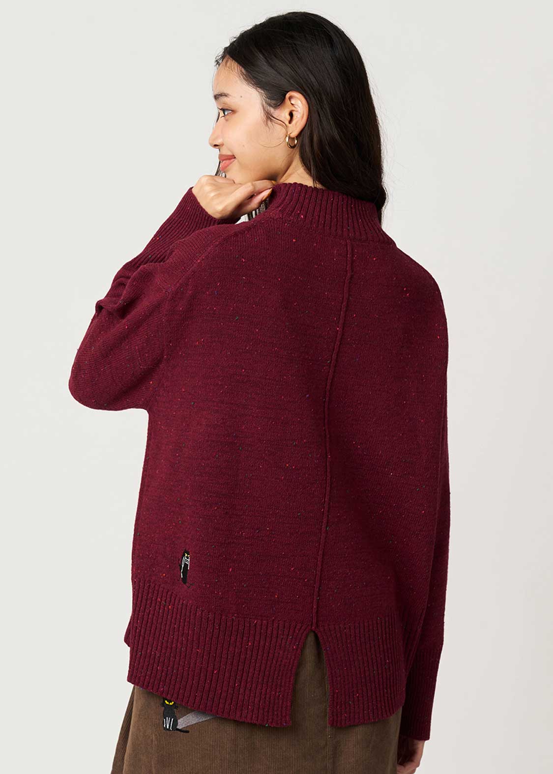 ・袖の長めのリブや、後裾のスリットもポイントになるデザイン性のあるニット。