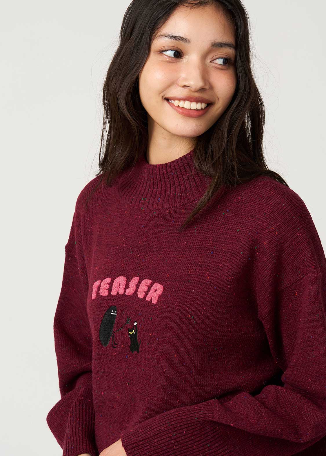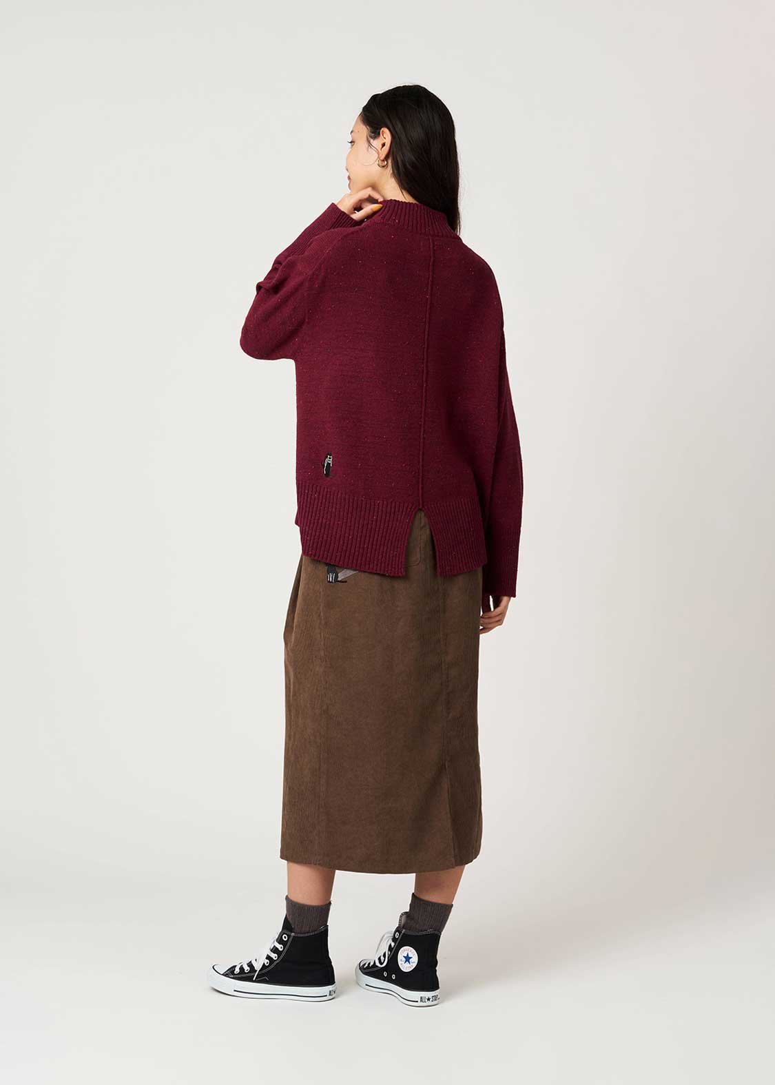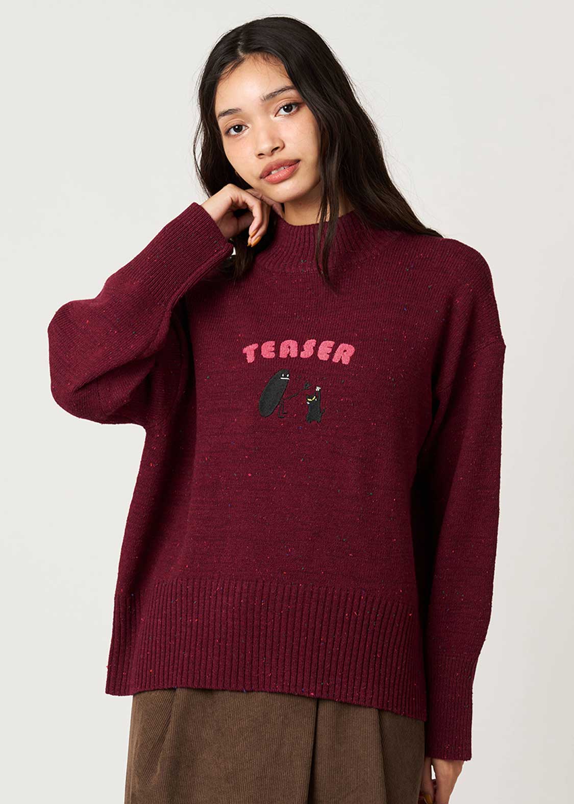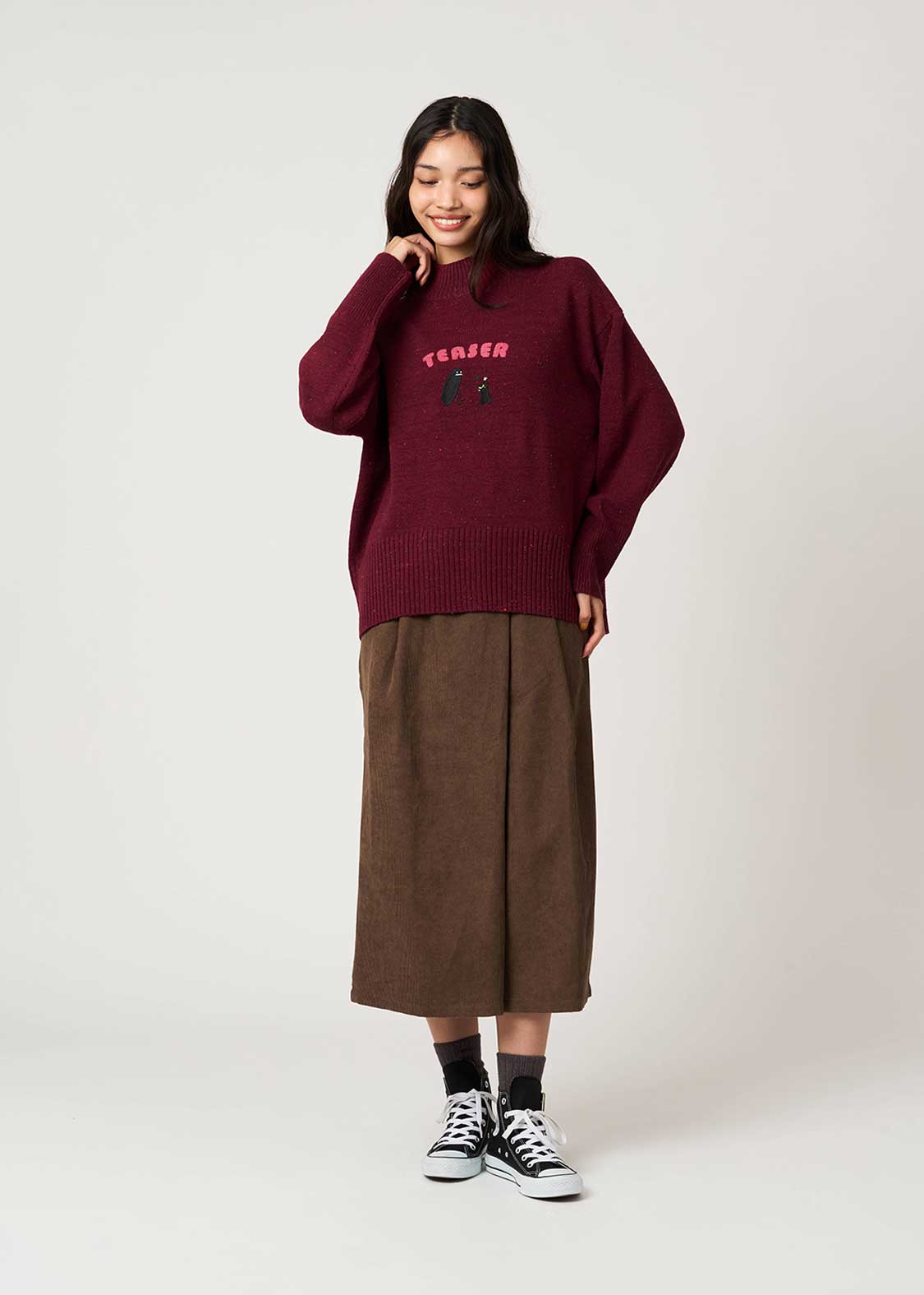 ・袖の長めのリブや、後裾のスリットもポイントになるデザイン性のあるニット。