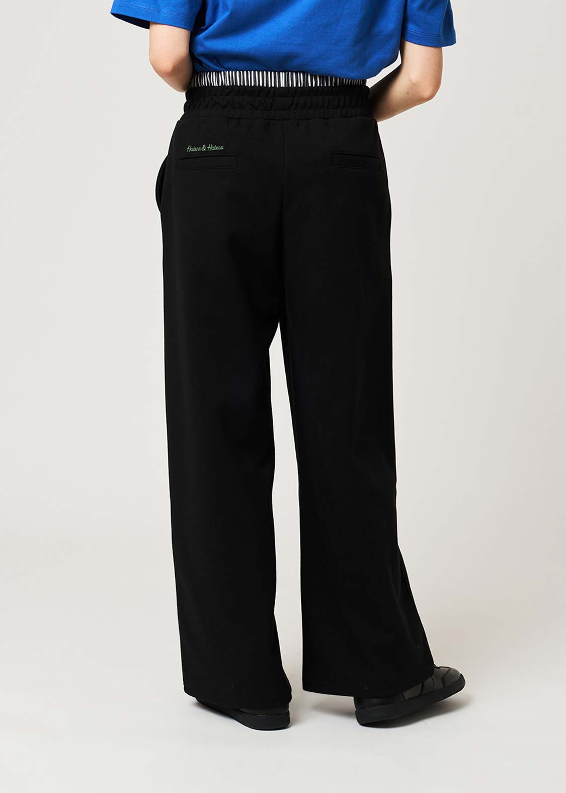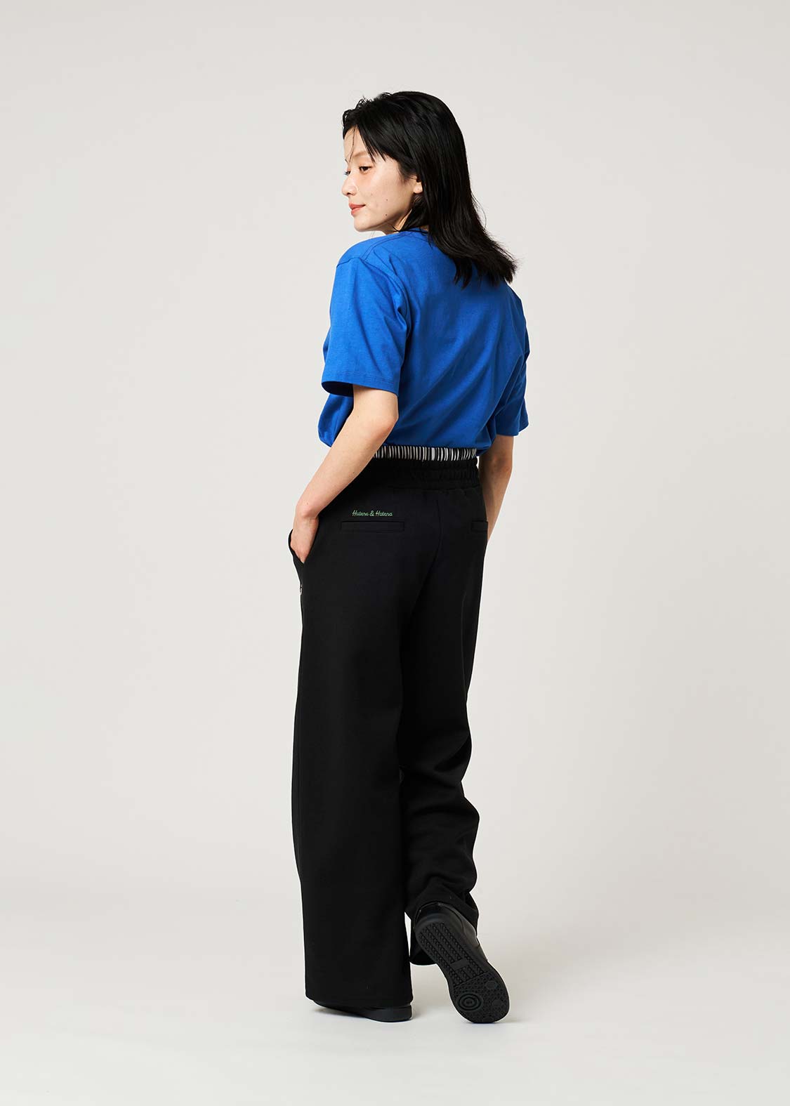 ・フロントには手を入れやすいポケットを配し、後ろは見た目を整える仕様にしています。