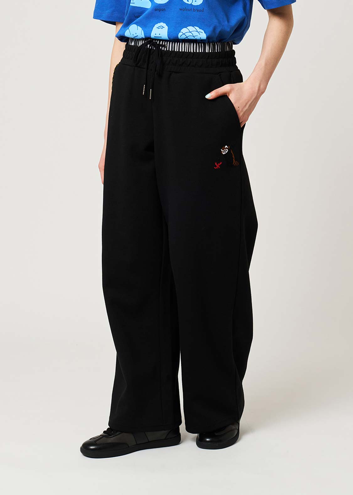 レッサーパンダの「?」と「!」の表情を、遊び心たっぷりにデザイン。ちょっとしたリアクションを切り取った、!?マークがアクセントのグラフィックです。
