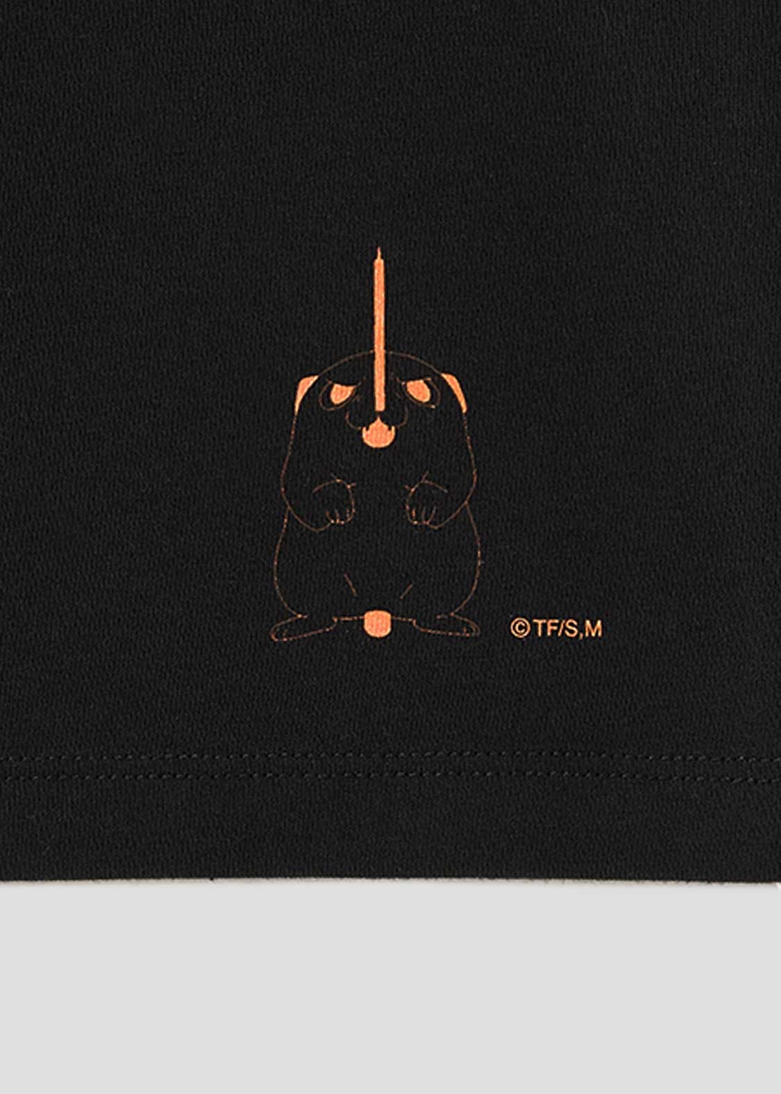 チェンソーマンの迫力満点のデザイン。バックにはポチタをさりげなく表現しています。