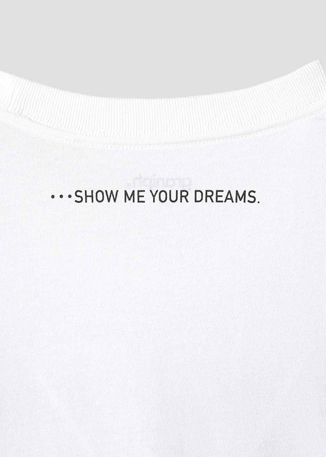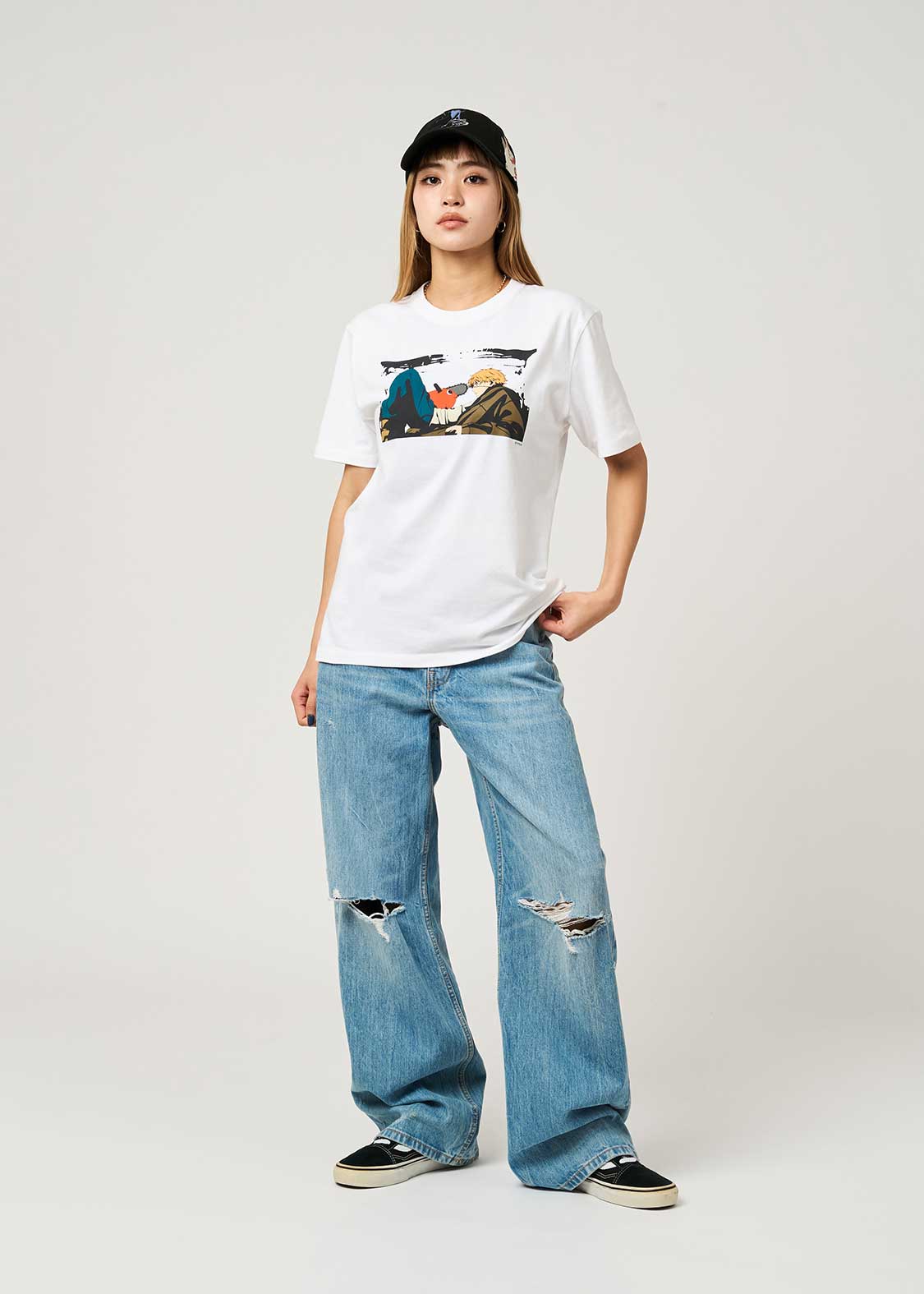 デンジがポチタと会話をするシーンのデザイン。バックにはポチタのセリフを英語でプリントしています。