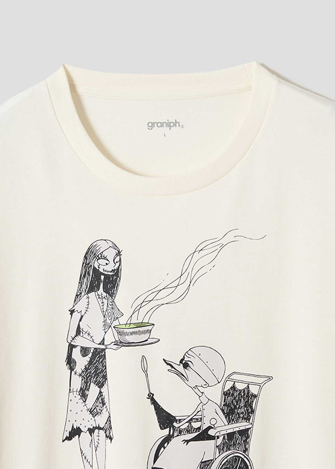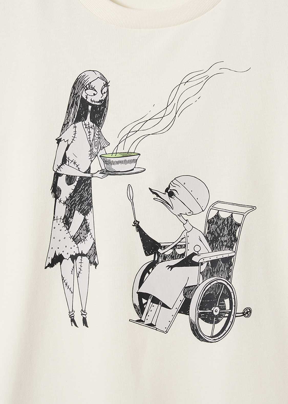 つぎはぎ人形のサリーを作ったマッドサイエンティスト、フィンケルスタイン博士。サリーが博士に食事を運ぶ様子をデザインしました。バックには、逃げようとひっそり隠れるサリーの姿もプリントされています。