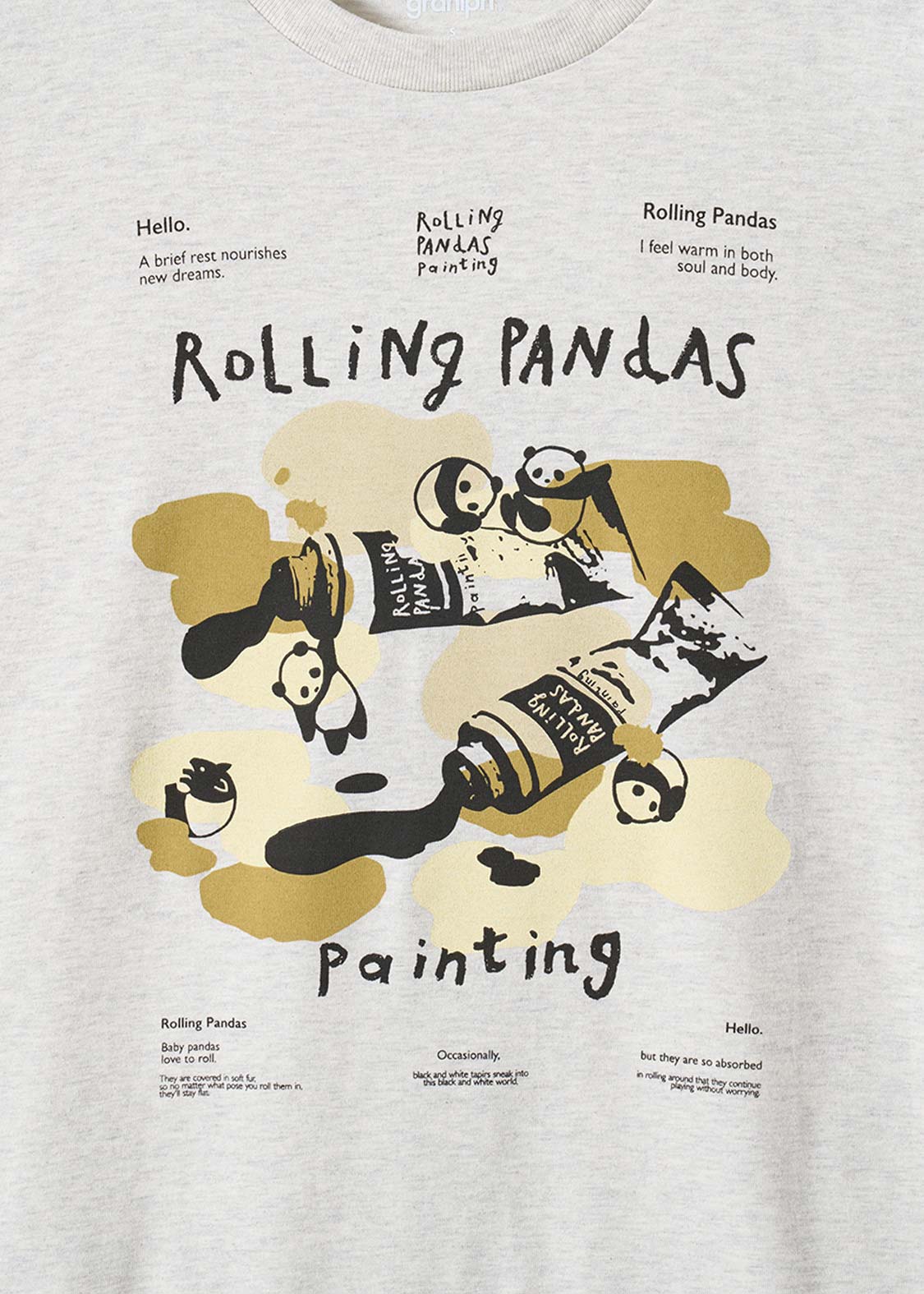 ローリングパンダズがどうやら絵の具のチューブの上を通ってしまったよう。絵の具と一緒に楽しく遊び続けているパンダたちです。