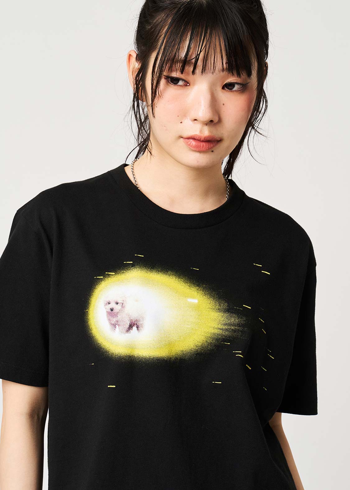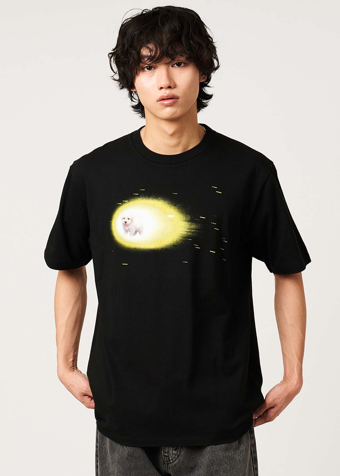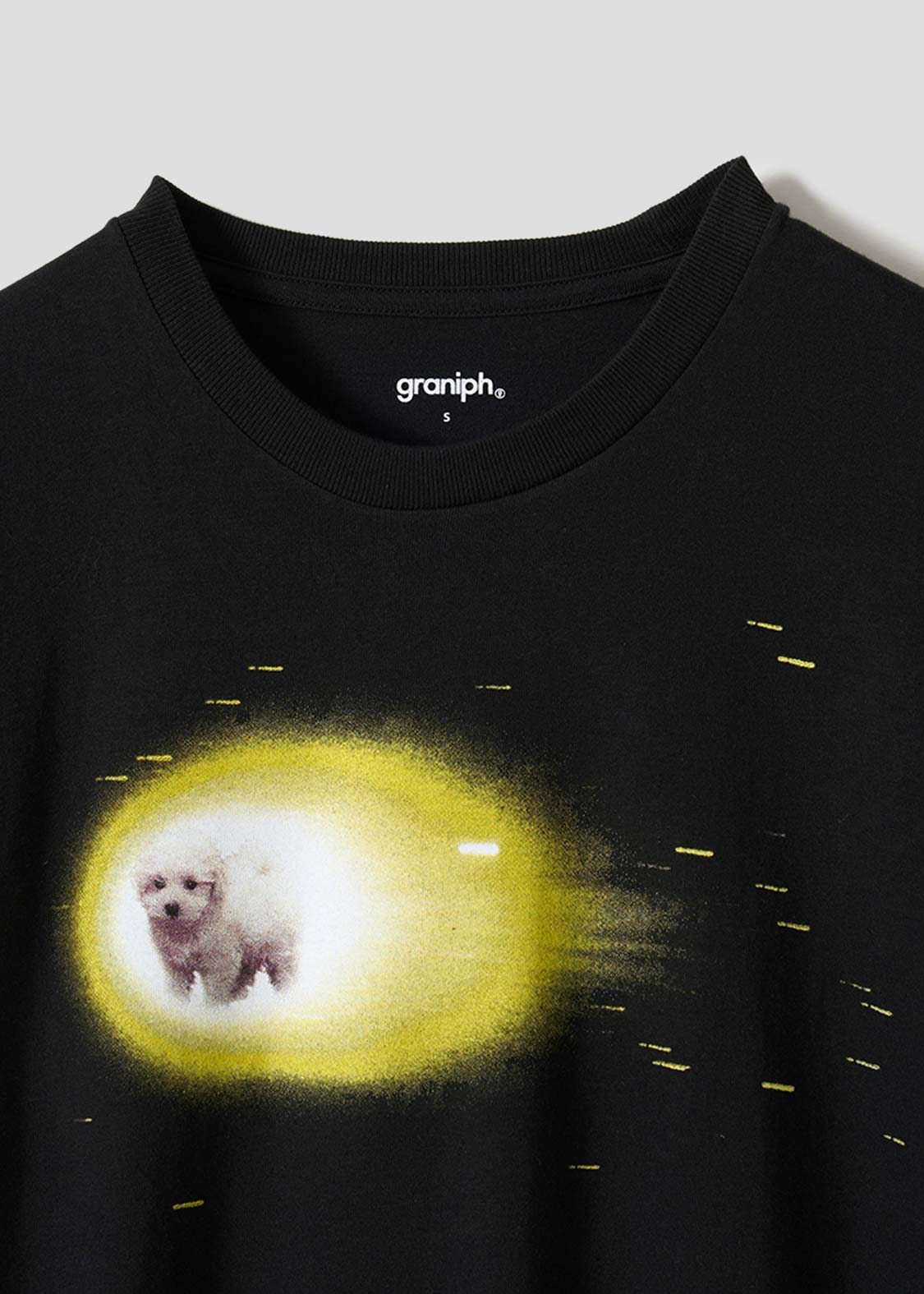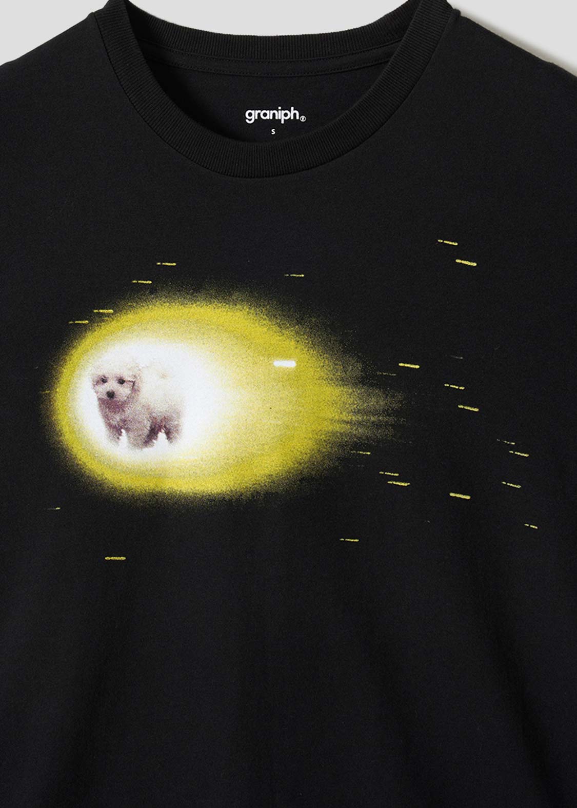 むっくむくの可愛らしいワンちゃんが光速で宇宙空間を移動。ぶっ飛んだコンセプトで制作されたシュールで個性的なグラフィックデザイン。さっくりアバウトな感じがたまらなく魅力的です!