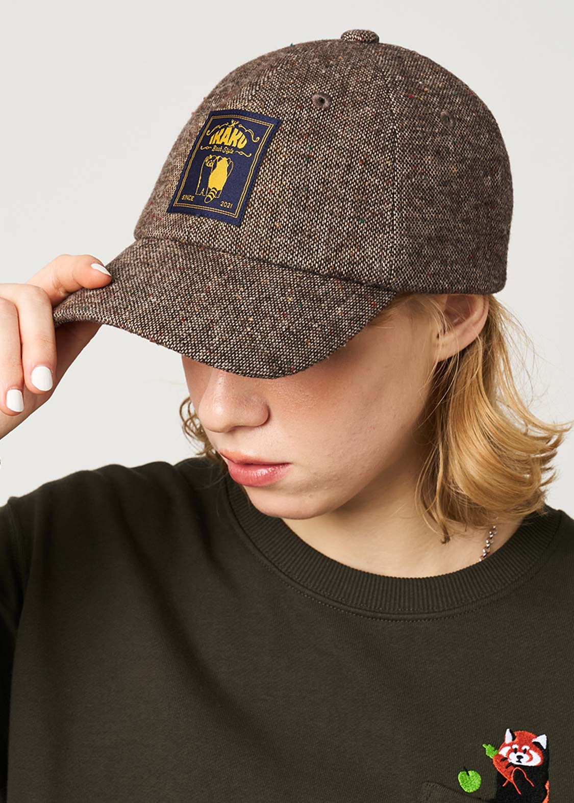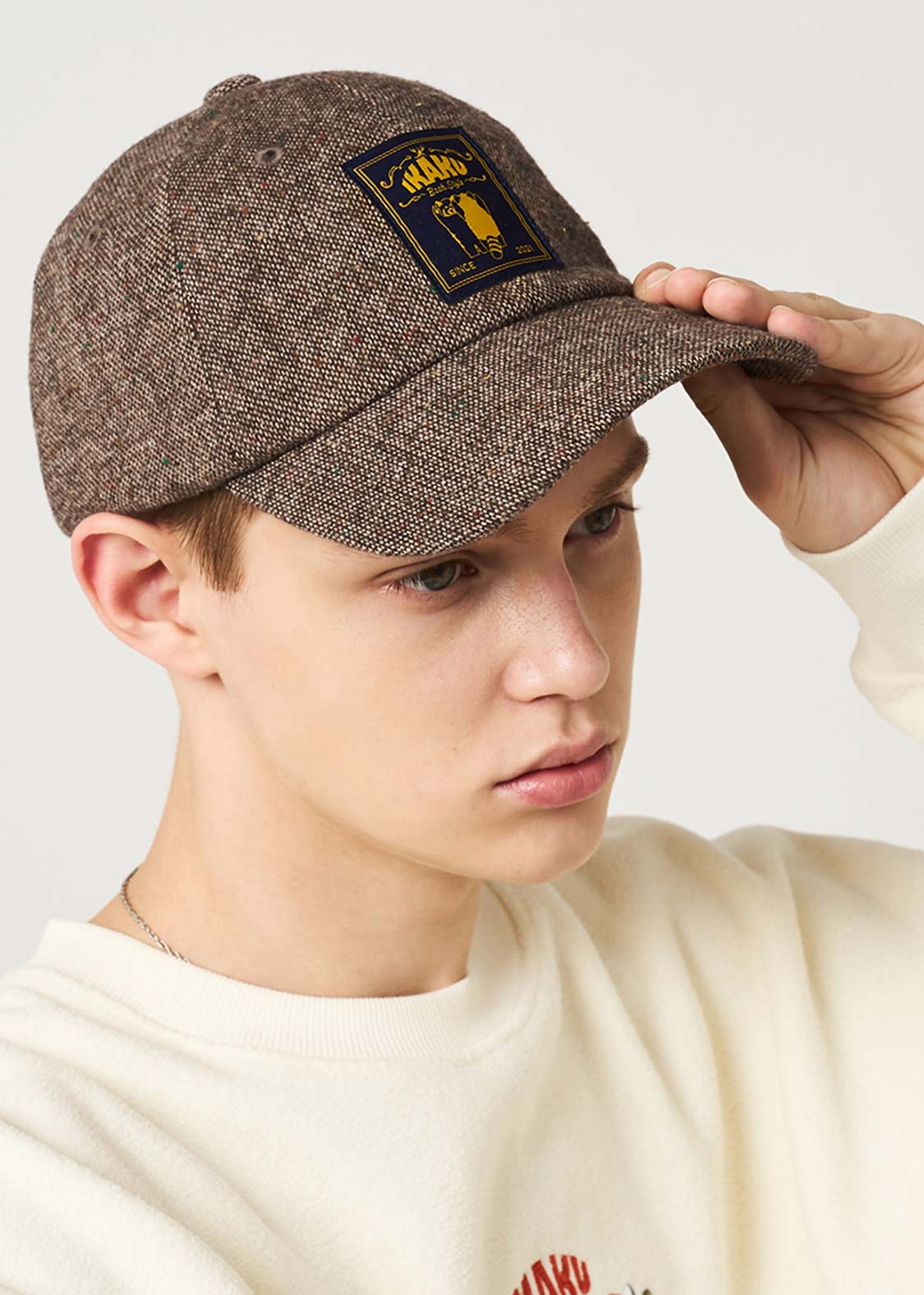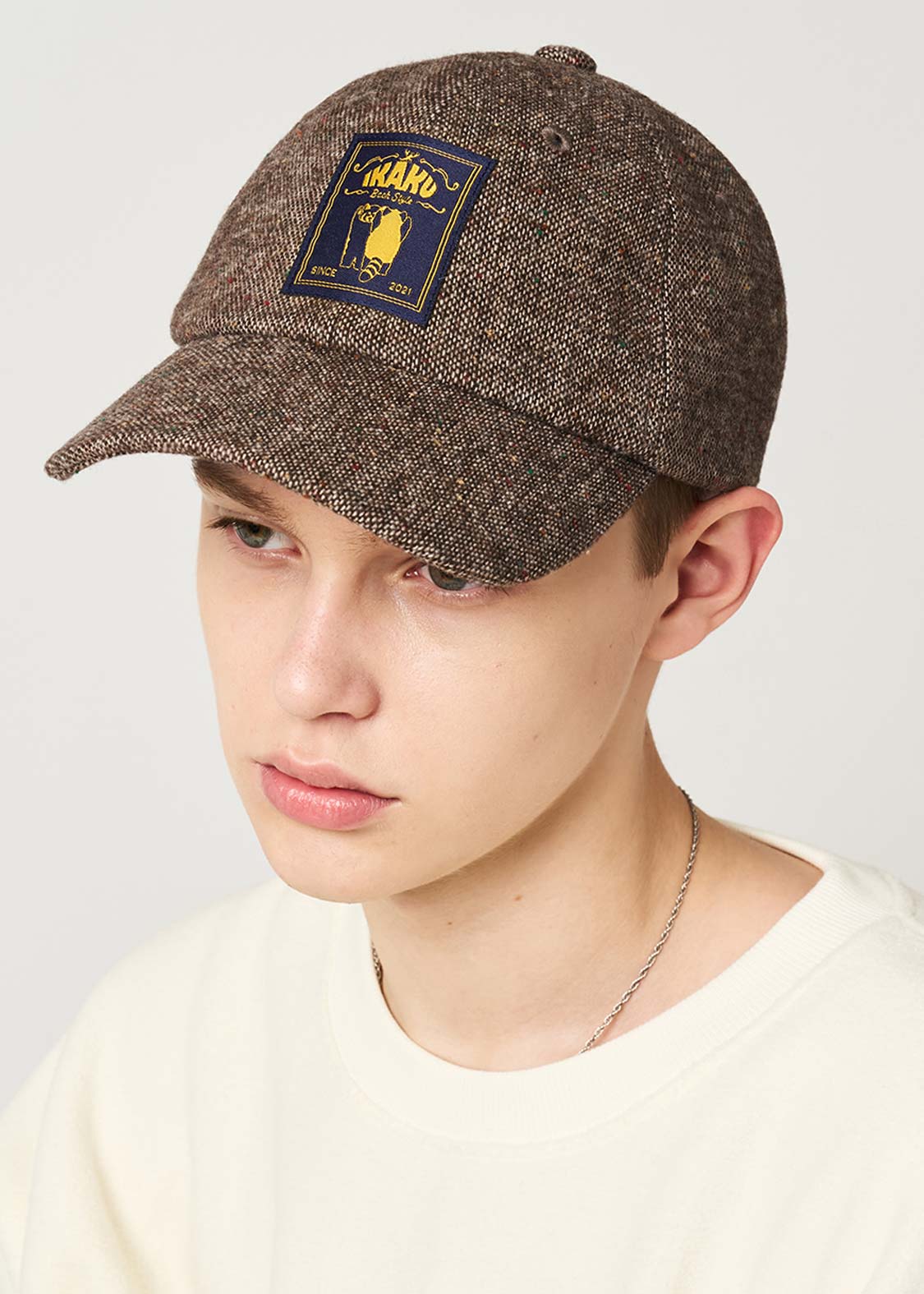 ・ツイード生地を使用した、スタンダードな6パネルのベースボールキャップ。