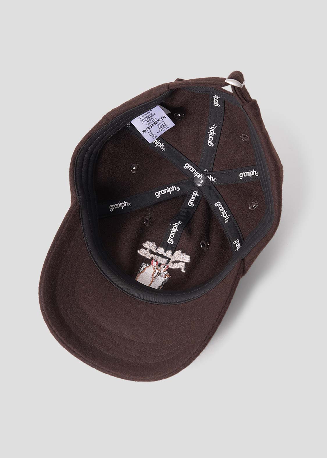 ・メルトン生地を使用した、スタンダードな6パネルのベースボールキャップ。