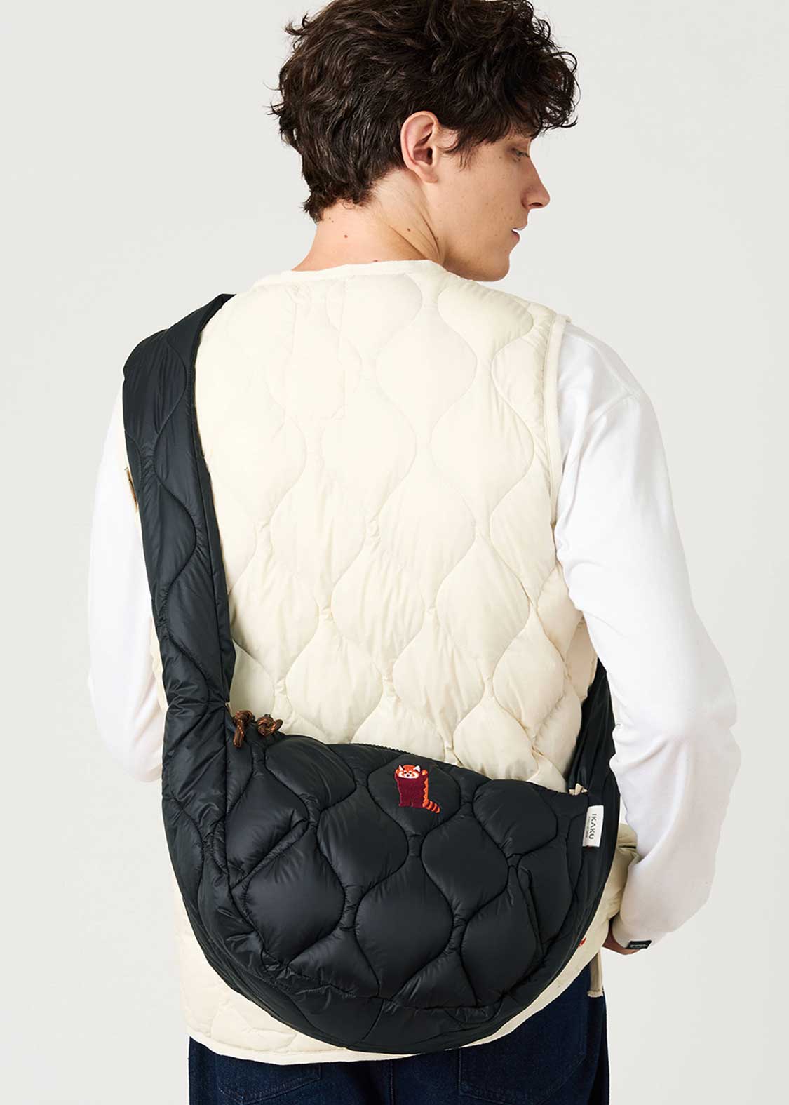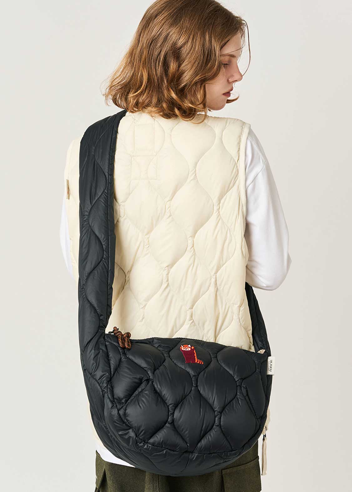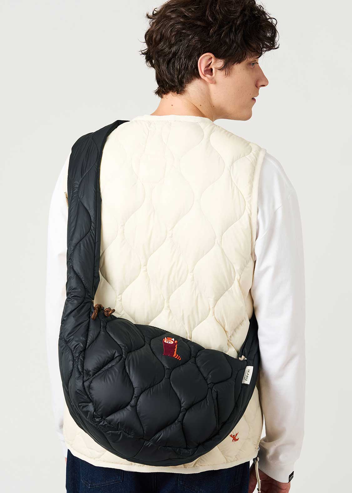 ・インナーダウンウェアブランド「TAION」とコラボレーションしたダウンショルダーバッグ。